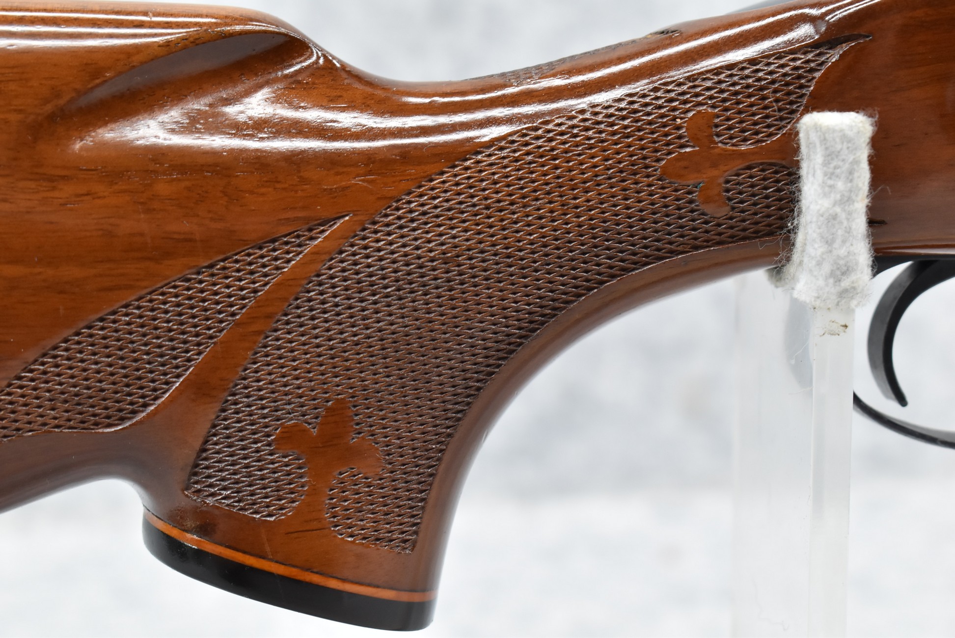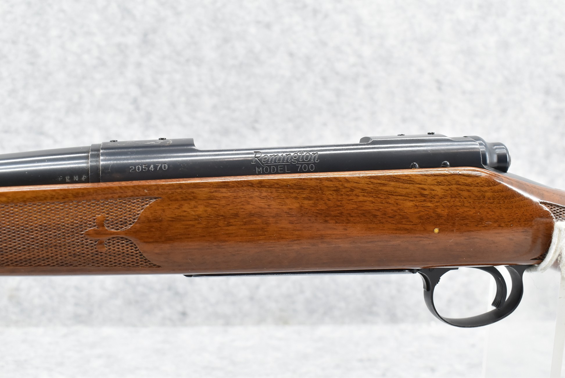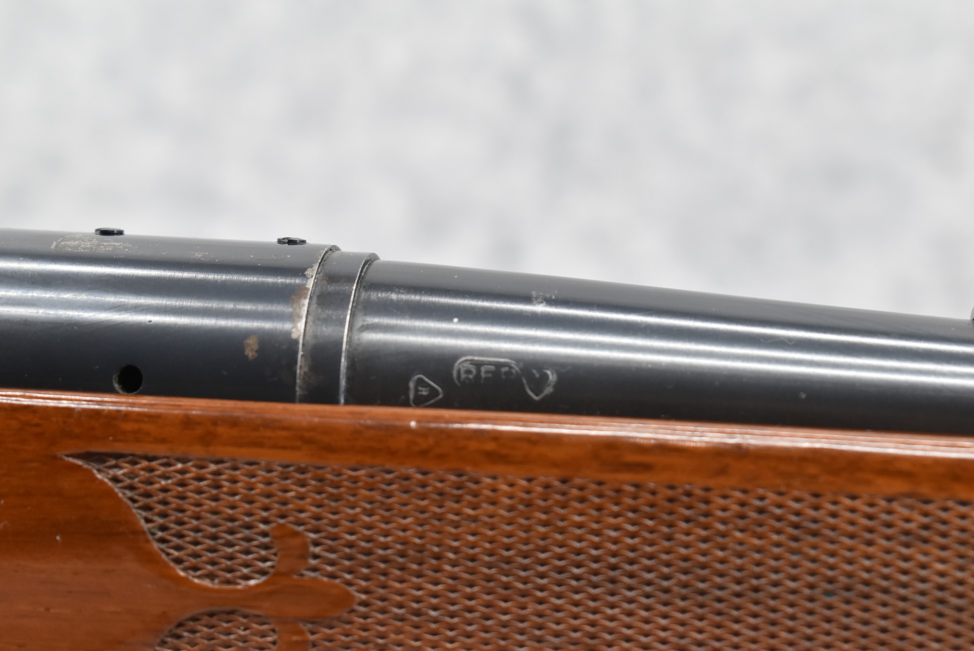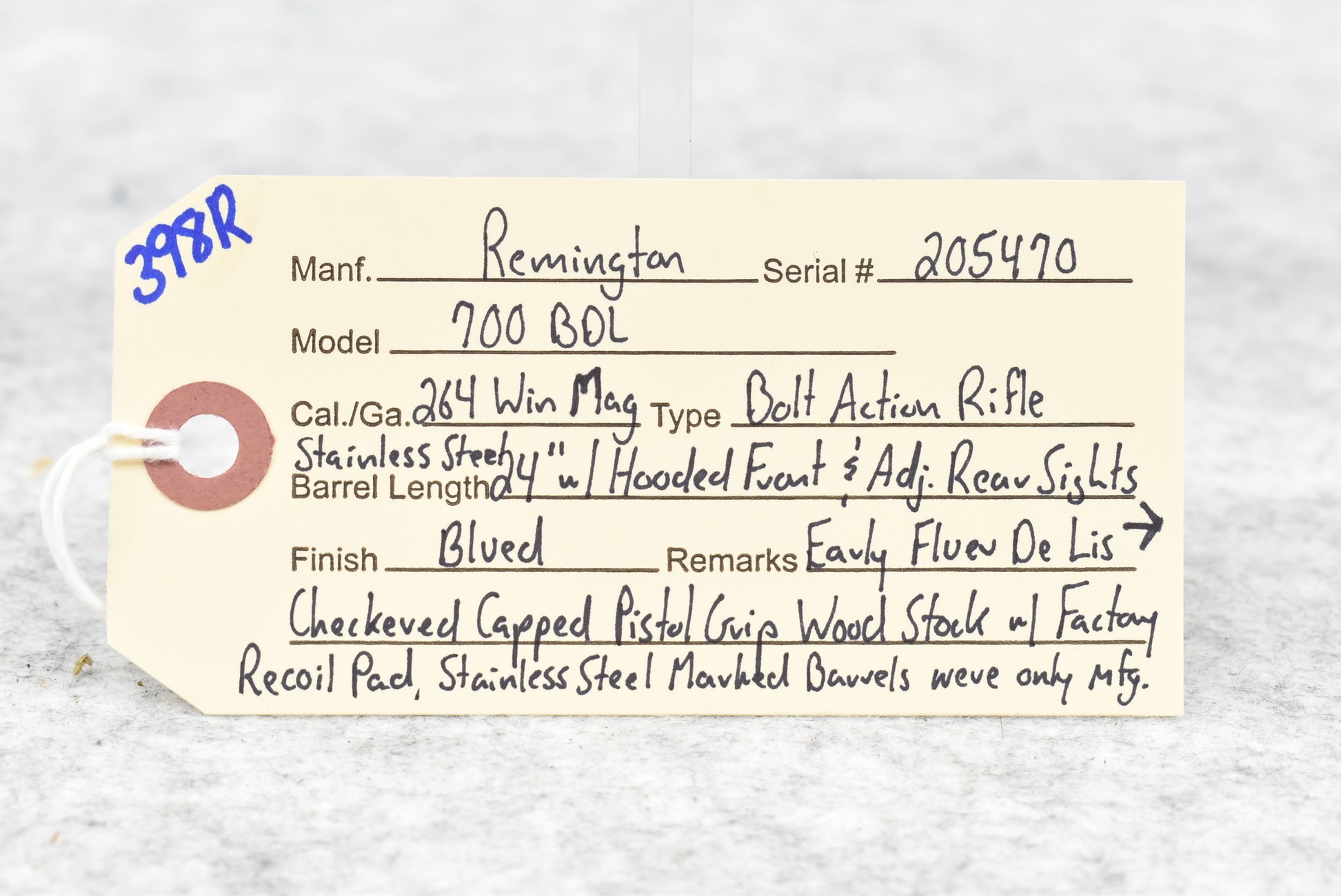 398R. Remington – Mod. 700 BDL – 264 Win. Mag. Cal. Bolt Action Rifle – w/24” Stainless Steel Finish Barrel w/Hooded Front & Adj. Rear Sights – Blued Finish – w/Early Fleur De Lis Checkered Capped Pistol Grip Wood Stock w/Factory Recoil Pad – Stainless Steel Marked Barrels Were Only Mfg. Between 1962-1970 Only