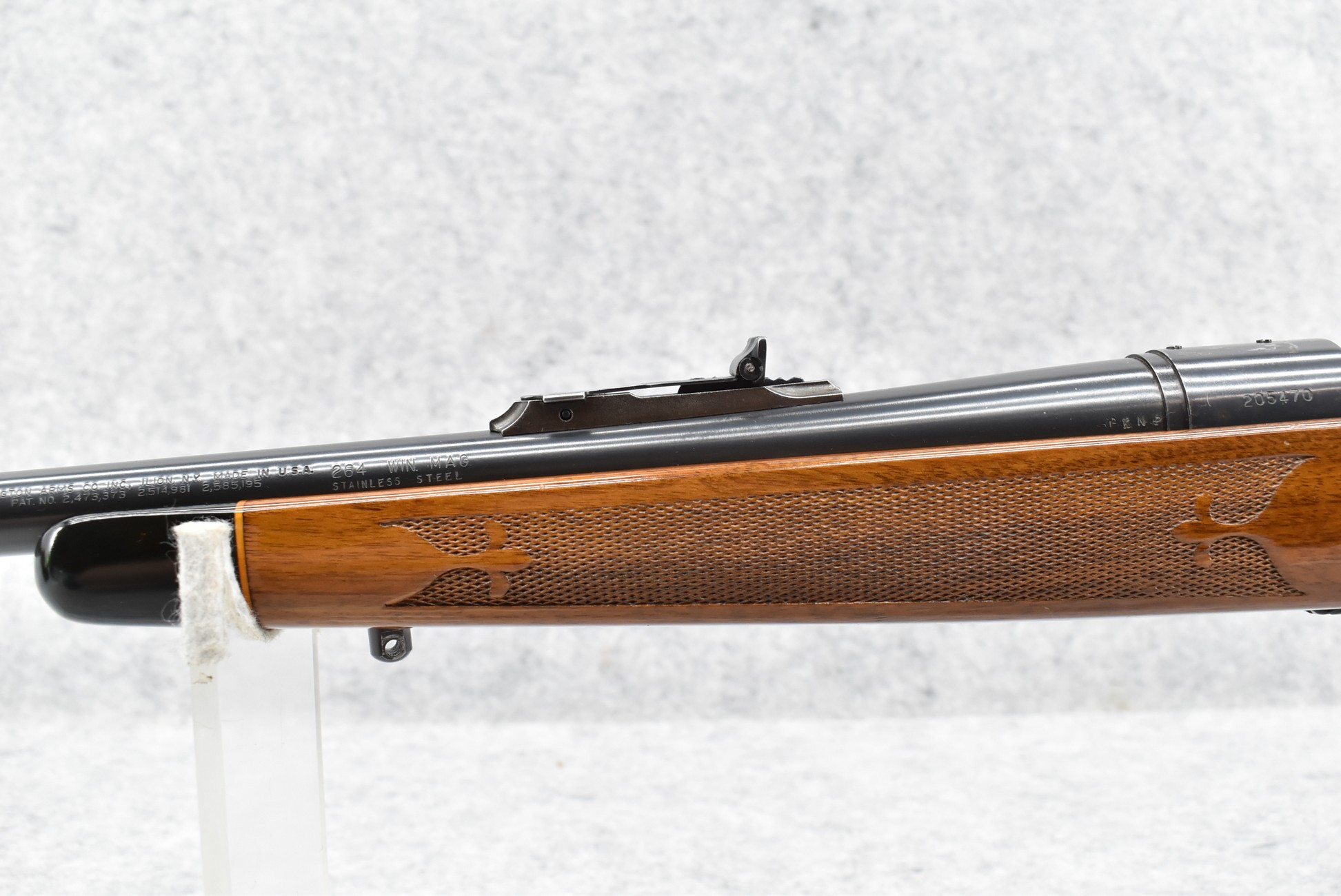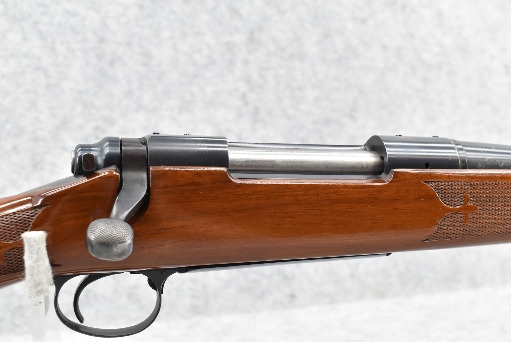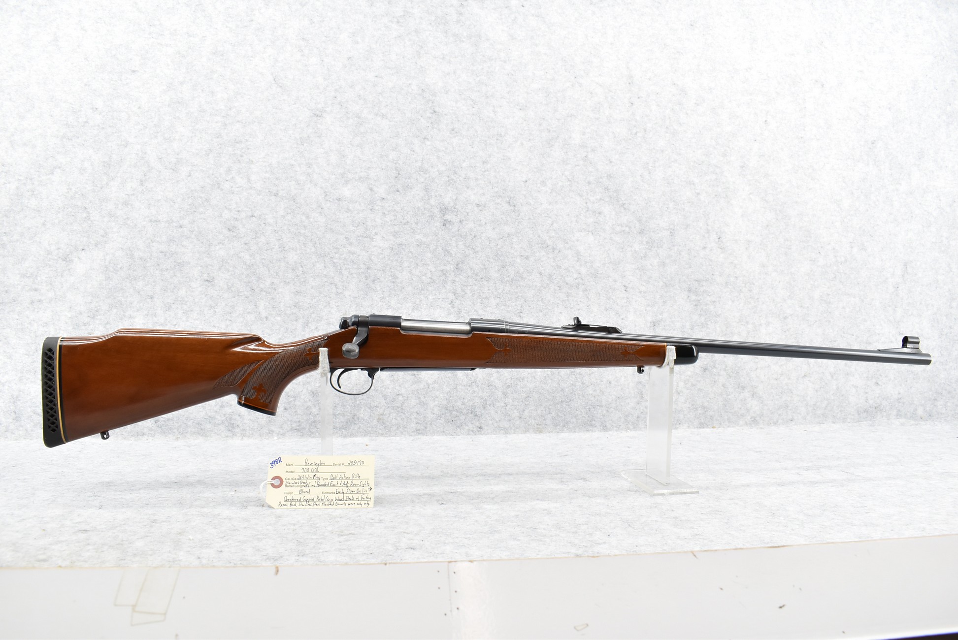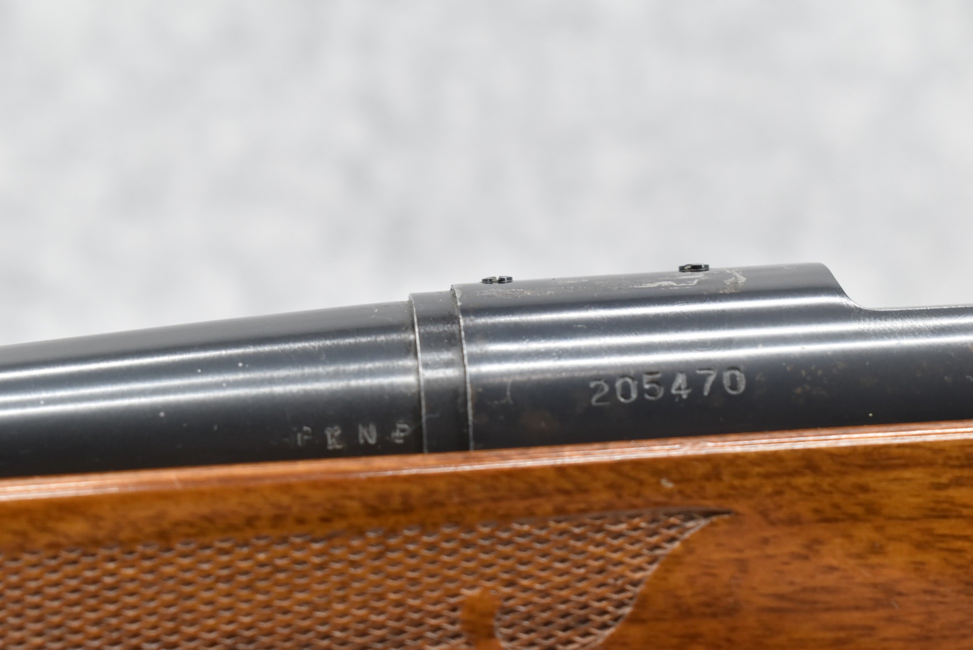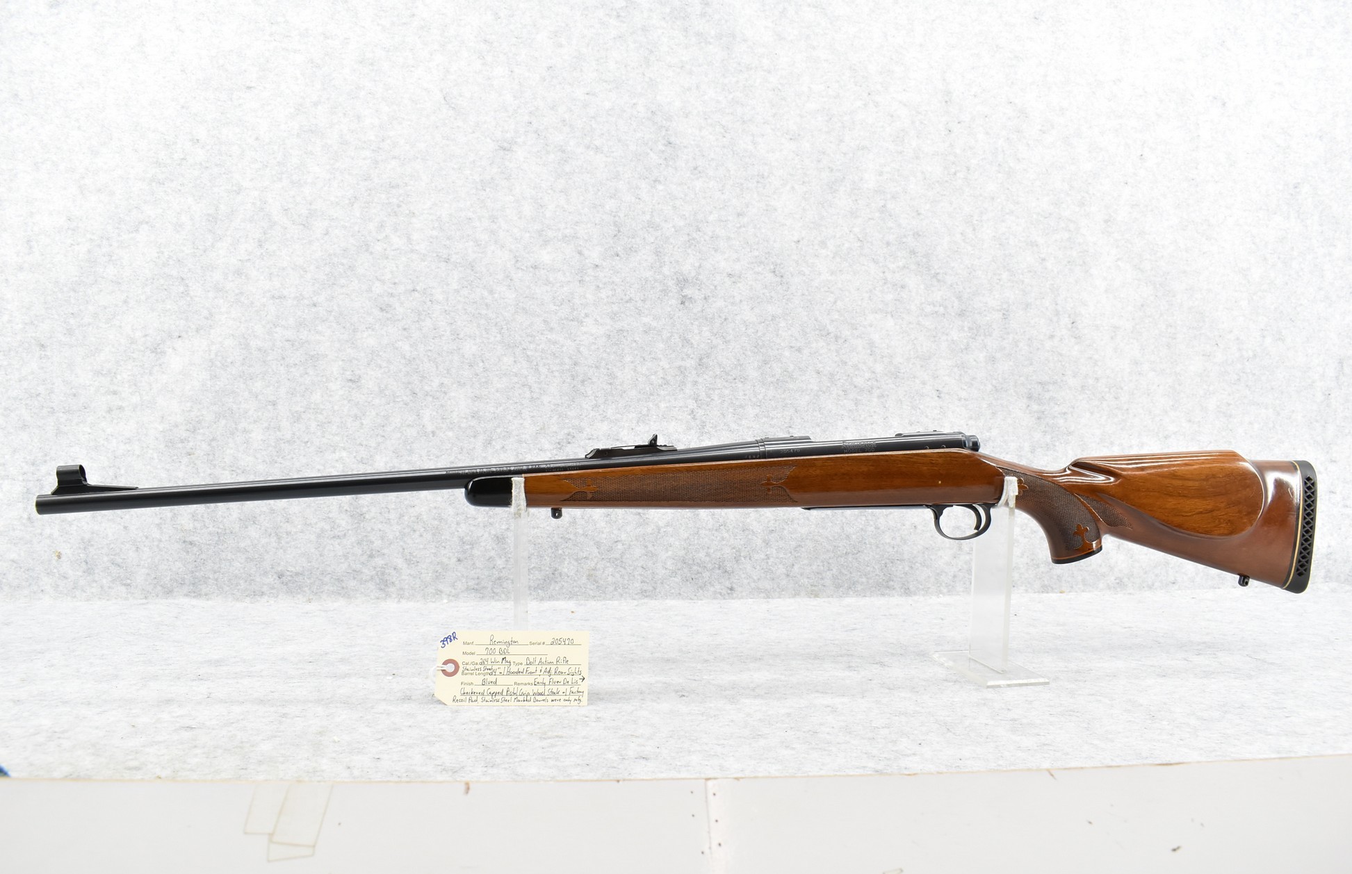 398R. Remington – Mod. 700 BDL – 264 Win. Mag. Cal. Bolt Action Rifle – w/24” Stainless Steel Finish Barrel w/Hooded Front & Adj. Rear Sights – Blued Finish – w/Early Fleur De Lis Checkered Capped Pistol Grip Wood Stock w/Factory Recoil Pad – Stainless Steel Marked Barrels Were Only Mfg. Between 1962-1970 Only