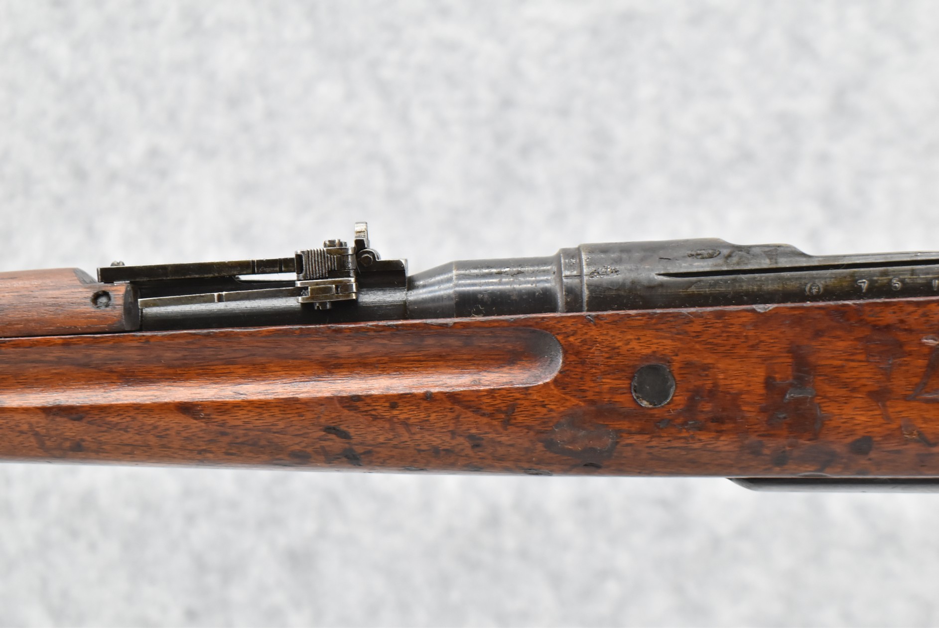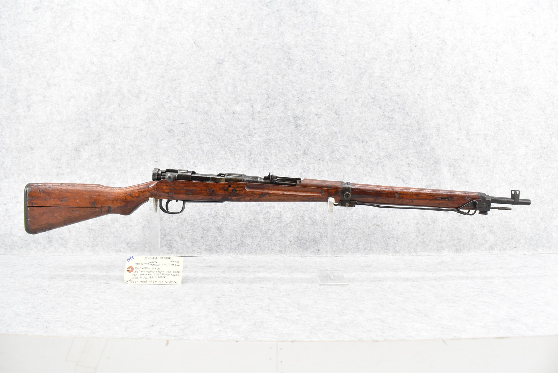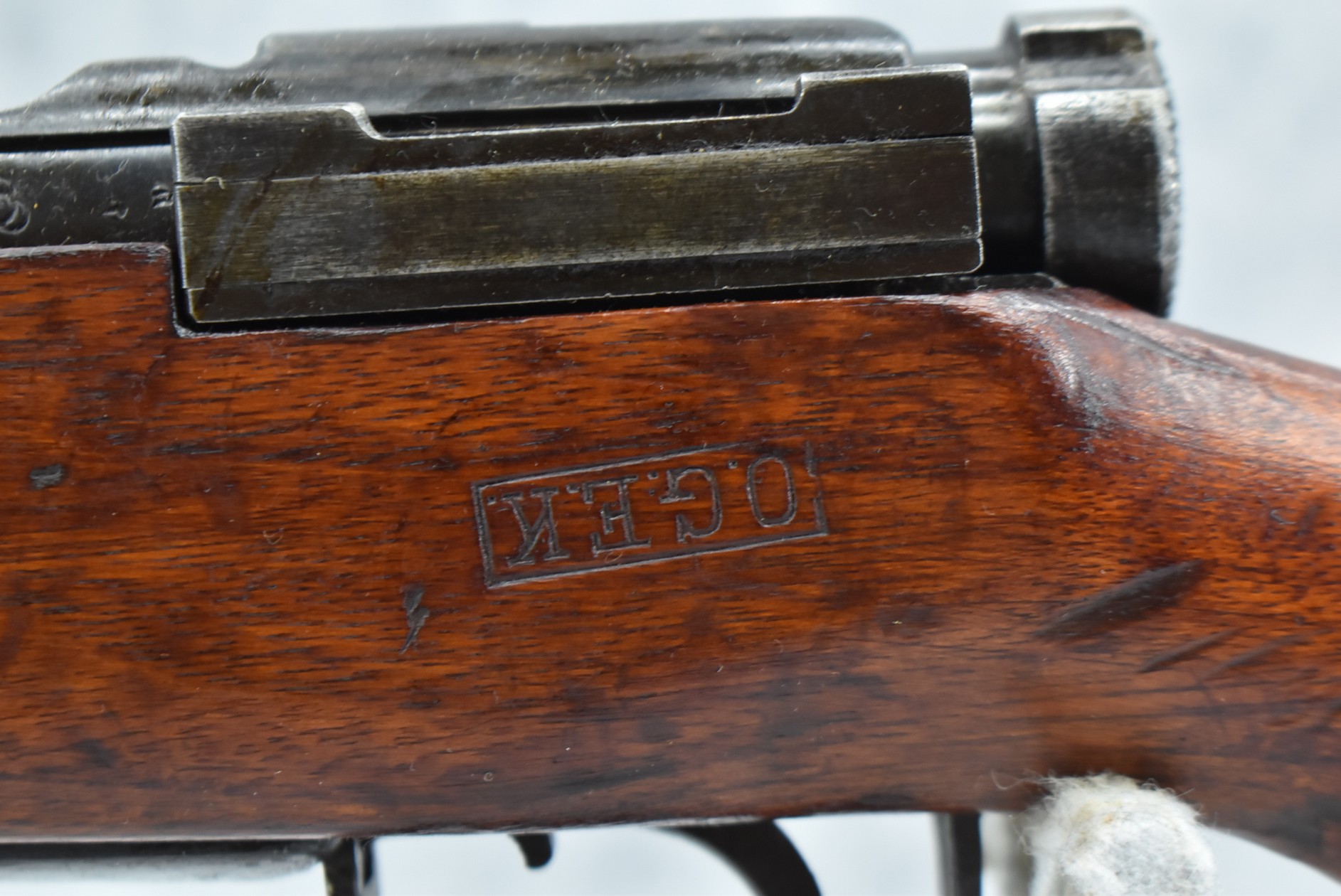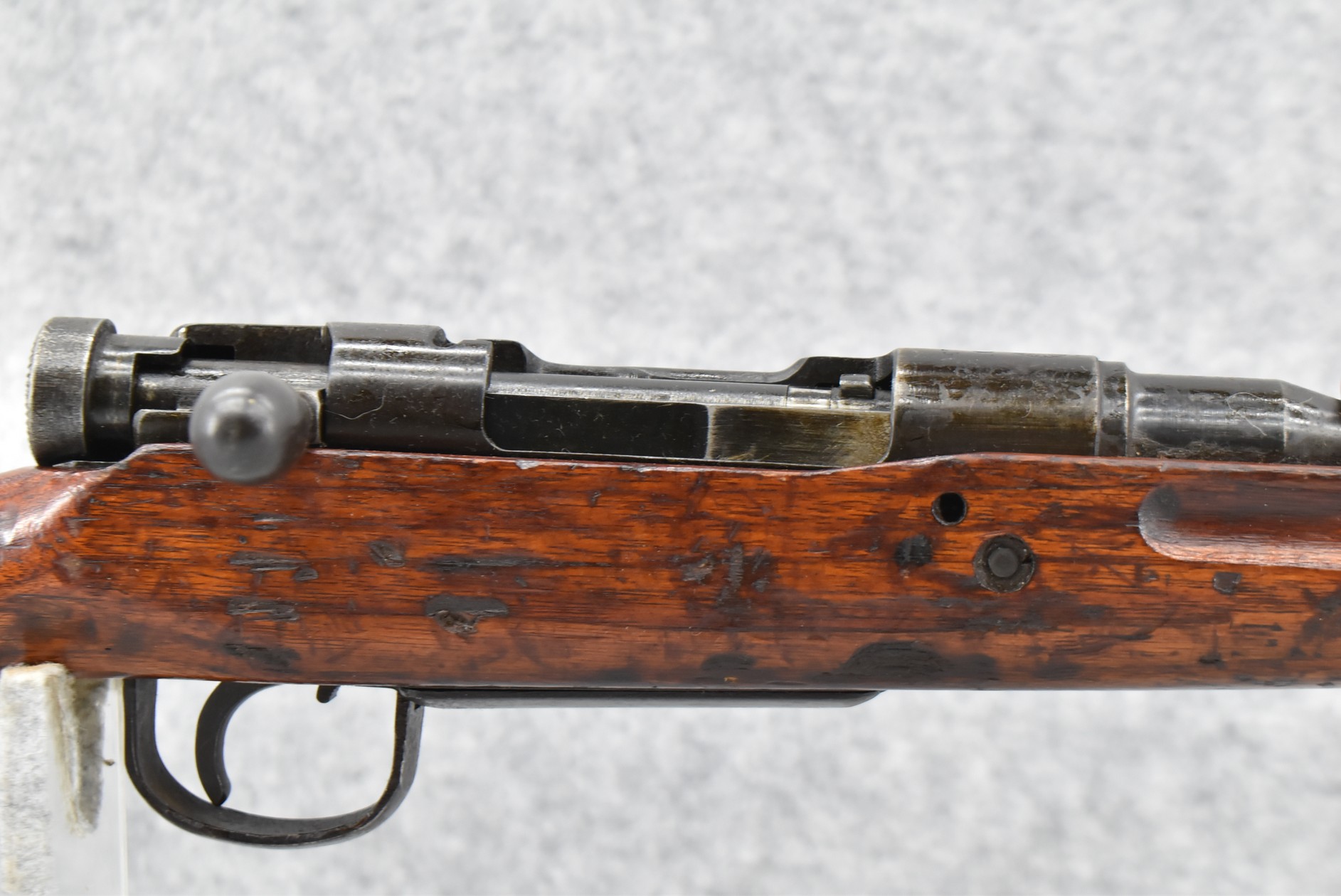 399R. Japanese – Type 99 Short Rifle – 7.7 Jap Cal. Bolt Action Rifle – w/26” Barrel w/Protected Front & Post Rear & Anti-Aircraft Sights – Blued Finish – w/Wood Pistol Grip Stock w/Factory Butt Plate &Vivid OGEK Inspectors Mark on Stock – w/Matching Bolt – w/Sling Mounts – w/Monopod – Unground Mum