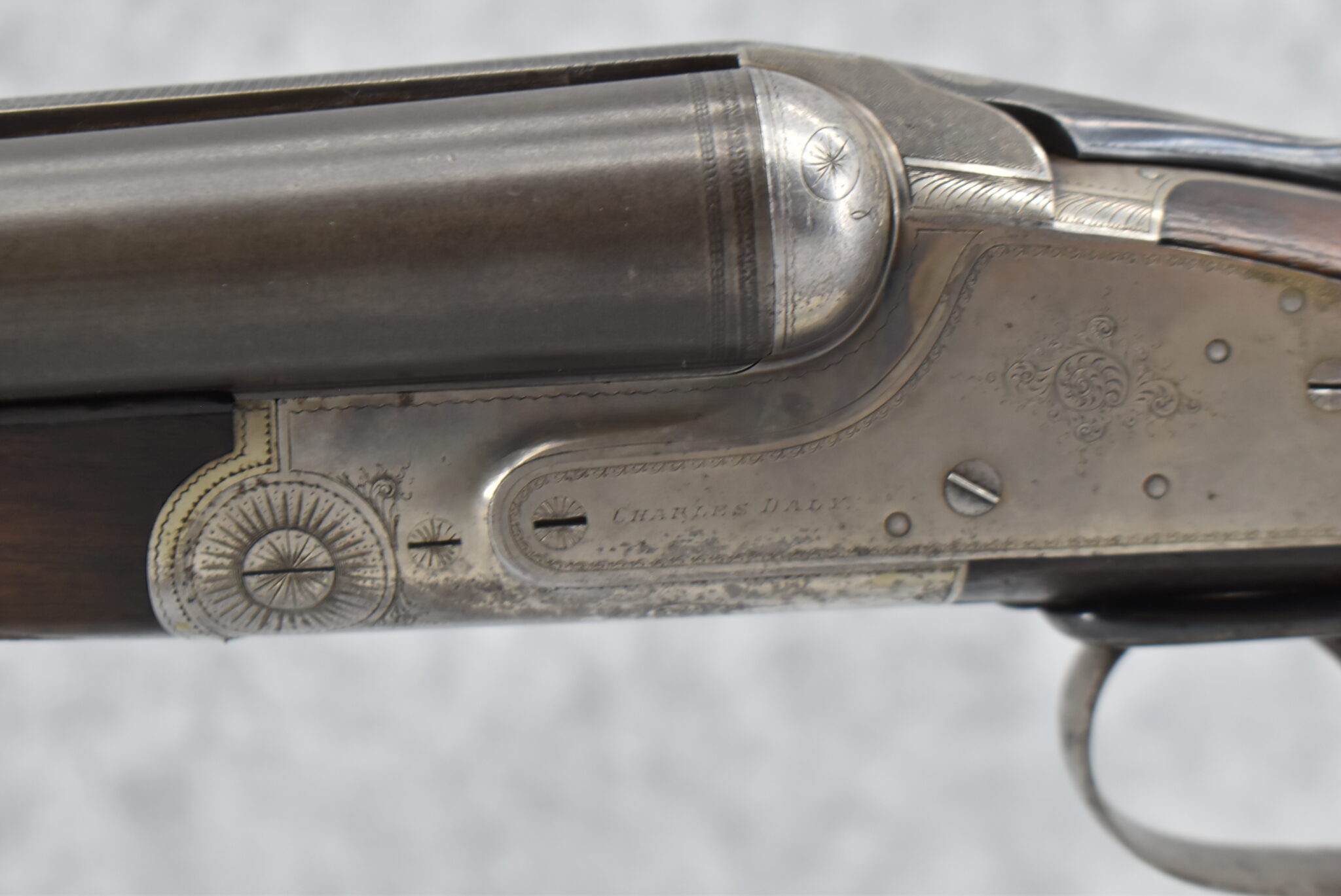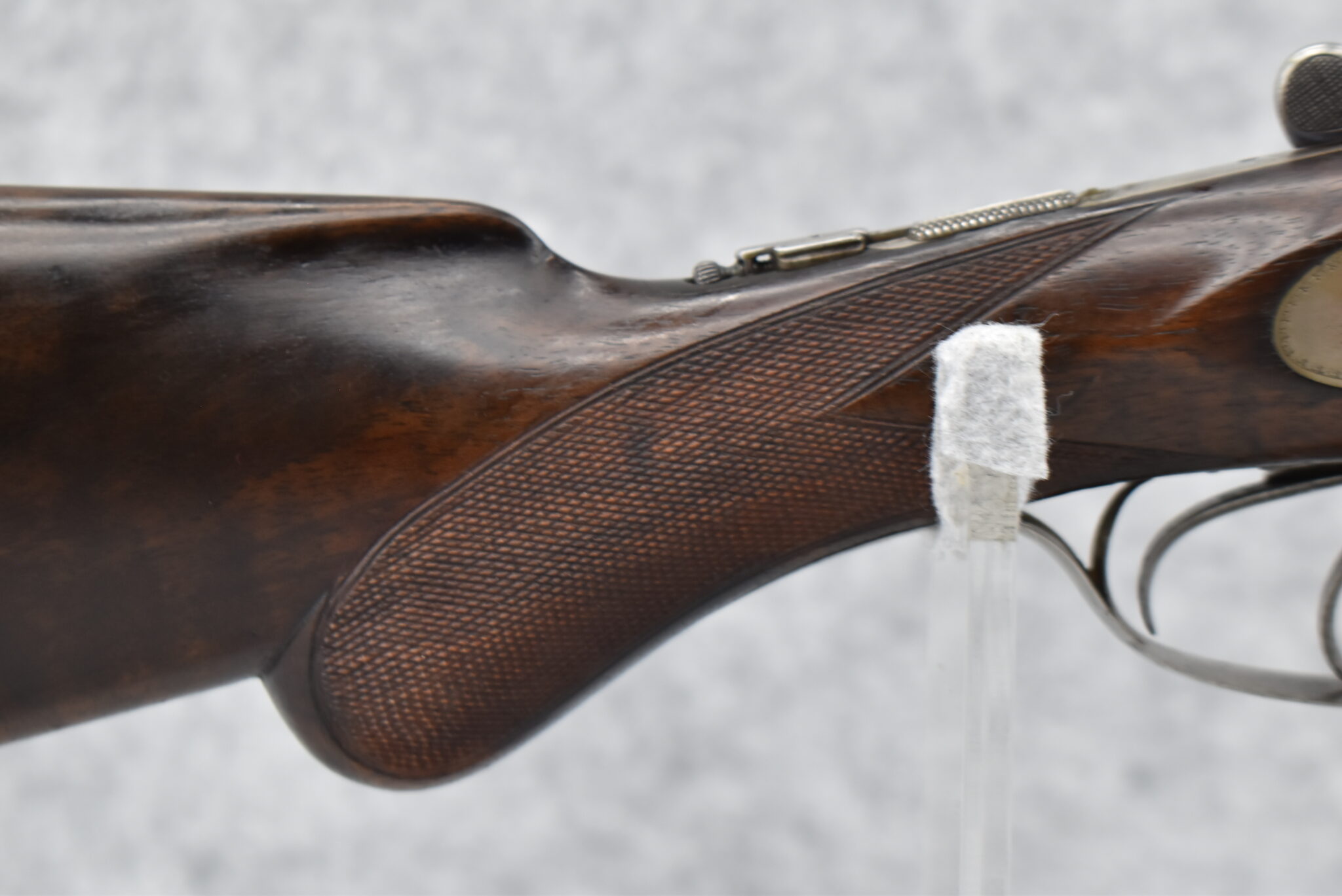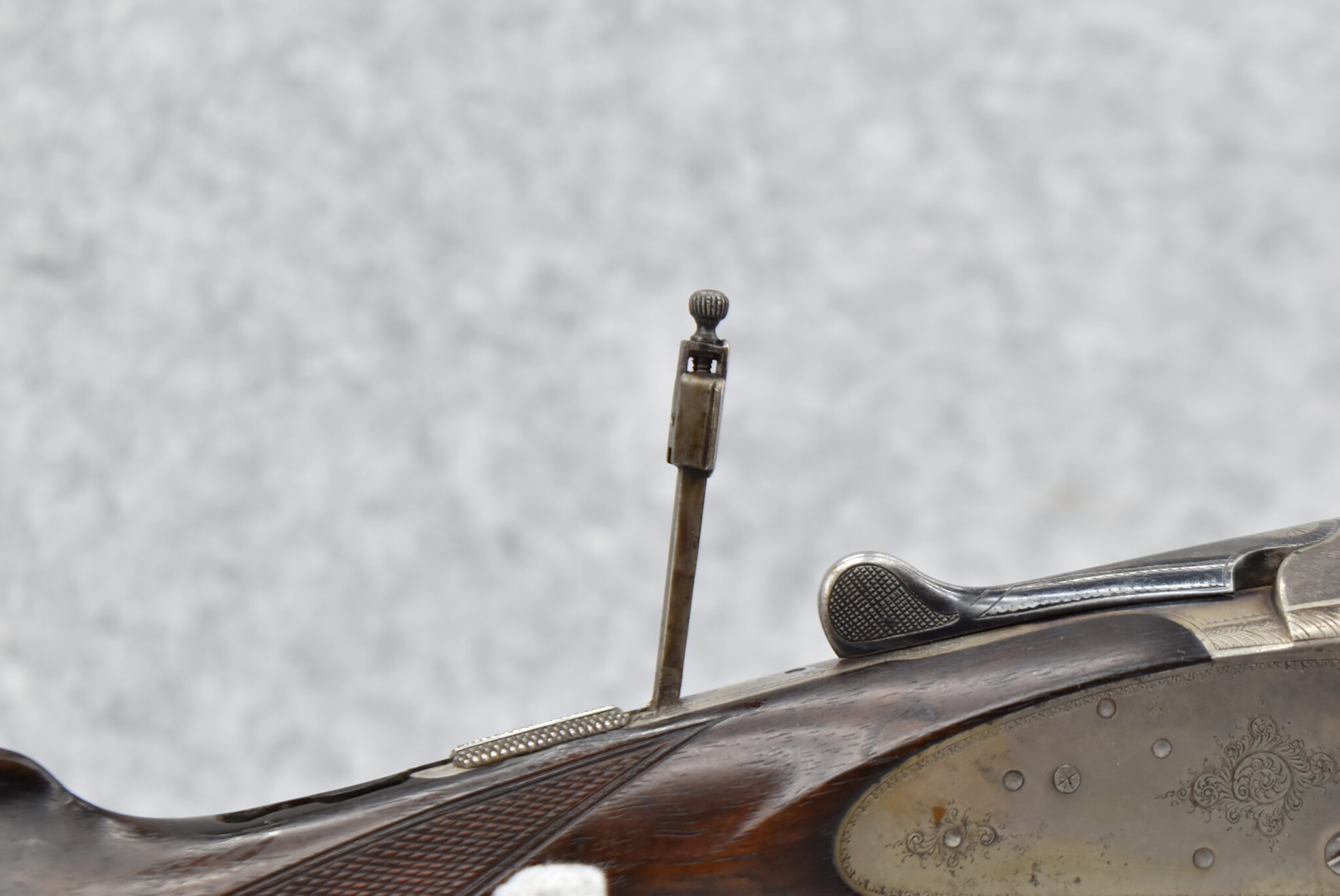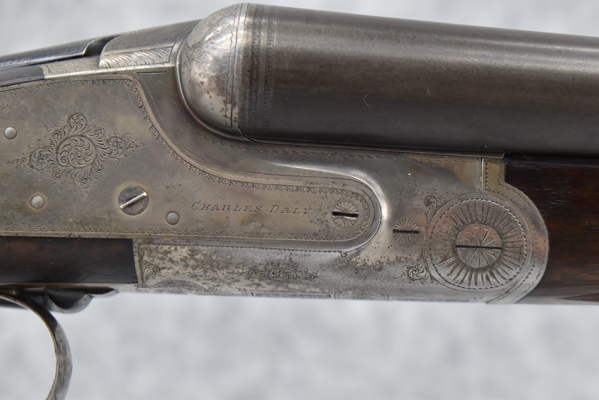 39R. Charles Daly – 16ga. X 16ga. X 25-20 Win. Cal. 3-Barrel Drilling – w/28” J.P. Sauer & Son Fluid Steel Krupp-Essen Barrels w/Matted Solid Rib w/Blade Front & Single Leaf Rear Barrel Sights – Blued/Gray Finish – w/Checkered Round Knob Pistol Grip Wood Butt Stock w/Pachmayr Recoil Pad & Matching Splinter Forearm – w/Folding Flush Fit Rear Tang Sight – w/Cocking Lever on Left Side of Frame – LOP 14 3/8” – Gun Weighs 7lbs. 5oz.