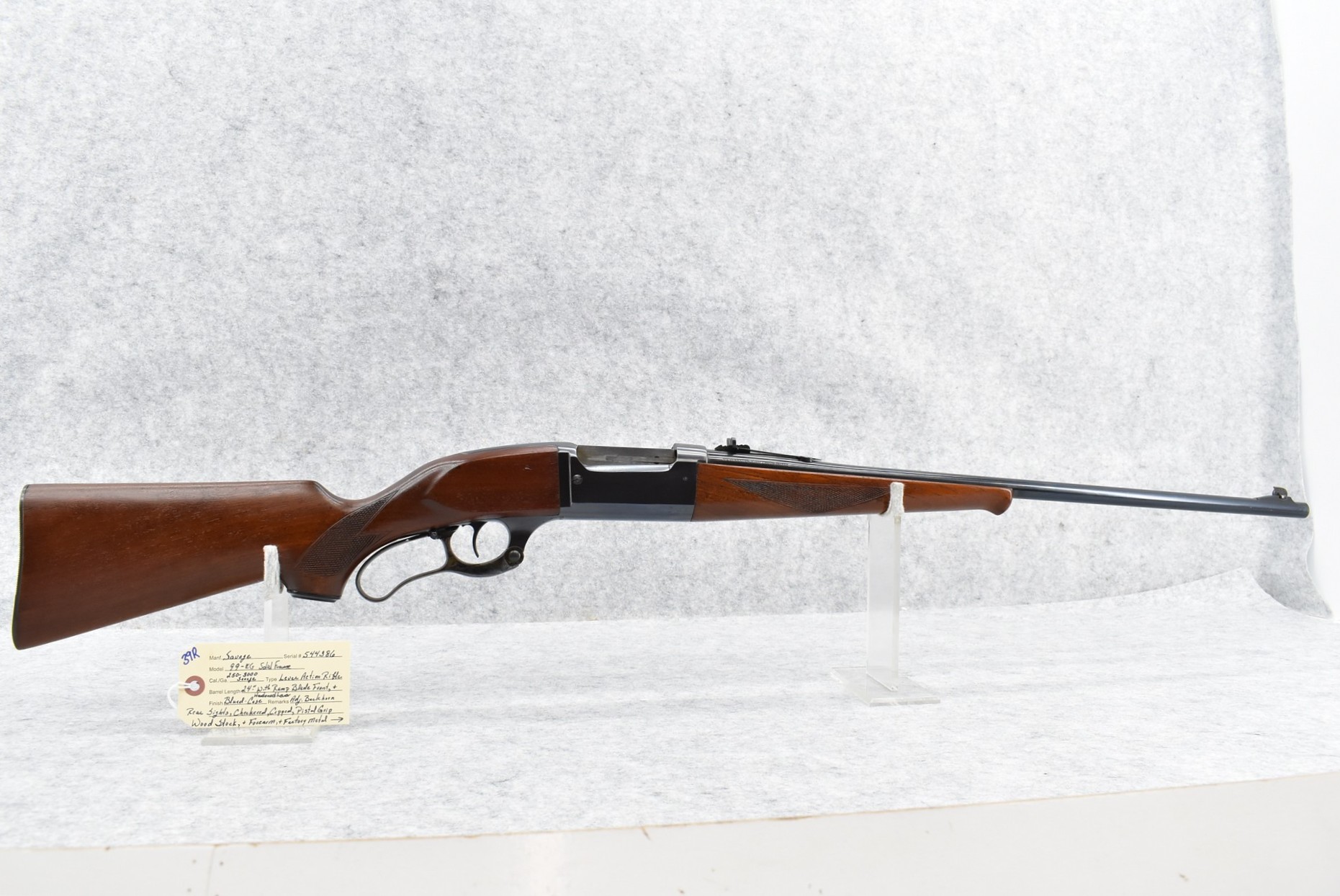 39R. Savage – Mod. 99-EG Solid Frame – 250-3000 Sav. Cal. Lever Action Rifle – w/24” Barrel w/Ramp Blade Front & Adj. Buckhorn Rear Sights – Blued Finish w/Case Hardened Lever – w/Checkered Capped Pistol Grip Wood Stocks w/Factory Metal Butt Plate
