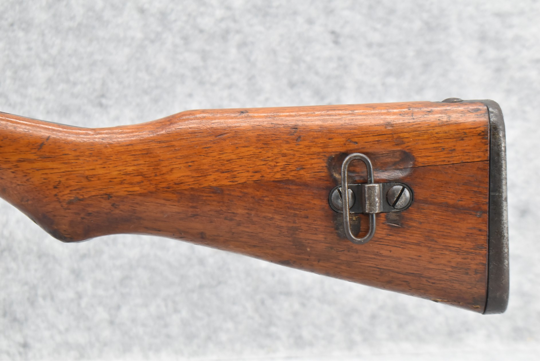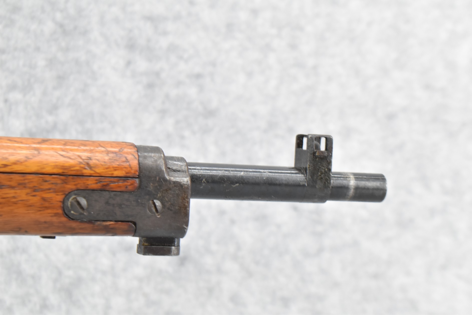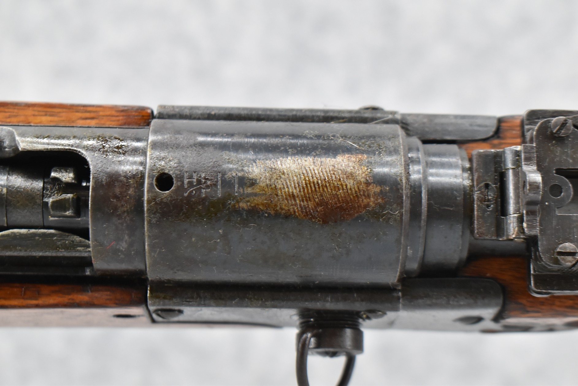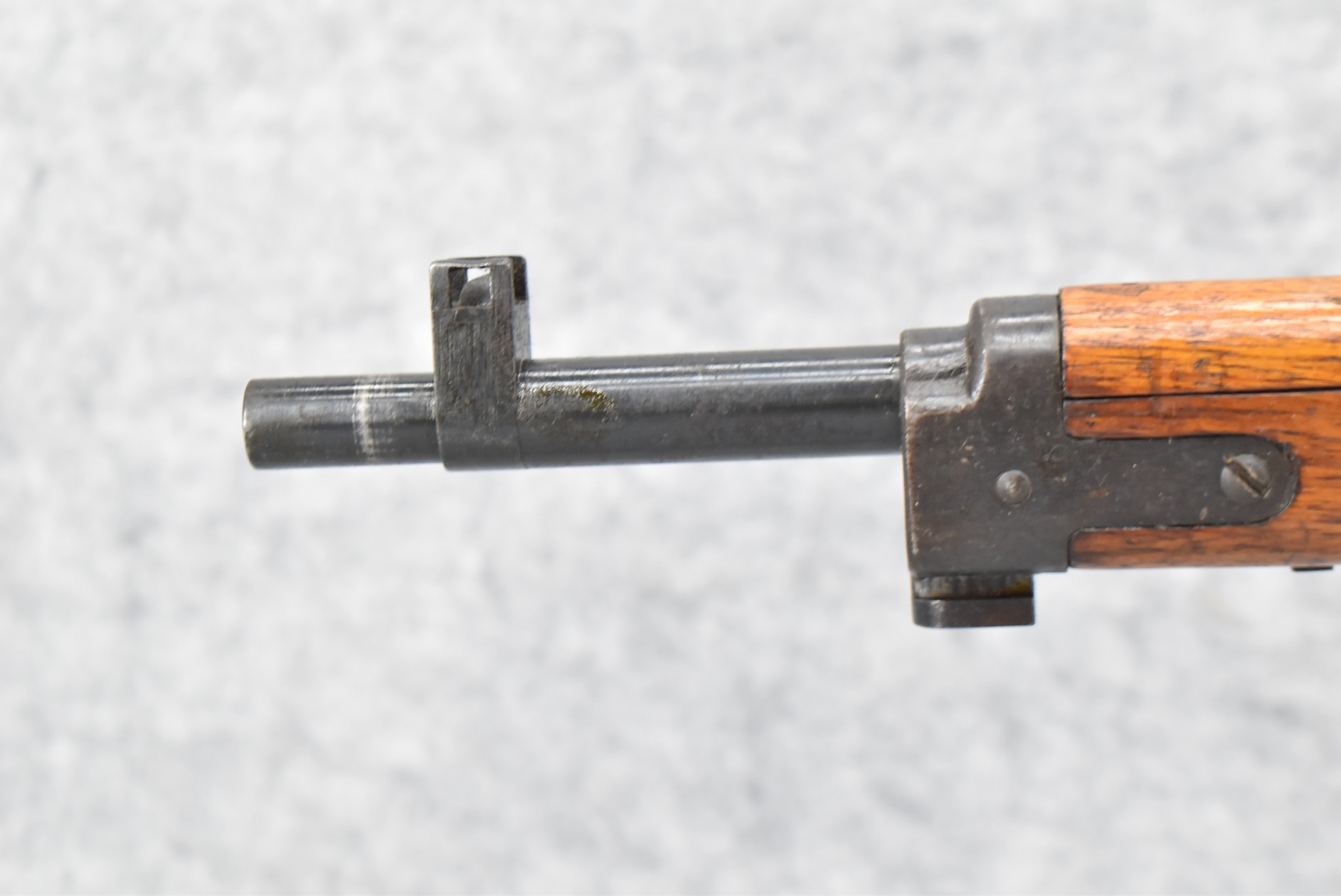 400R. Japanese – Type II Tera-Paratrooper Rifle – 7.7mm Jap Cal. Bolt Action Rifle – w/25 ½” Barrel w/Blade Front & Adj. Rear Ladder Anti-Aircraft Sights w/Wings – Military Finish – w/Pistol Grip Wood Stock w/Metal Butt Plate w/Finger Groove Forend & Guard – w/Sling Loops – Ground Mum