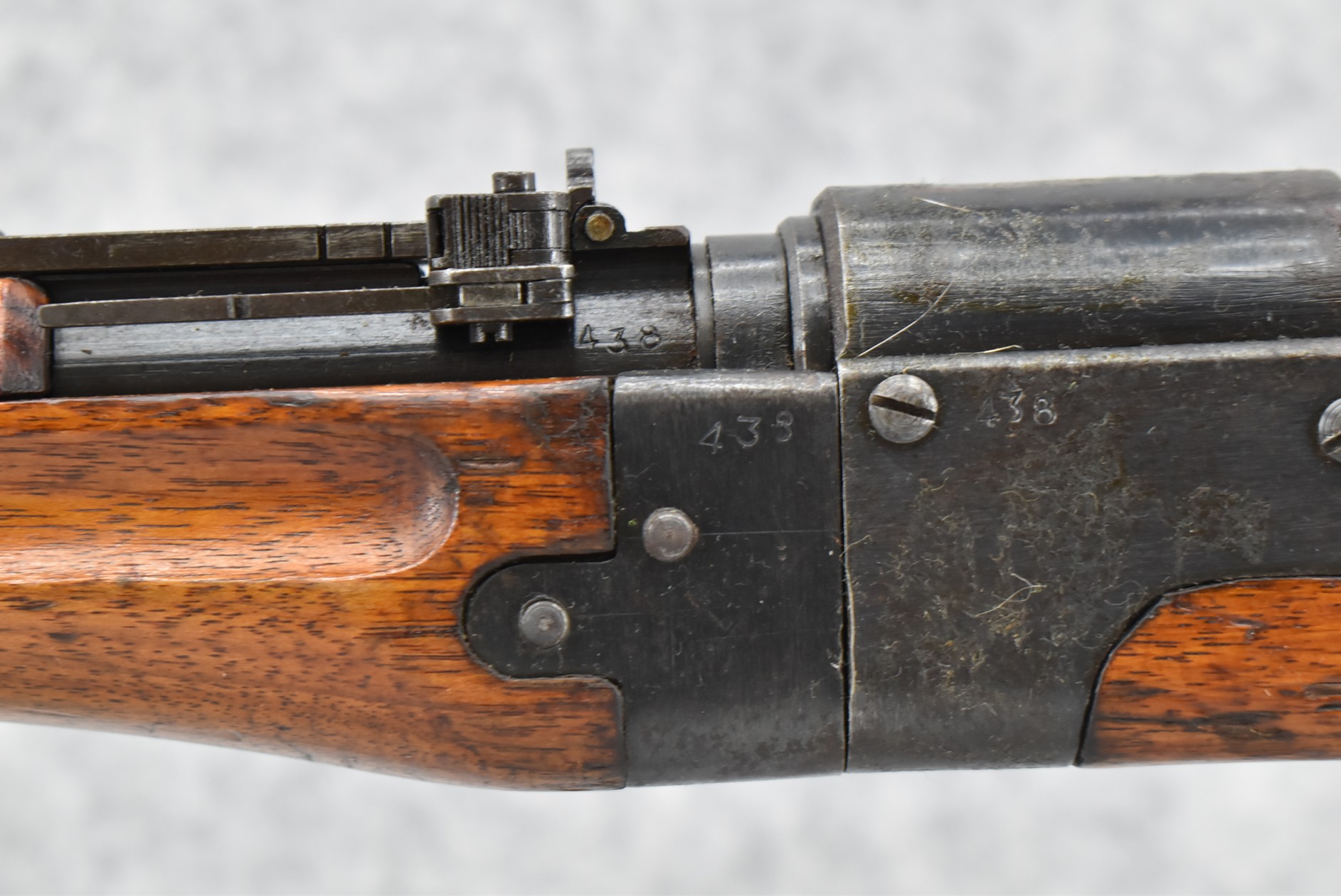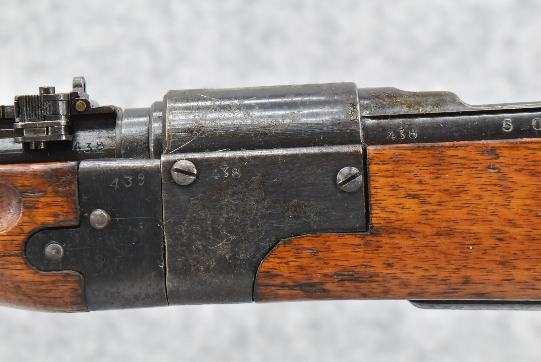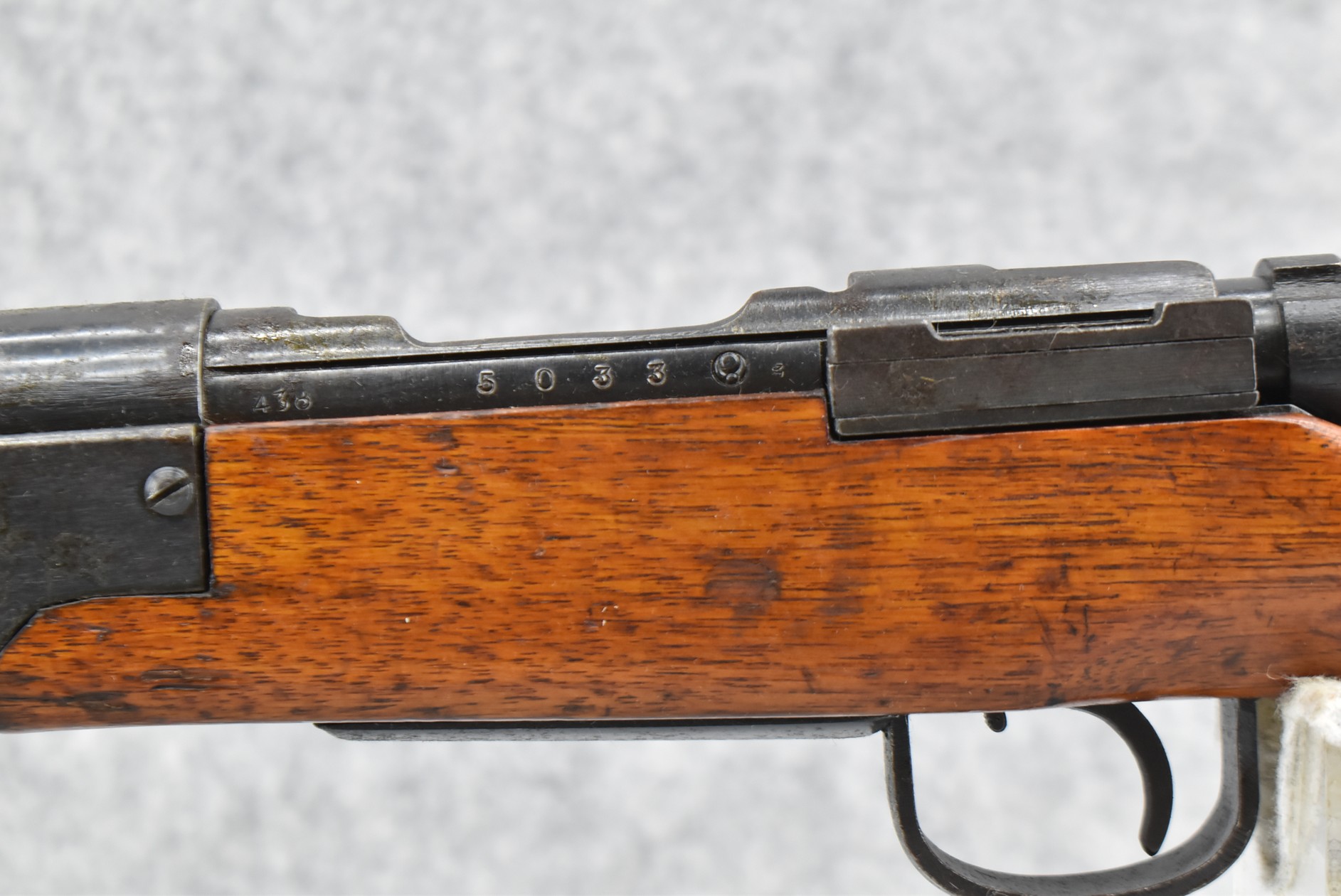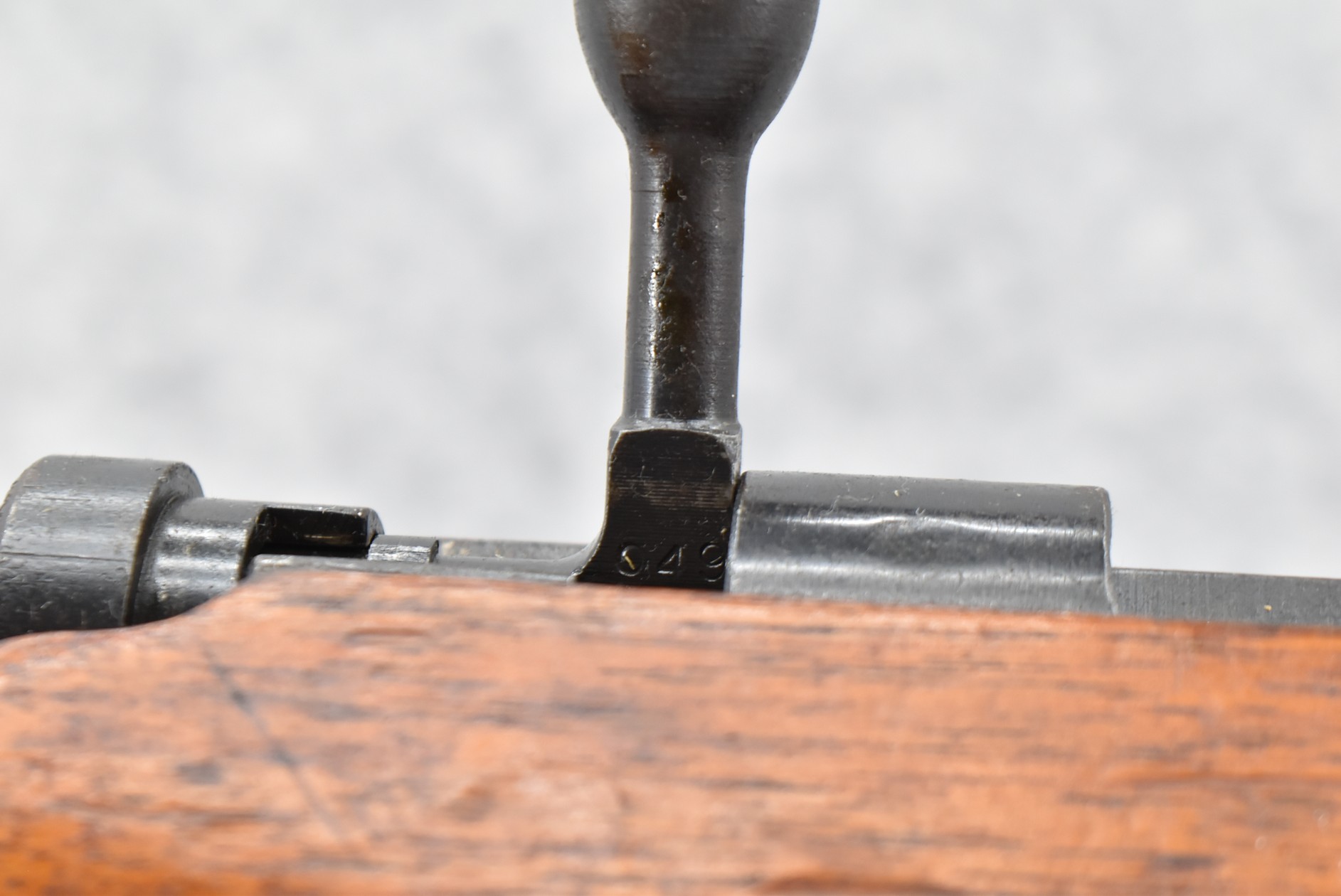 400R. Japanese – Type II Tera-Paratrooper Rifle – 7.7mm Jap Cal. Bolt Action Rifle – w/25 ½” Barrel w/Blade Front & Adj. Rear Ladder Anti-Aircraft Sights w/Wings – Military Finish – w/Pistol Grip Wood Stock w/Metal Butt Plate w/Finger Groove Forend & Guard – w/Sling Loops – Ground Mum