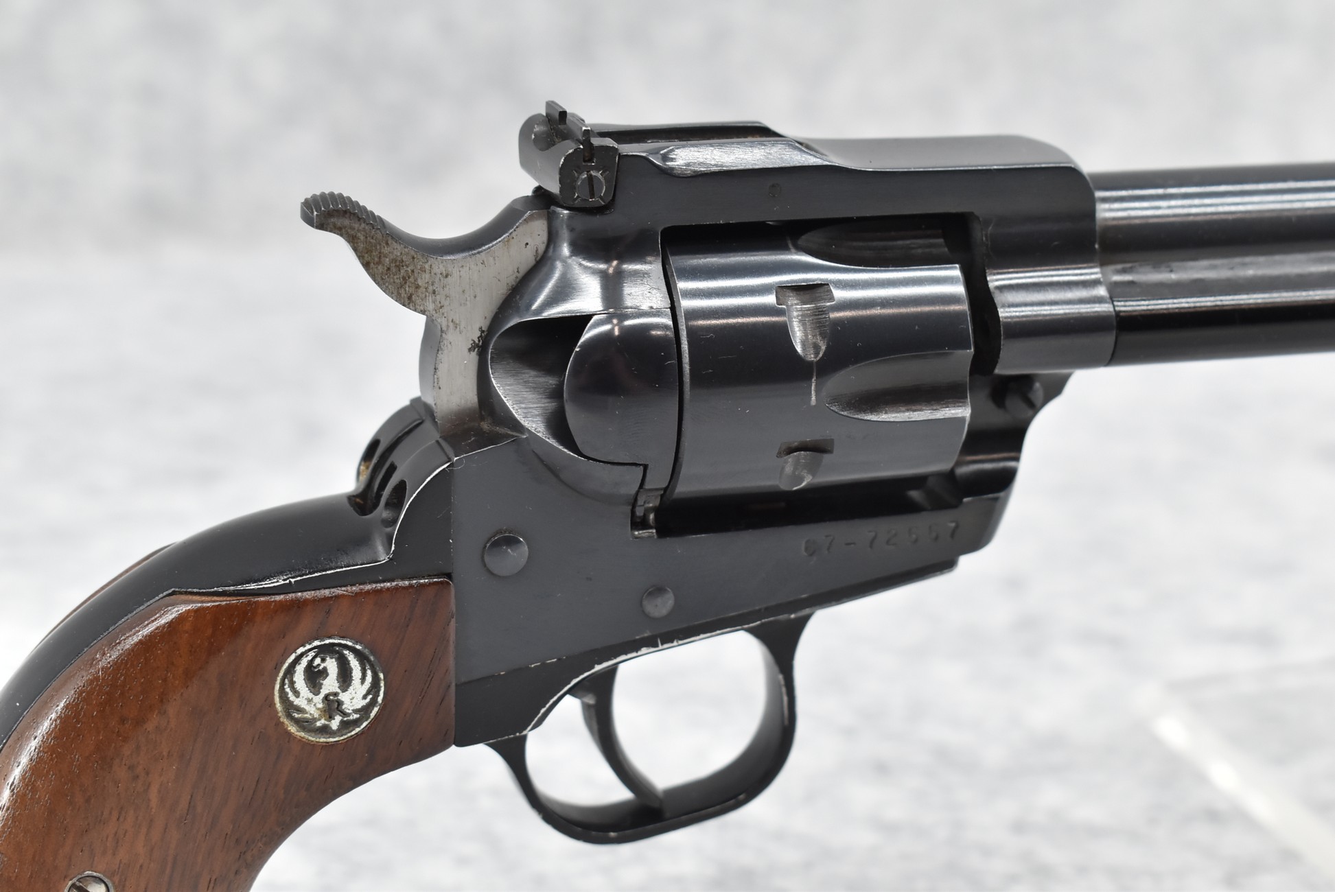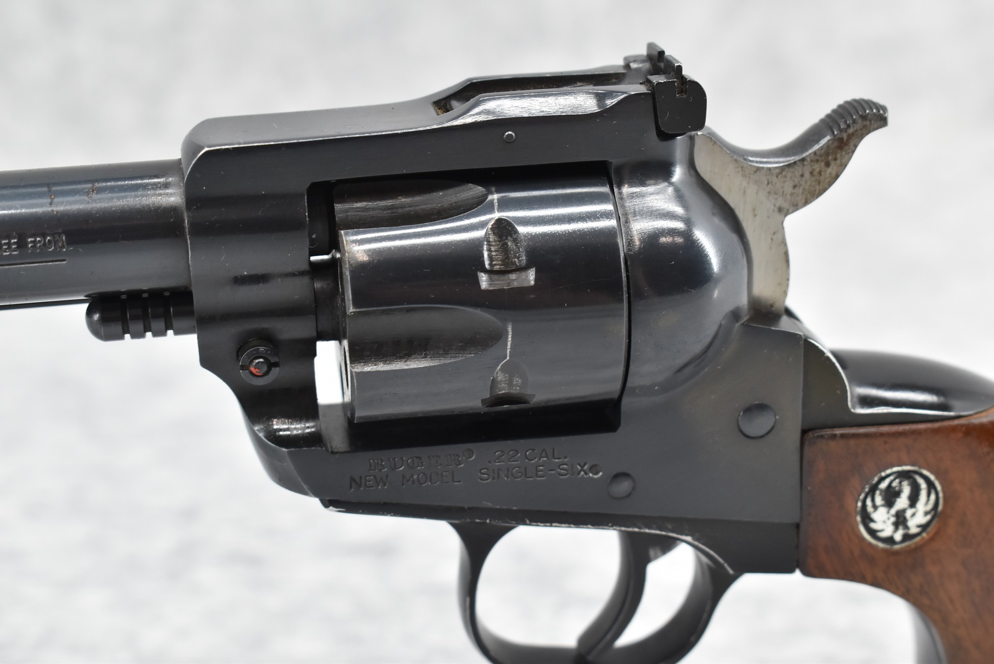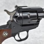 401R. Ruger – New Model Single Six – 22 Cal. Single Action Revolver – w/9 ½” Barrel w/Ramp Blade Front & Adj. Rear Notch Sights – Blued Finish – w/Ruger Eagle Smooth Wood Grips