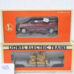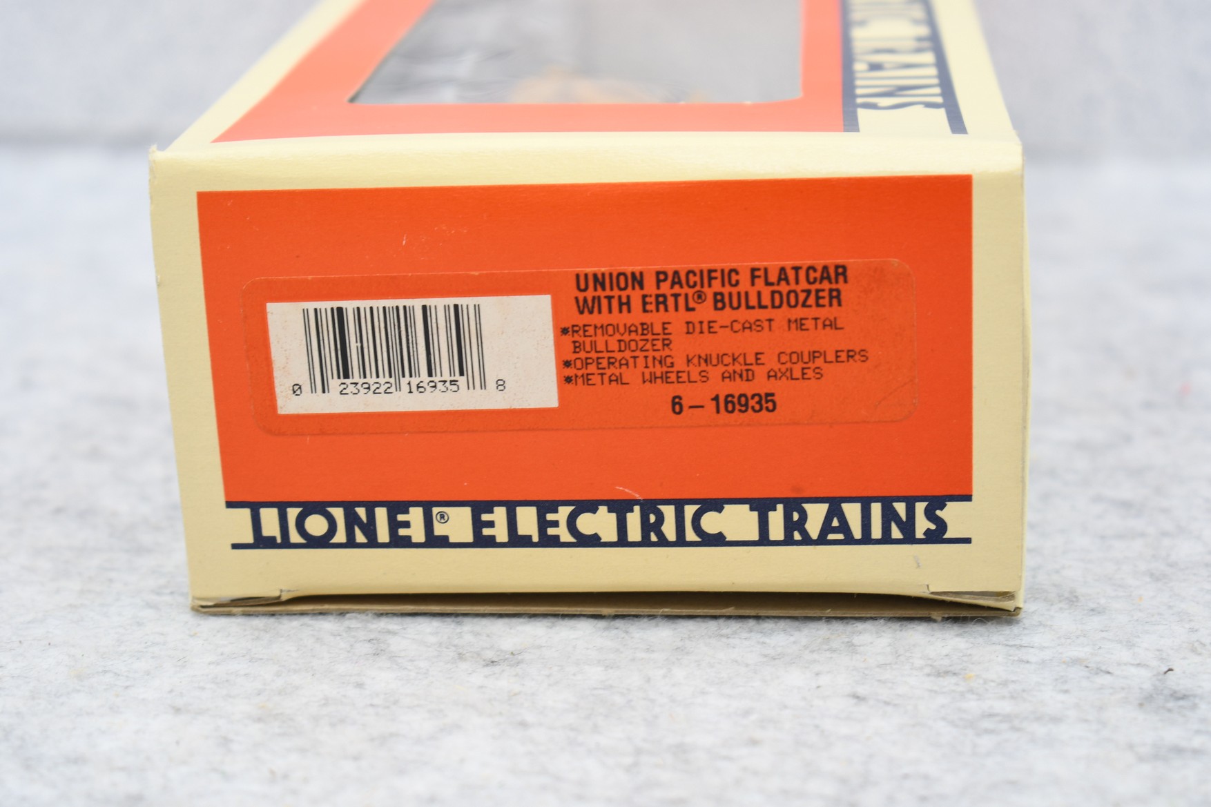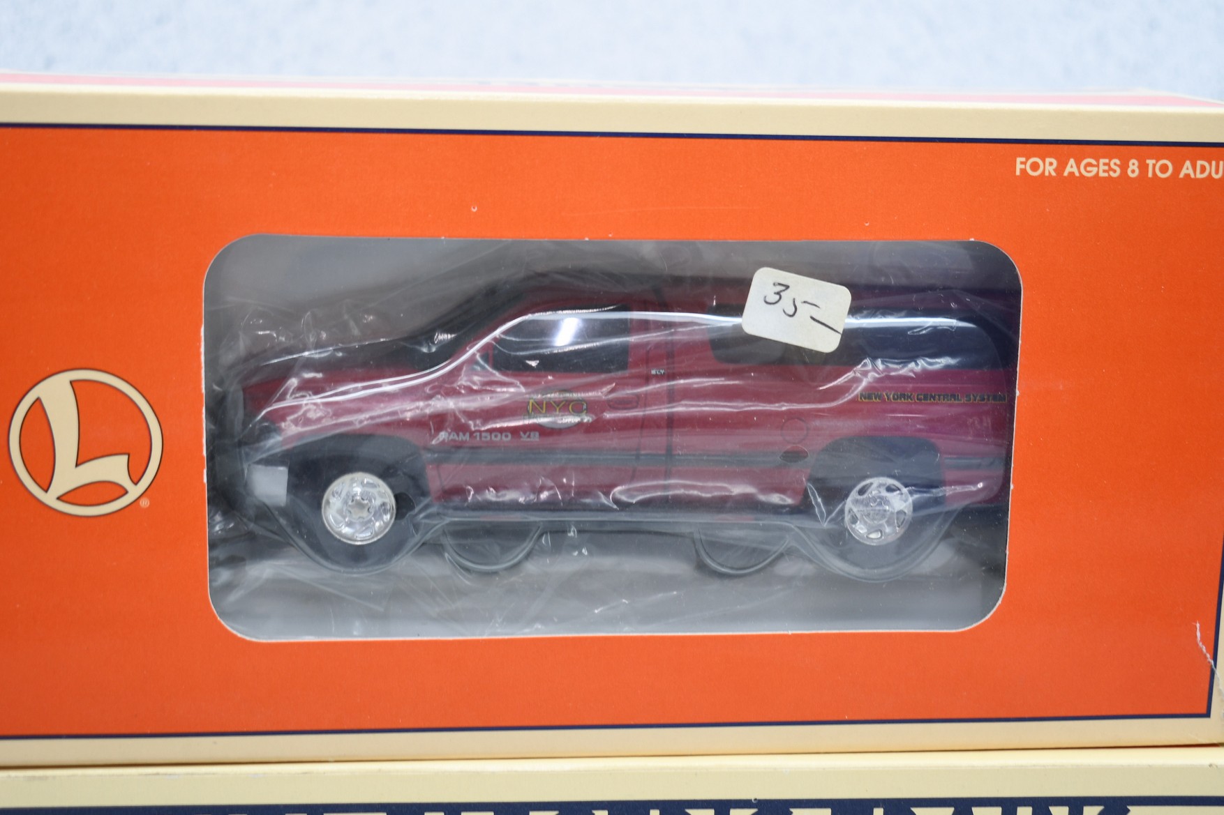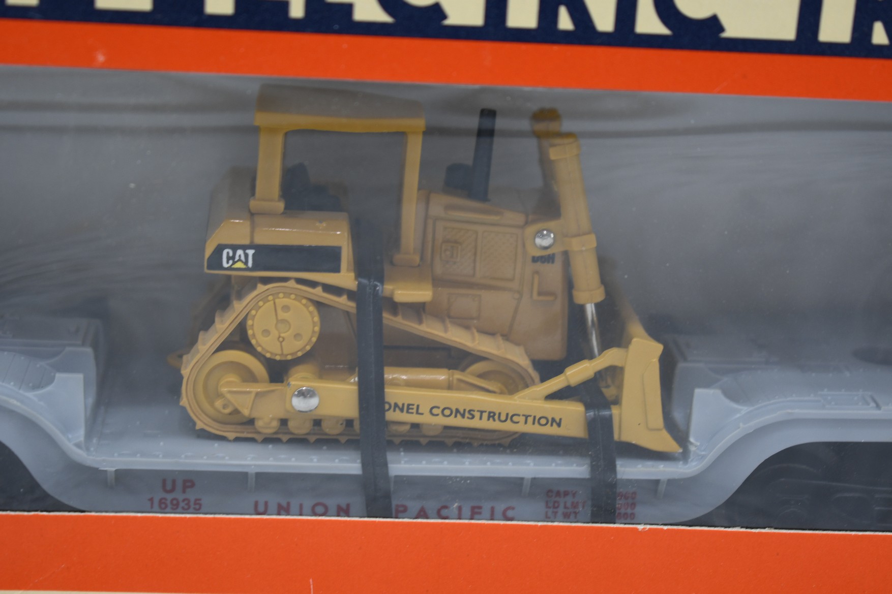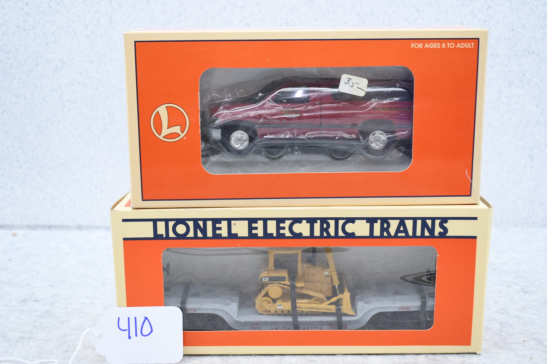 410. Pair of Lionel items including 6-18436 Dodge Ram Track inspection vehicle, 6-16935 Union Pacific Flatcar with Ertl Bulldozer. Both are NIB