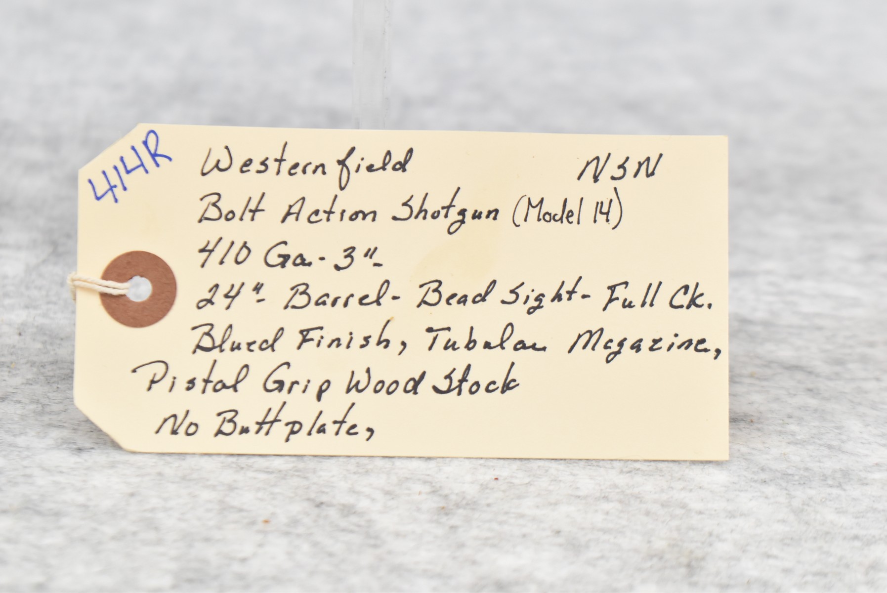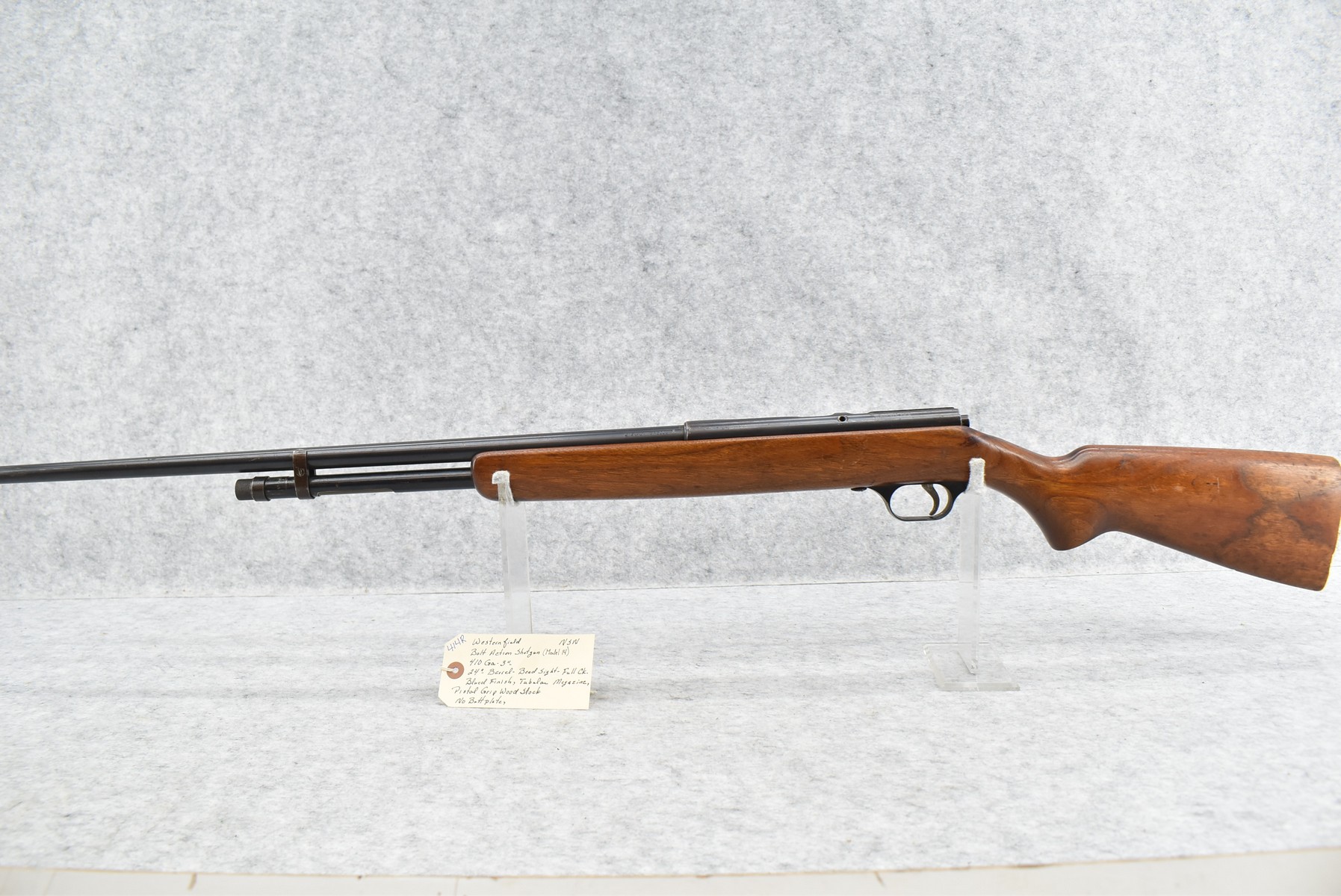 414R. Westernfield – Mod. 14 – 410ga. 3” Bolt Action Shotgun – w/24” Full Choke Barrel w/Bead Sight – Blued Finish – w/Pistol Grip Wood Stock, No Butt Plate – w/Tubular Magazine