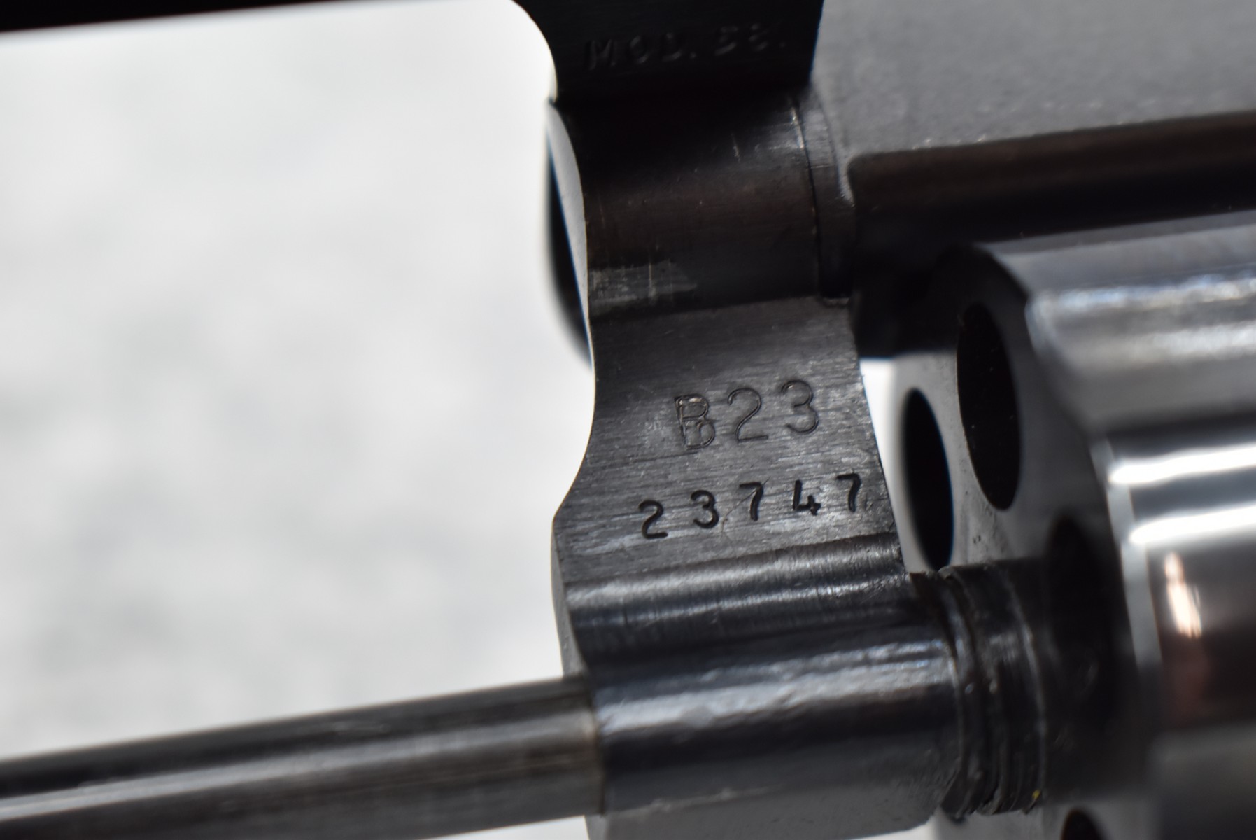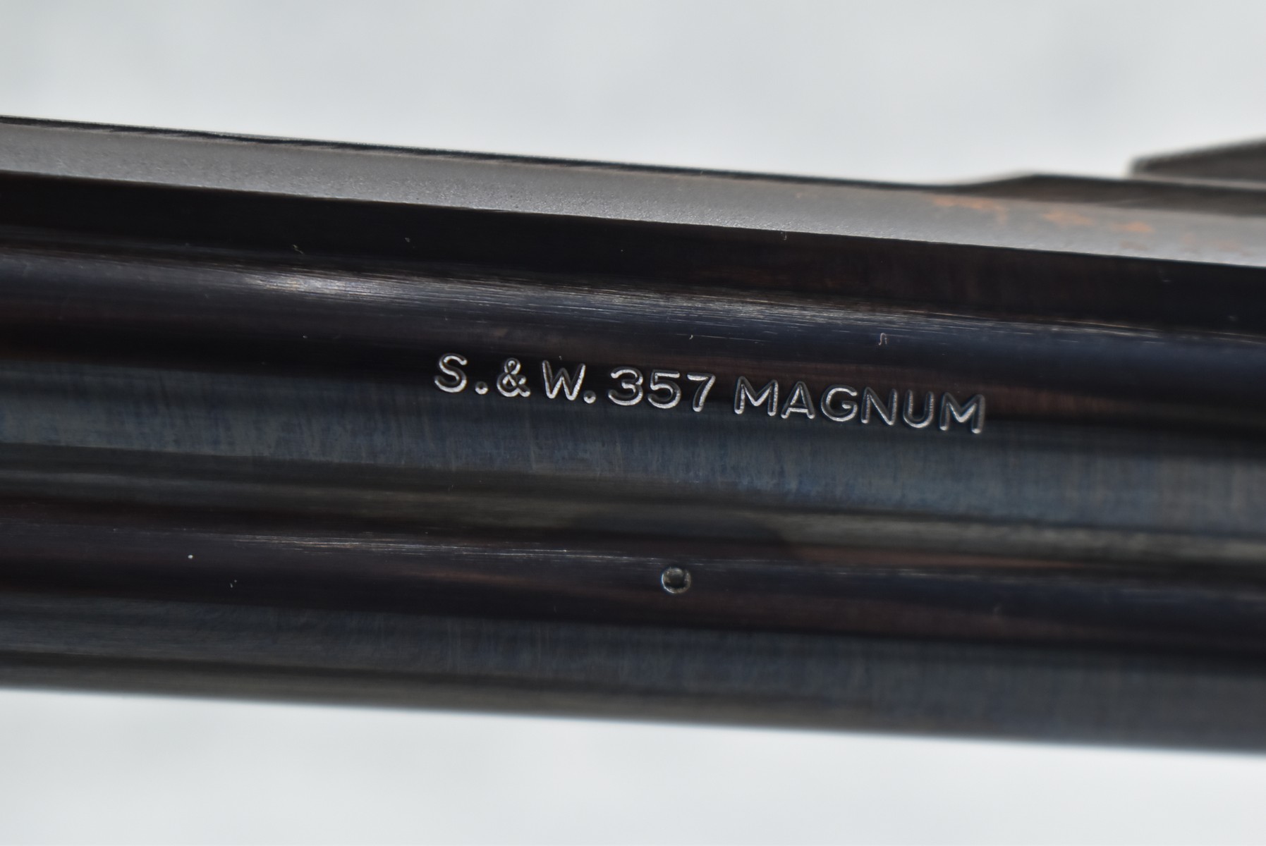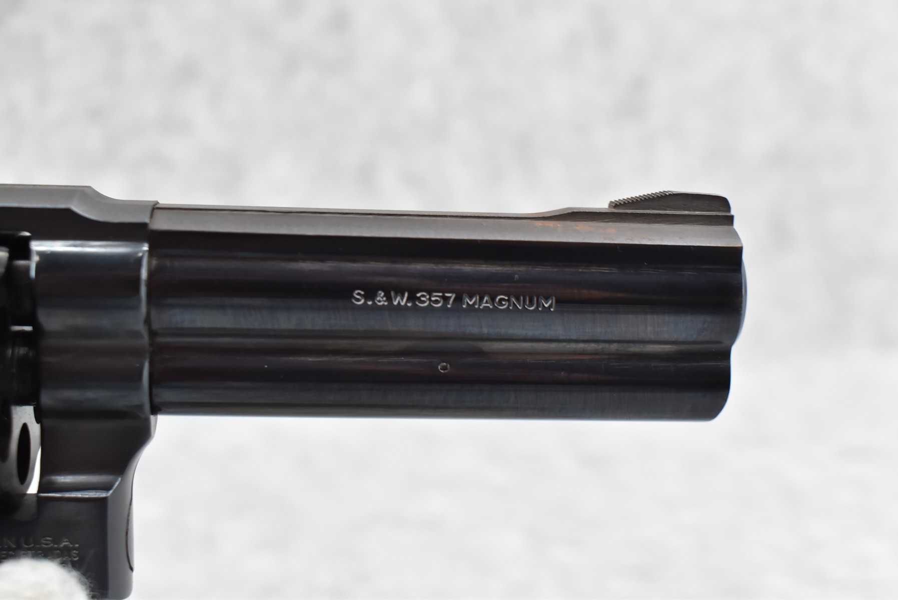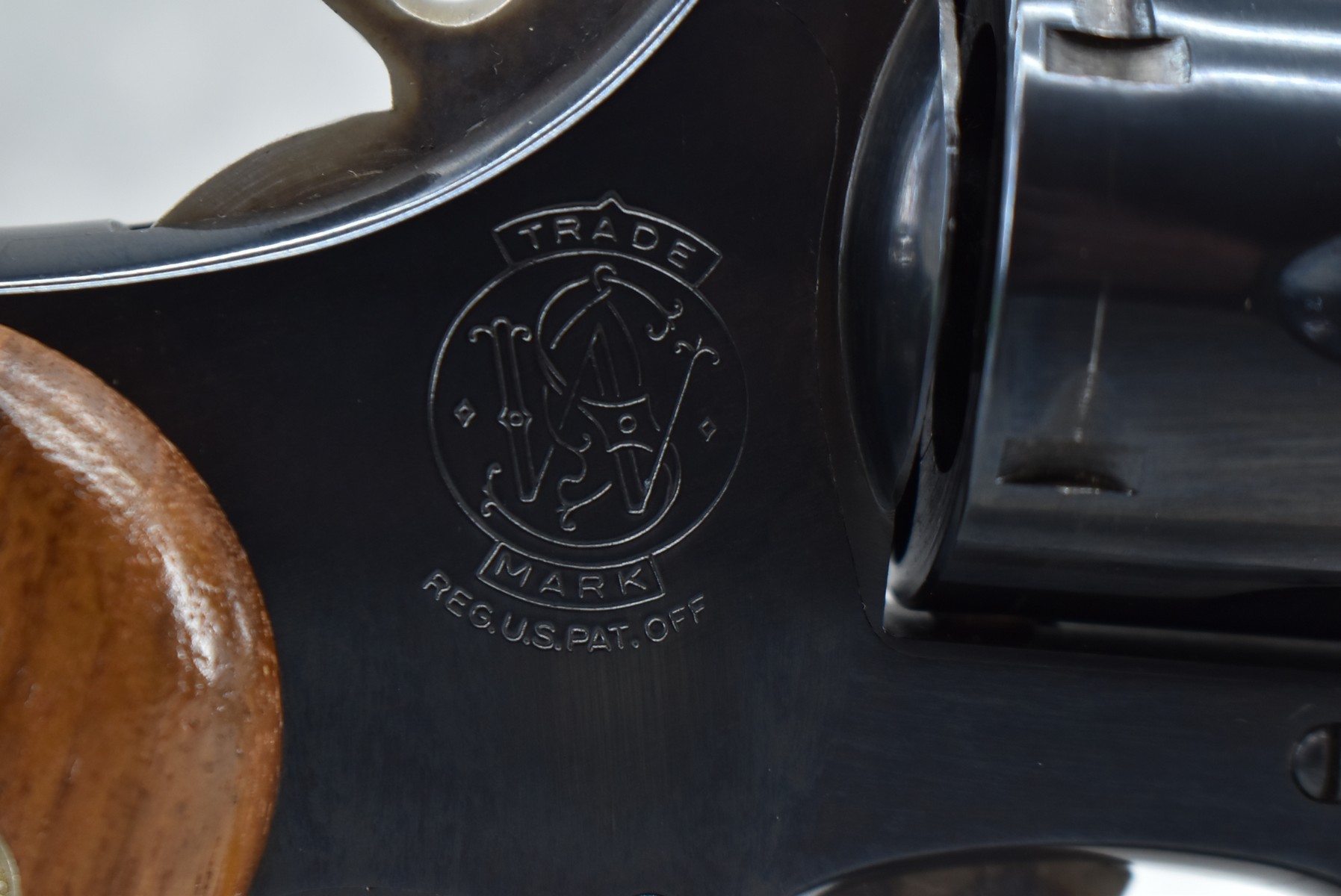 419R. Smith & Wesson – Mod. 581 Distinguished Service Magnum – 357 Mag. Cal. Double Action Revolver – w/4” Barrel w/Blade Front & Notch Rear Sights – Blued Finish – w/S&W Medallion Checkered Wood Grips – Mfg. Between 1980-1988 Only