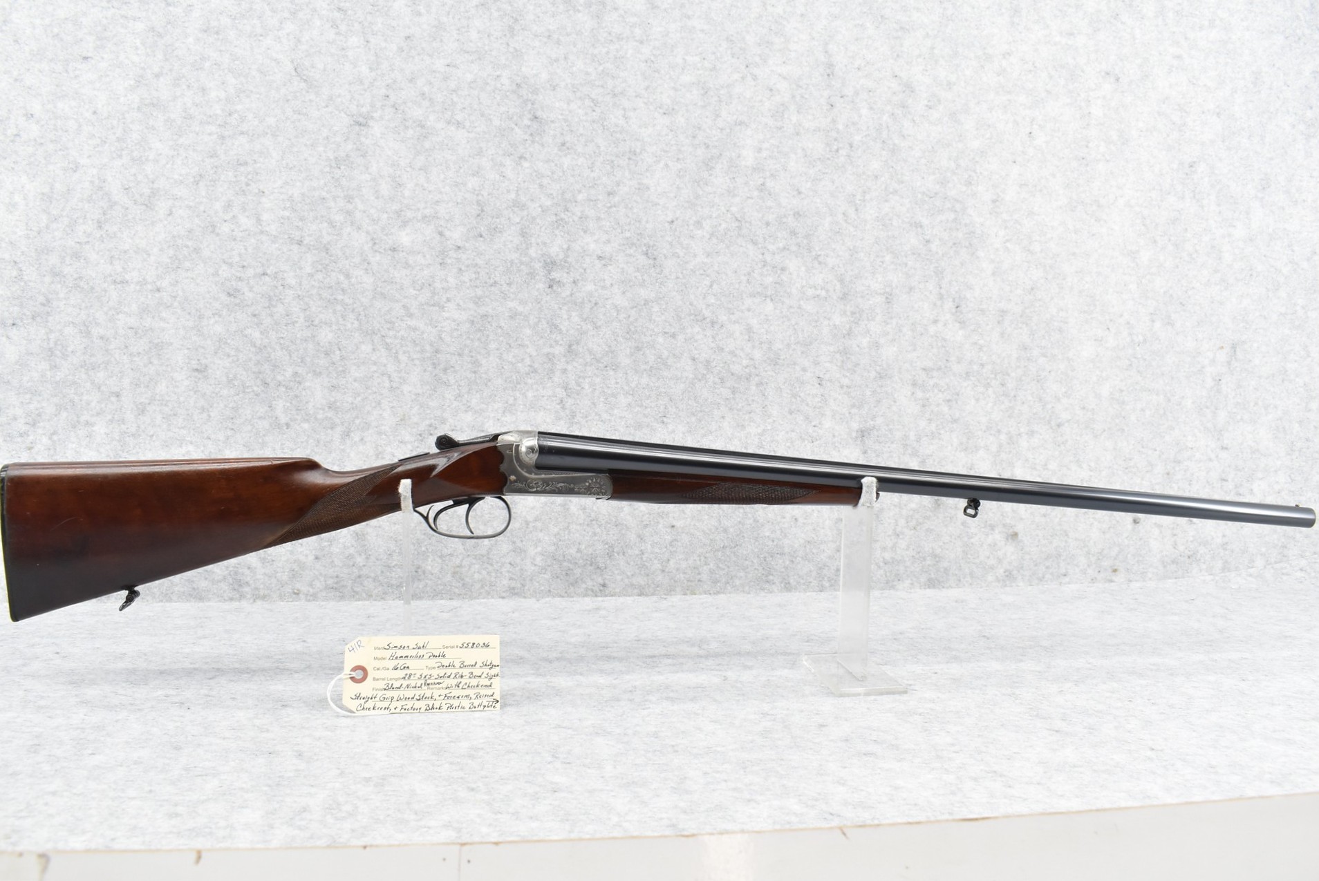 41R. Simson Suhl – Mod. Hammerless Double – 16ga. Double Barrel Shotgun – w/28” Solid Ribbed Barrels w/Front Bead Sight – Blued Finish w/Nickel Receiver – w/Checkered Straight Grip Wood Stocks w/Raised Cheek Rest and Factory Butt Plate – w/Enhanced Frame on All Sides – w/Sling Loops – w/Cocking Indicators