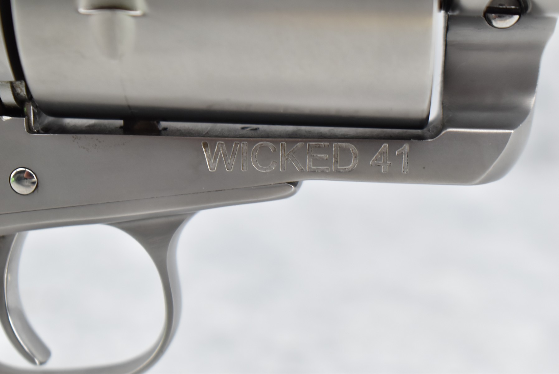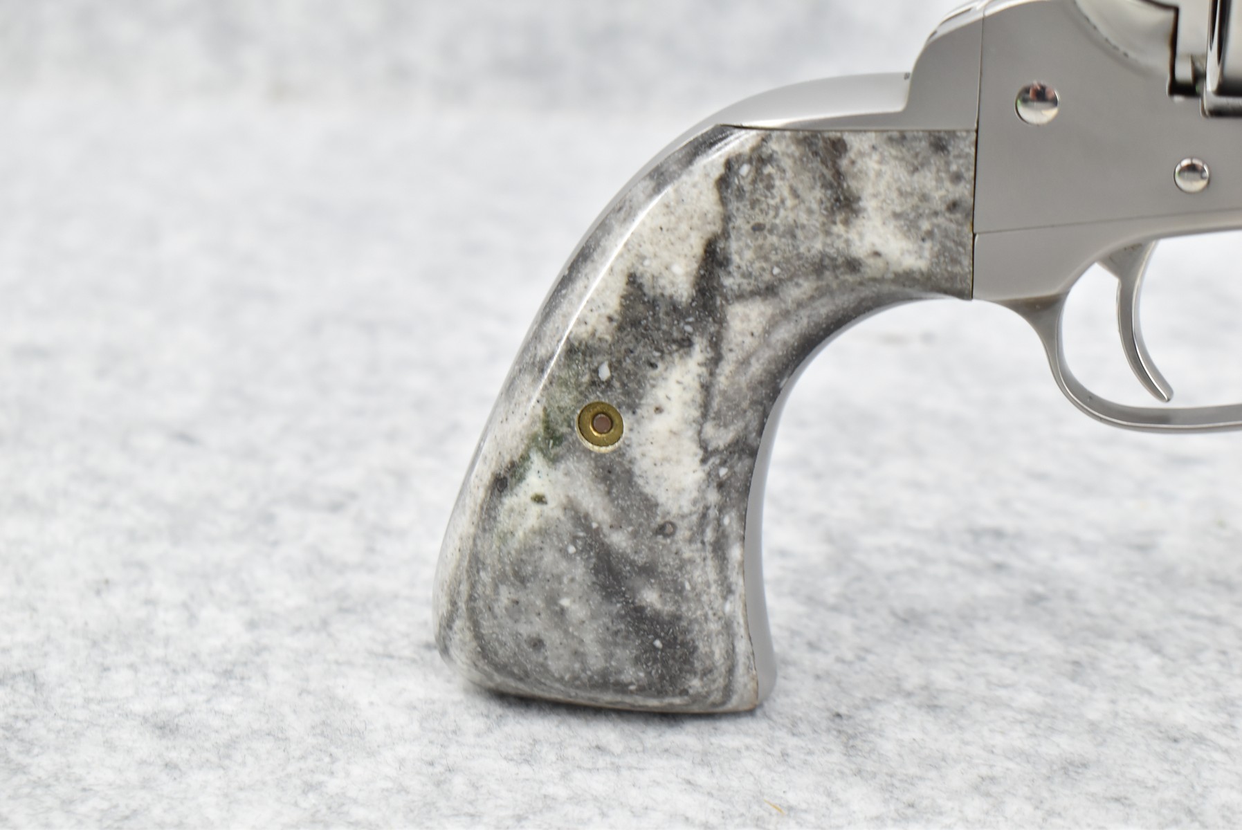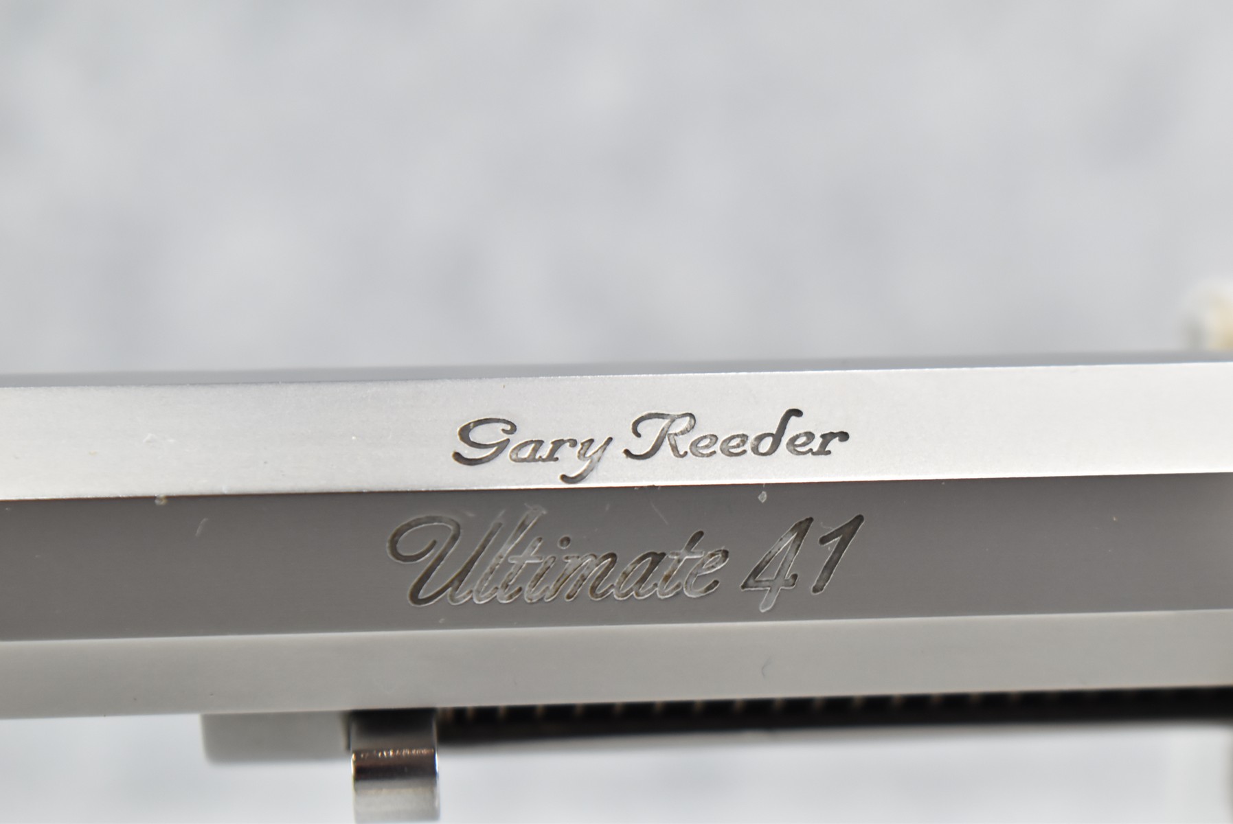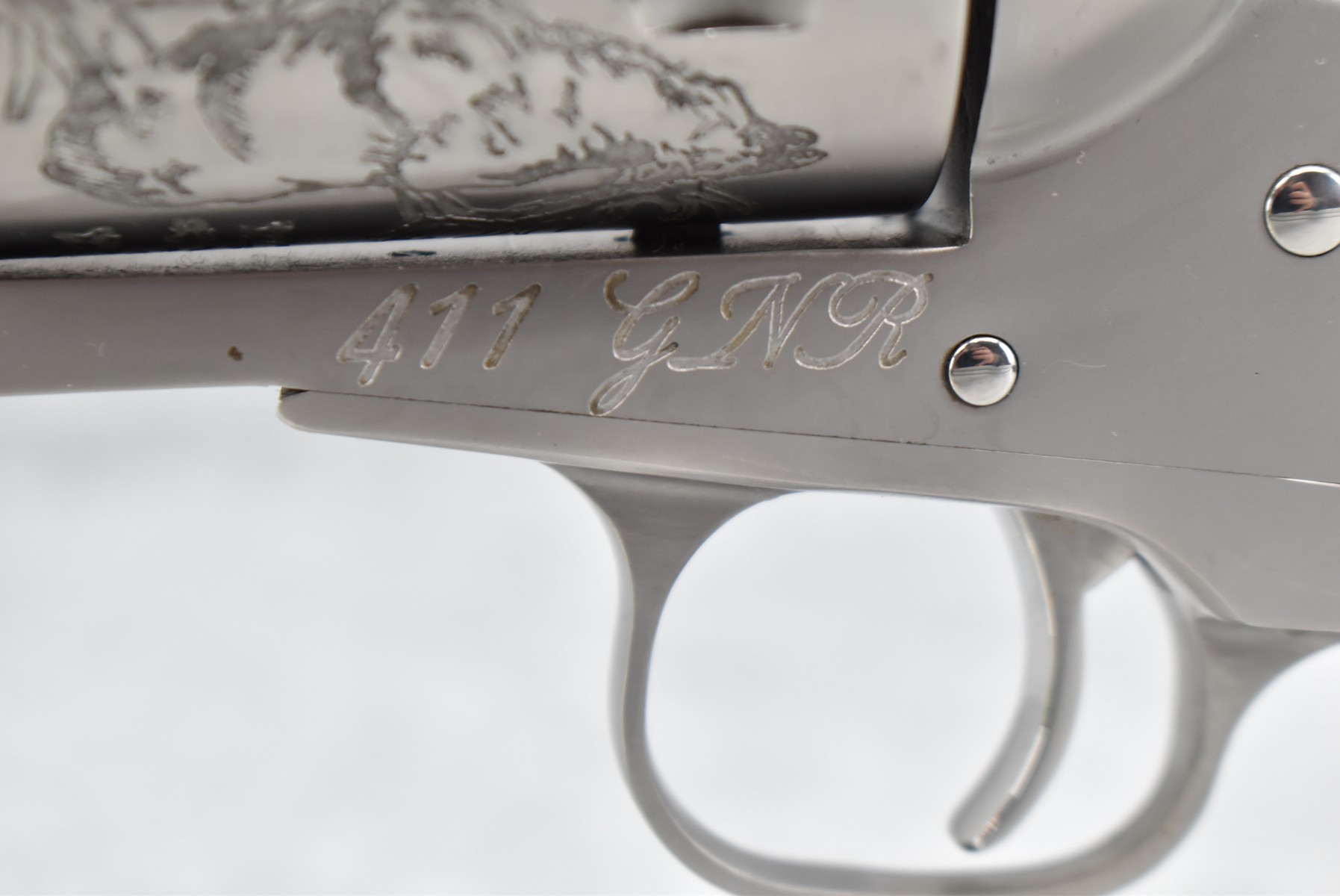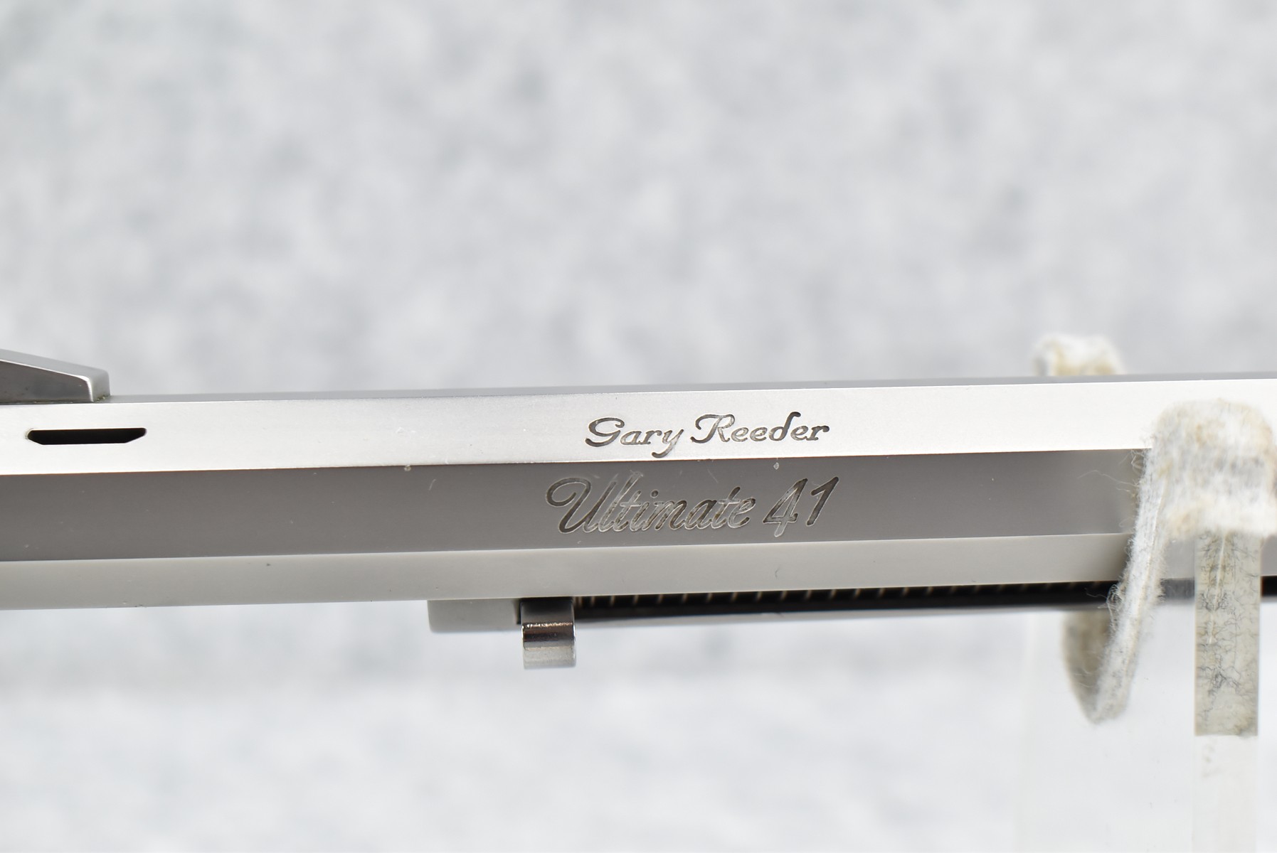 422R. Gary Reeder Custom – Mod. Ultimate 51 – 41 GNR Cal. Single Action Revolver – w/8 ¼” Octagon, Ported Barrel w/Blade Front & Adj. Rear Notch Sights – Stainless Finish – w/Enhanced Cylinder w/Bull Elk on 1 Side & 3 Rams on the Other – w/Custom Grips Appear to be Resin Made to Look Like Granite – w/State of Maryland Handgun Roster Board Determination Notice & Original Box (CANNOT GO TO MARYLAND!)