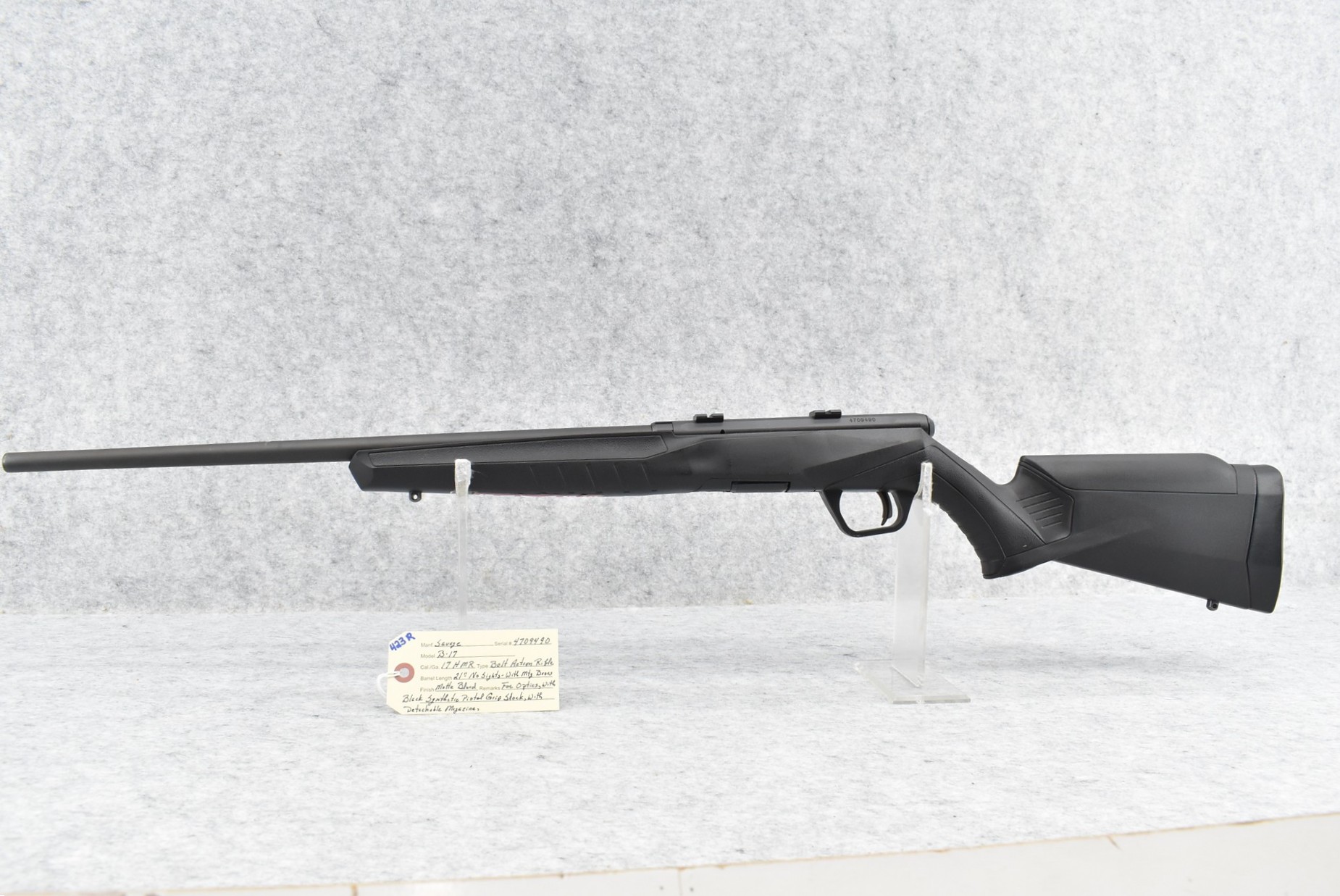 423R. Savage – Mod. B-17 – 17 HMR Cal. Bolt Action Rifle – w/21” Barrel – Matte Blued Finish – w/Black Synthetic Pistol Grip Stock – w/Detachable Magazine – w/Mounting Bases