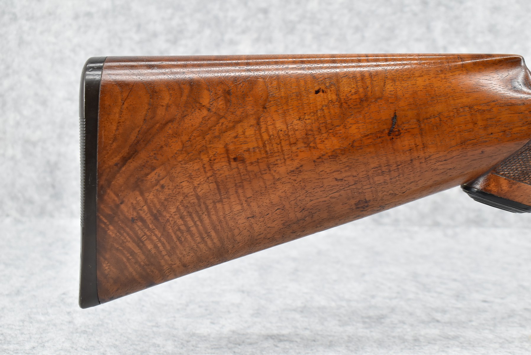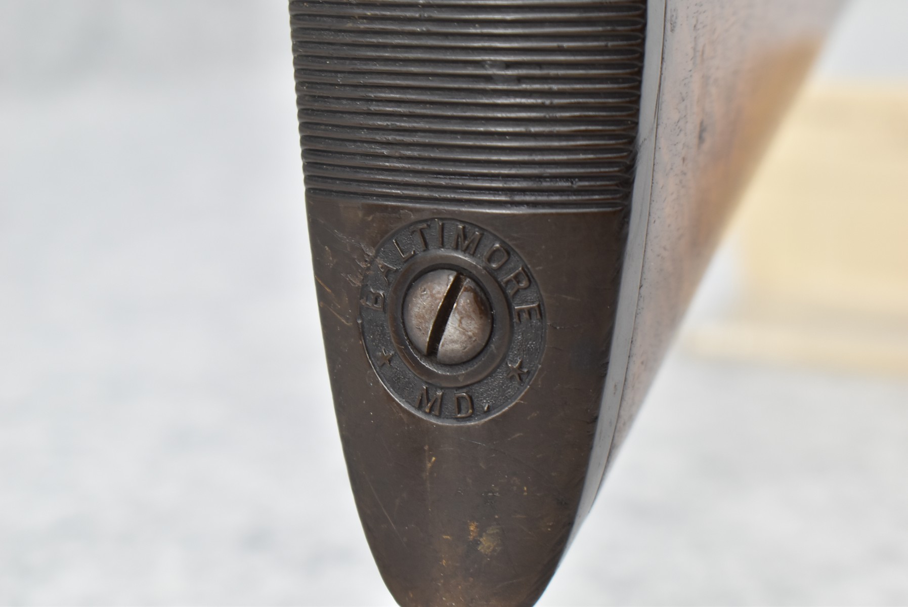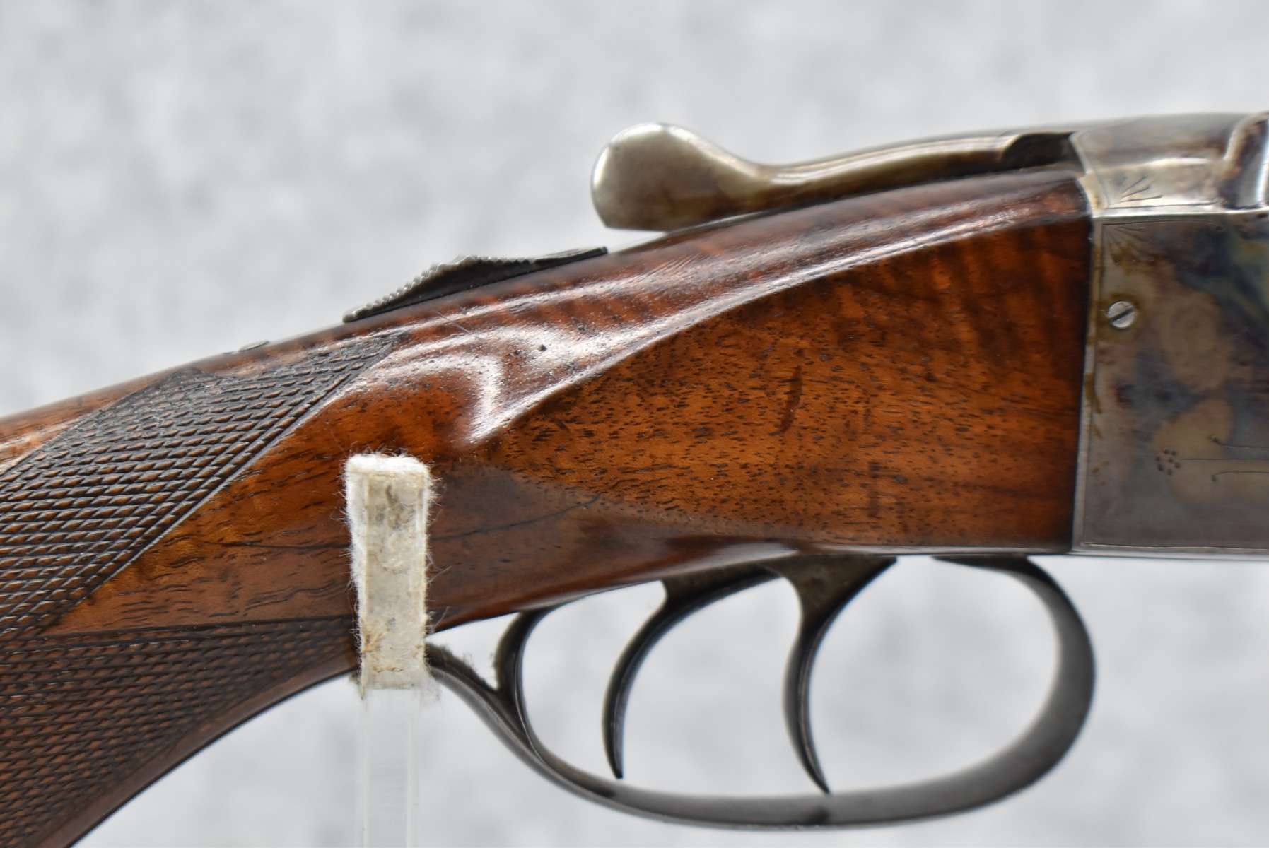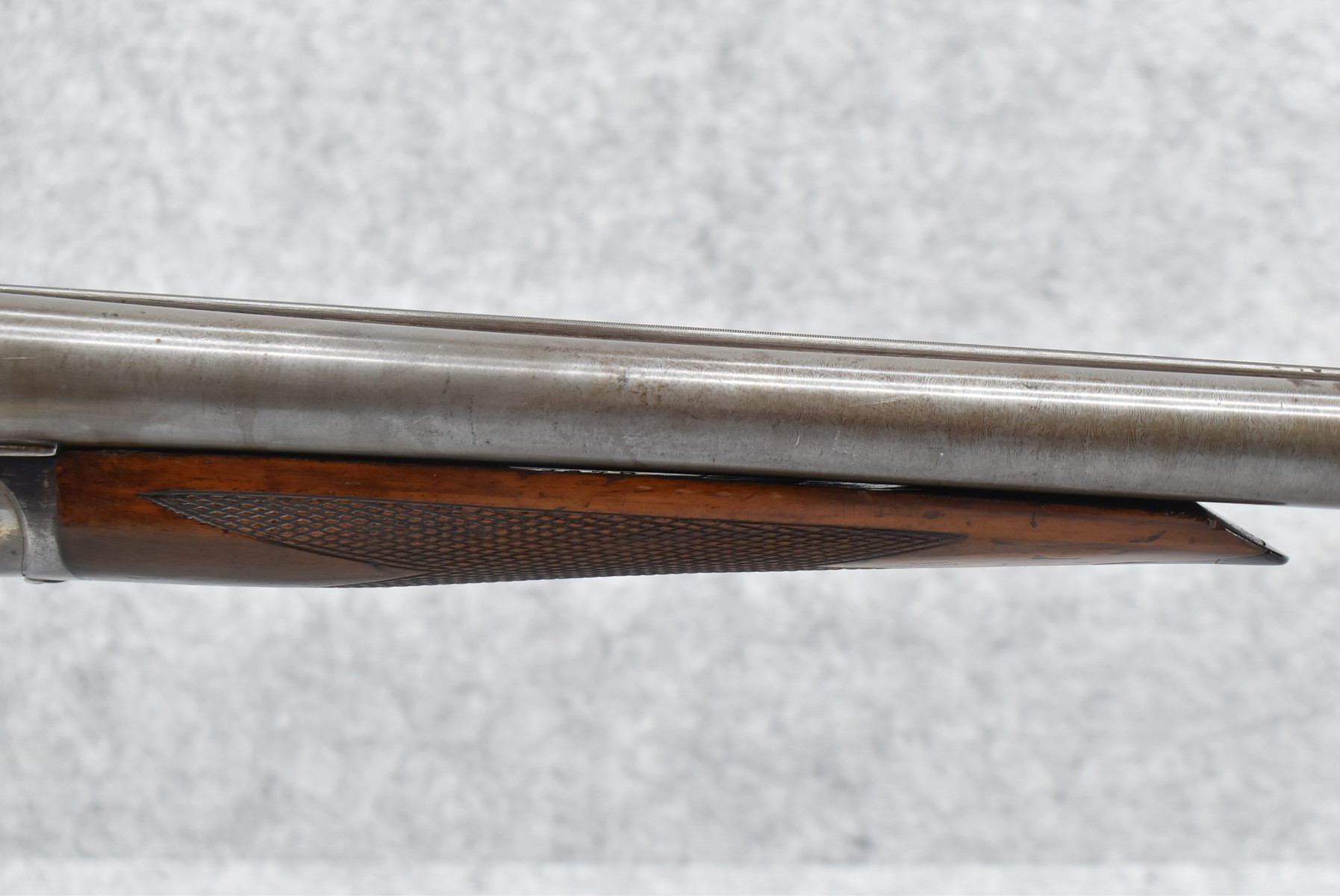 42R. Baltimore Arms Co. – Mod. B Grade – 12ga. Hammerless Double Barrel Shotgun – w/30” Full & Full Choke, Solid Rib, Damascus Barrels w/Front Bead Sight – Brown & Vivid Case Colors Finish – w/Lightly B Grade Engraved Frame – w/Deluxe Fine Line Checked Capped Nicely Figured Pistol Grip Wood Stock & Black Tipped Forearm w/Factory Hard Rubber Butt plate – w/Double Triggers & Extractors