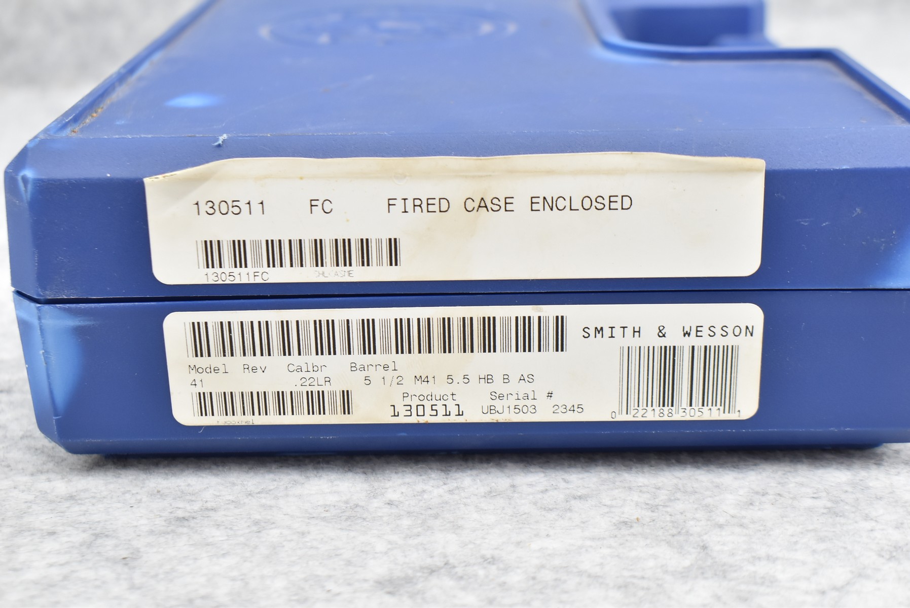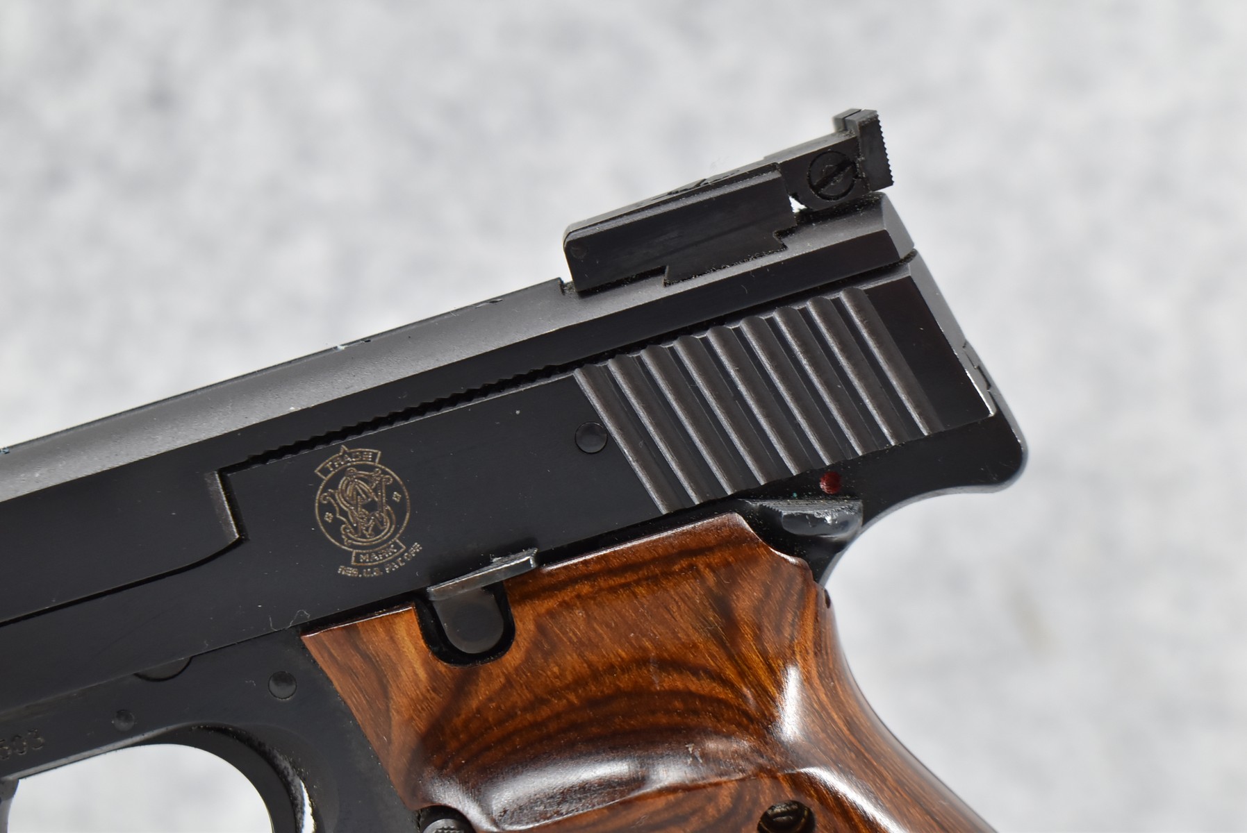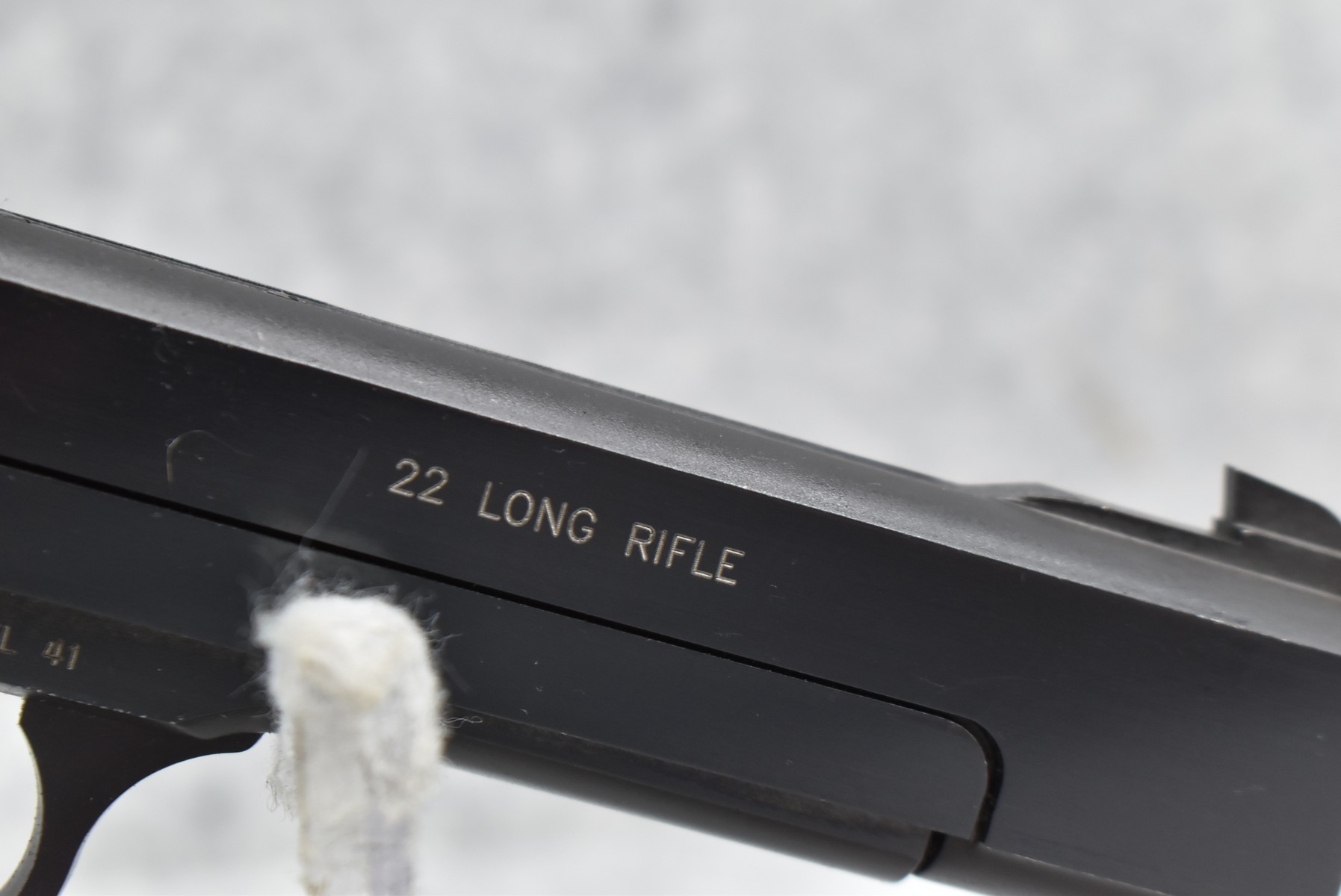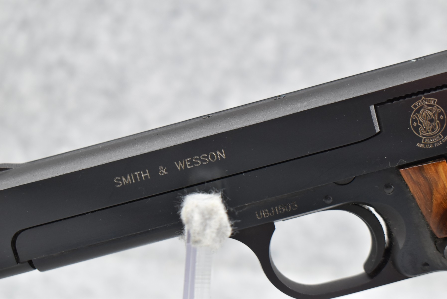 431R. Smith & Wesson – Mod. 41– 22LR Cal. Semi-Auto Target Pistol – w/5½” Barrel w/Target Blade Front and Adjustable Rear Sights – Blued Finish – w/Factory Checkered Wood Grips – w/Factory Hard Case and 2 Detachable Magazines