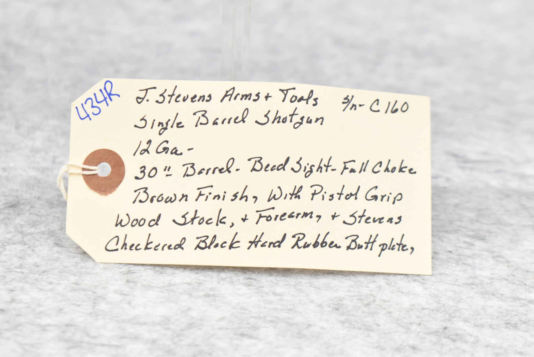 434R. Stevens – 12ga. Single Barrel Shotgun – w/30” Barrel w/Bead Sight and Full Choke – Brown Finish – w/Pistol Grip Wood Stock and Forearm w/Stevens Factory Butt Plate