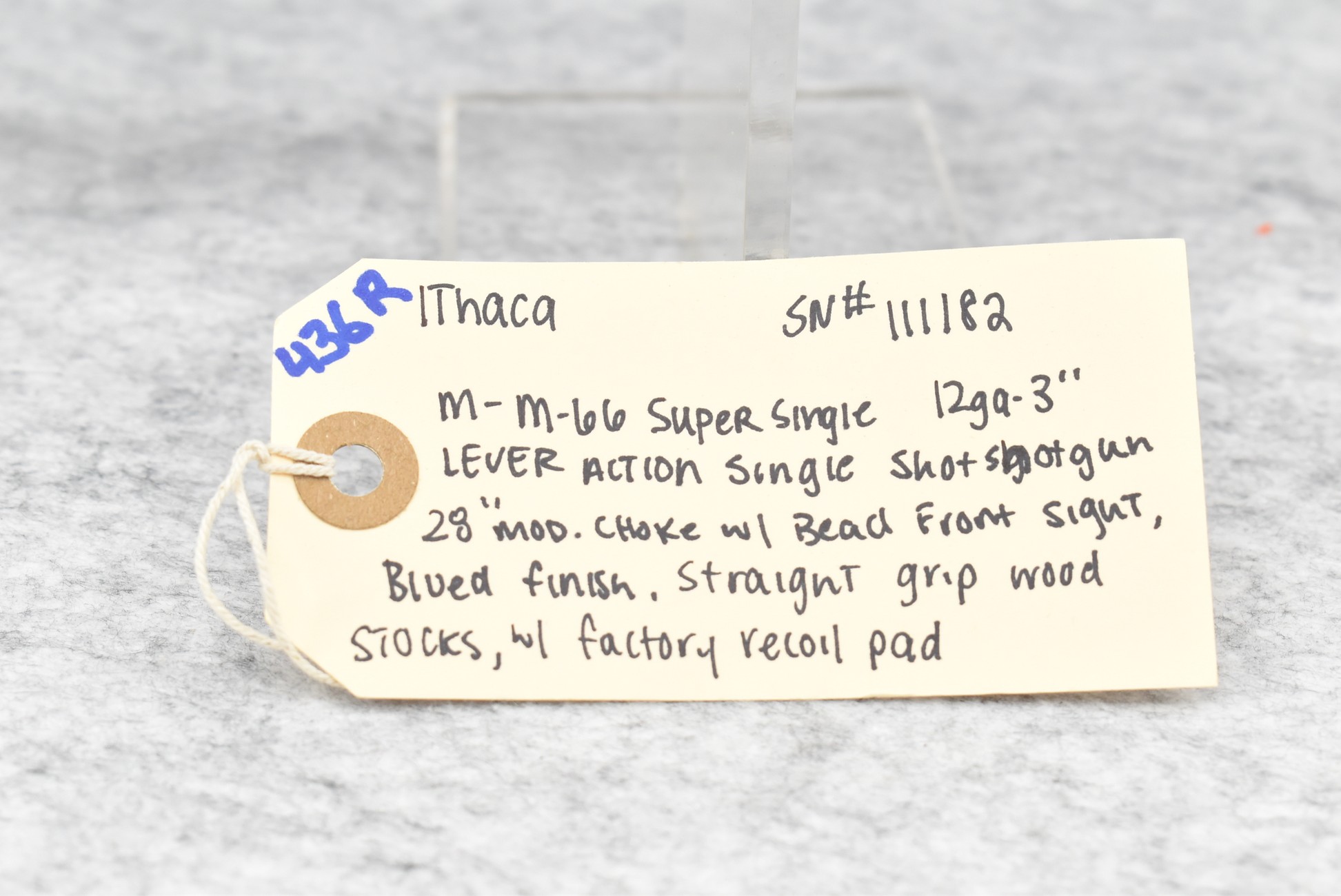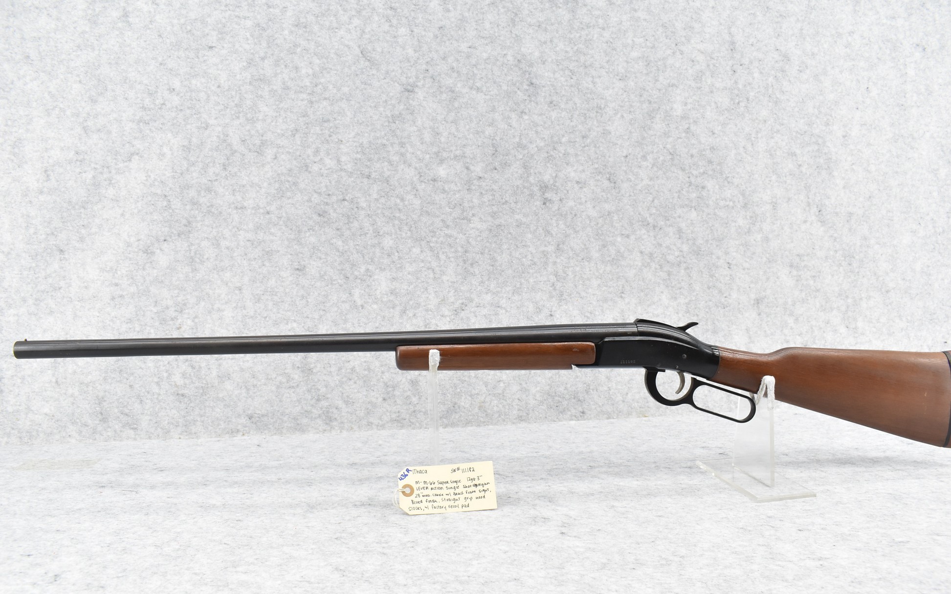 436R. Ithaca – Mod. 66 Super Single – 12ga. 3” Lever Action Single Shot Shotgun – w/28” Mod. Choke Barrel w/Bead Front Sight – Blued Finish – w/Straight Grip Wood Stocks w/Factory Recoil Pad