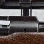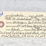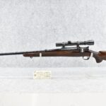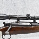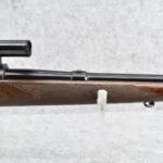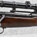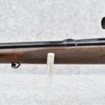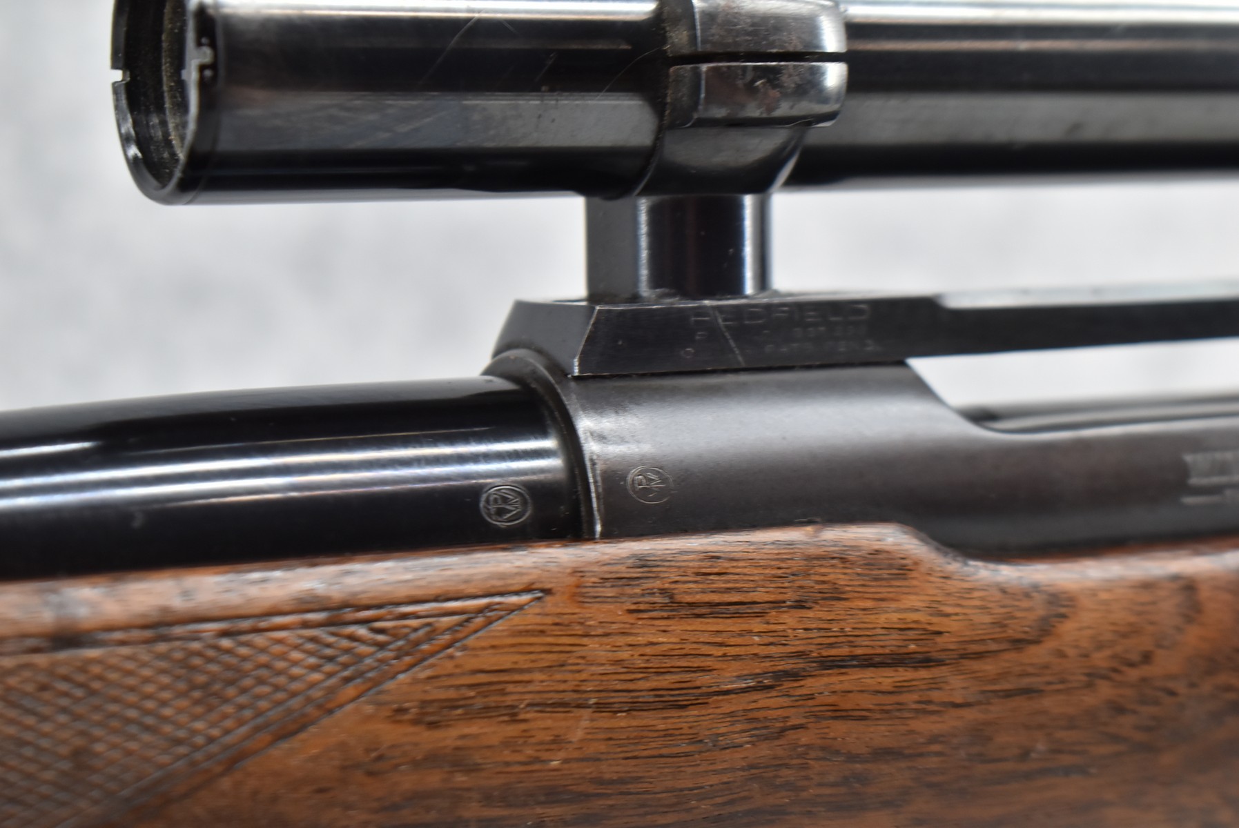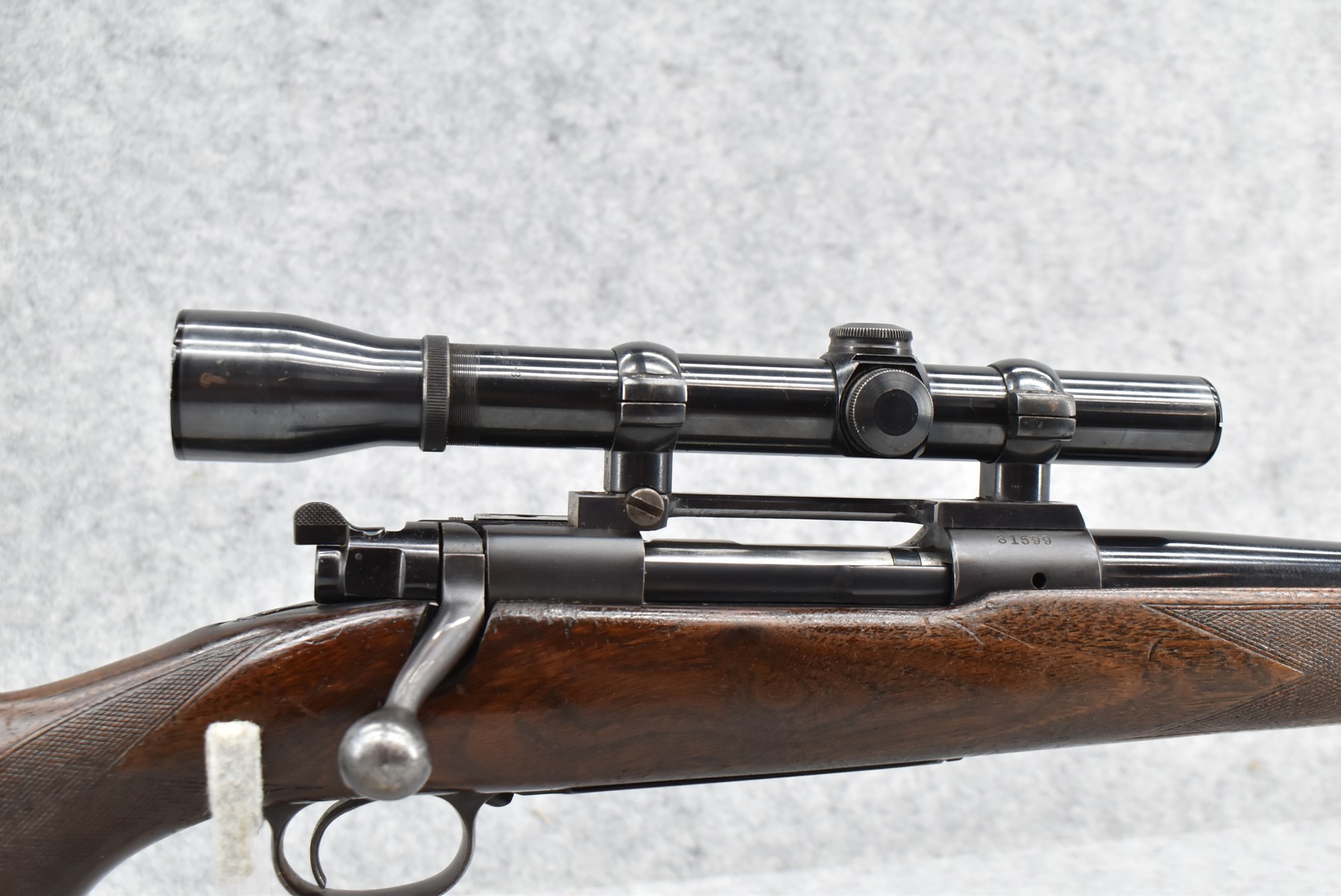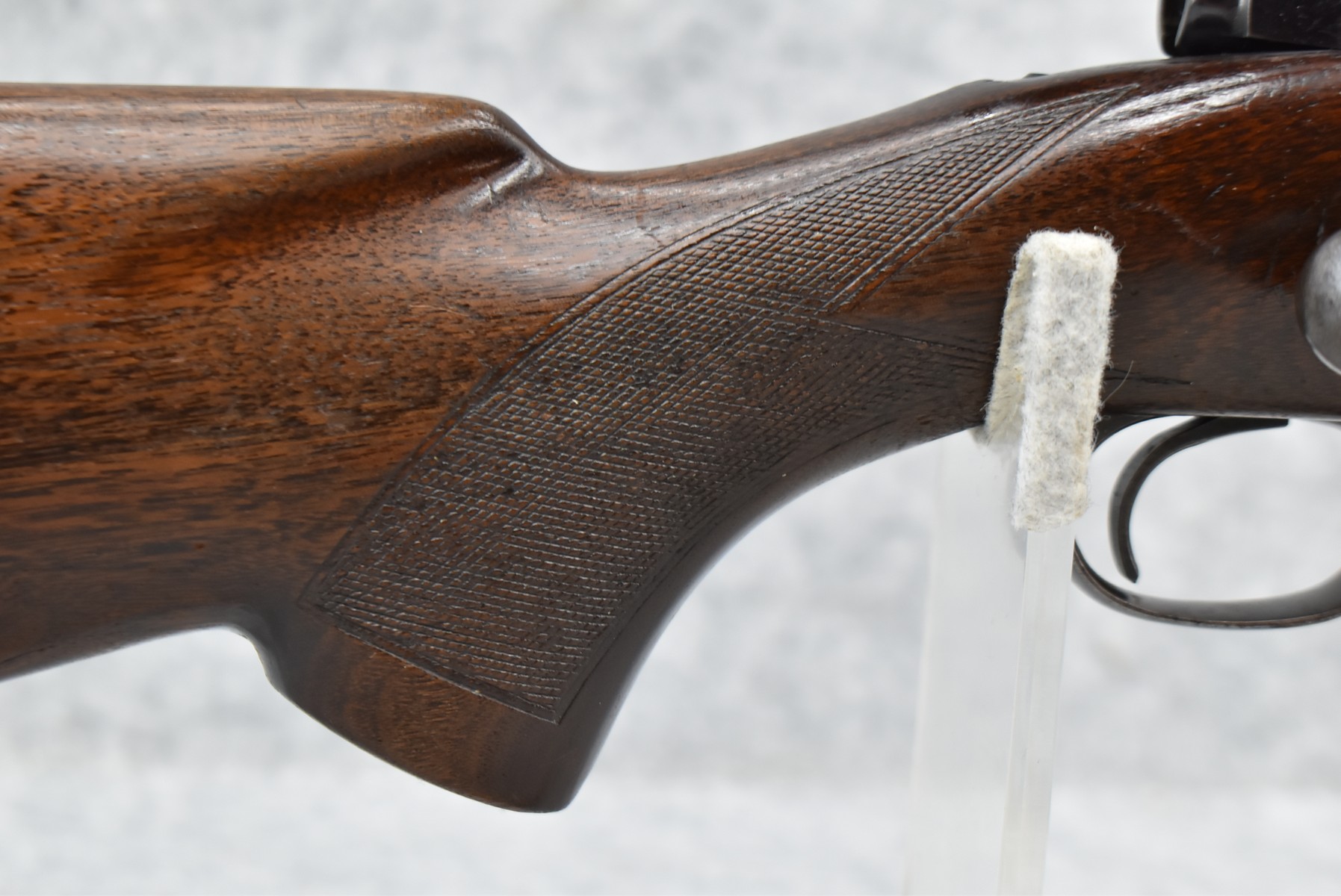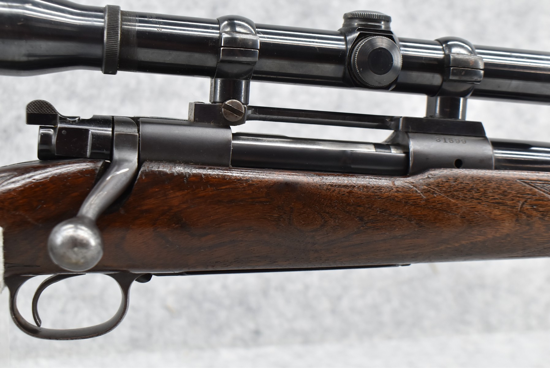 437R. Winchester – Mod. 70 Standard (Pre 64) Pre-War – 30-06 Sprg. Cal. Bolt Action Rifle – w/24” Barrel w/Ramp Blade Front and Rear Dovetail Blank Sights – Blued Finish – w/Checkered Pistol Grip Wood Stock w/Factory Metal Butt Plate – w/Weaver K-3 60B Scope, Redfield Mounts, and Rear Lyman Peep Sight Mount Base – Manufactured in 1940