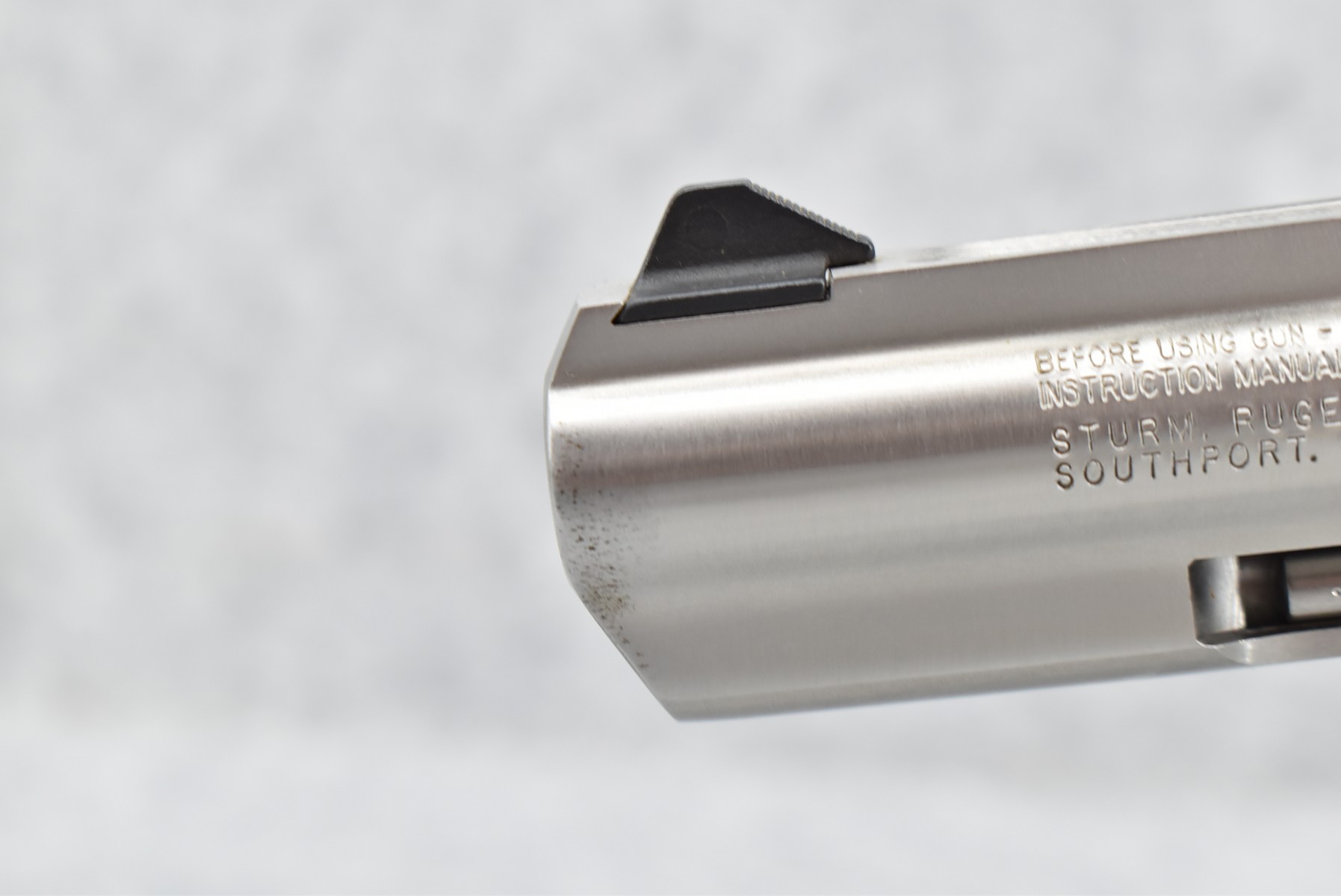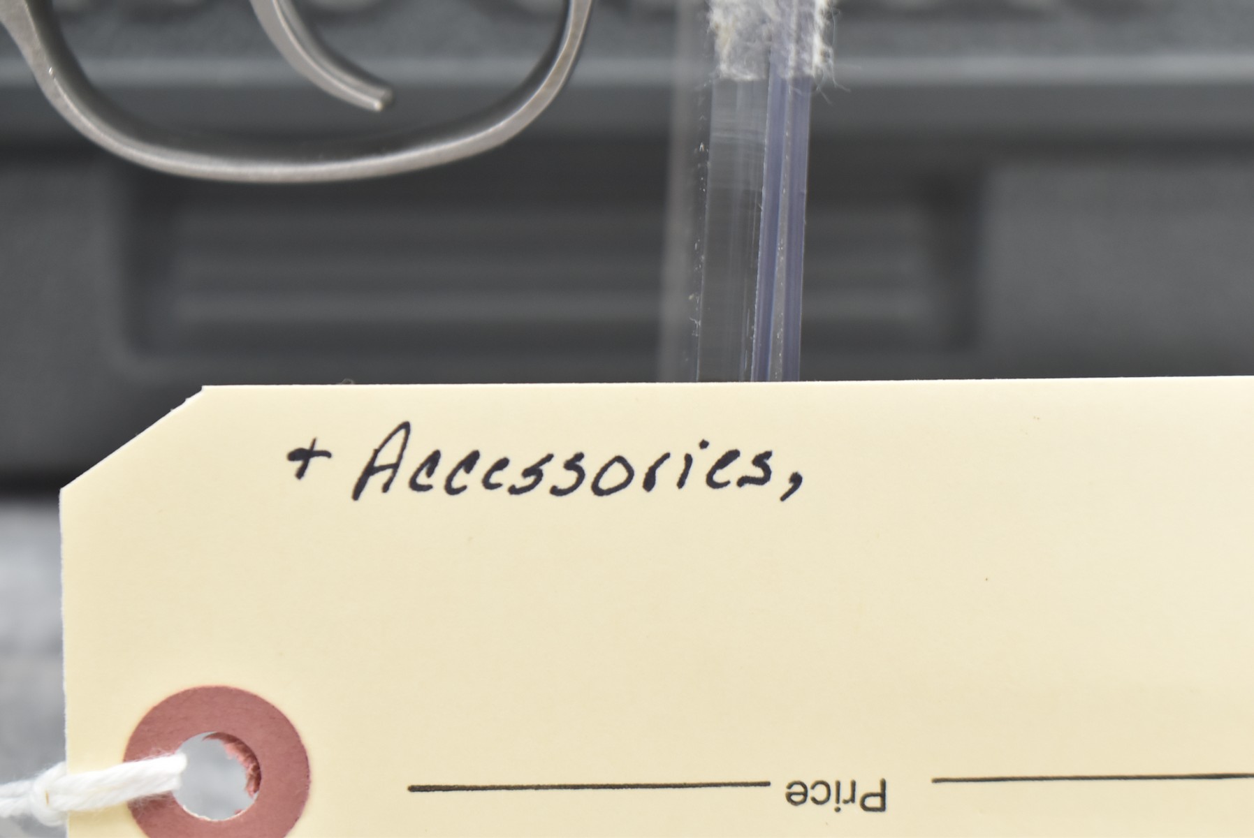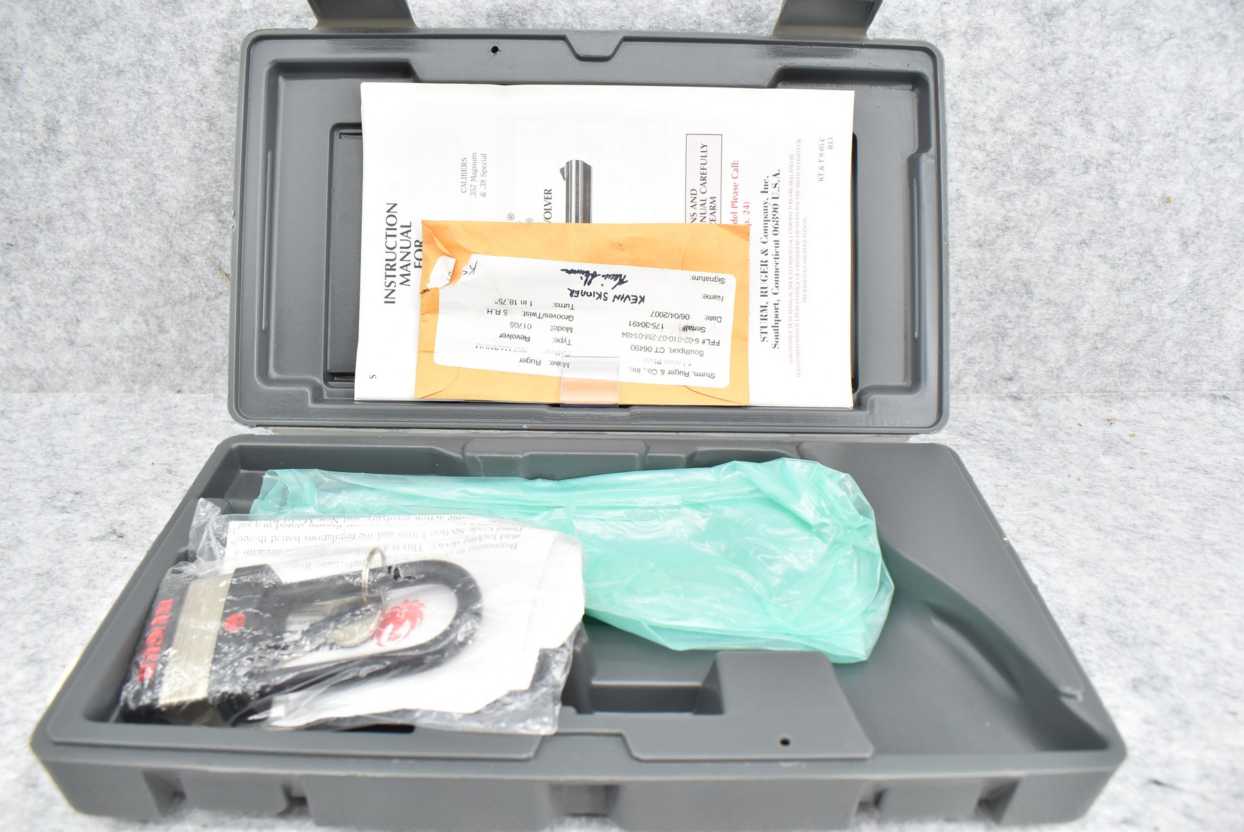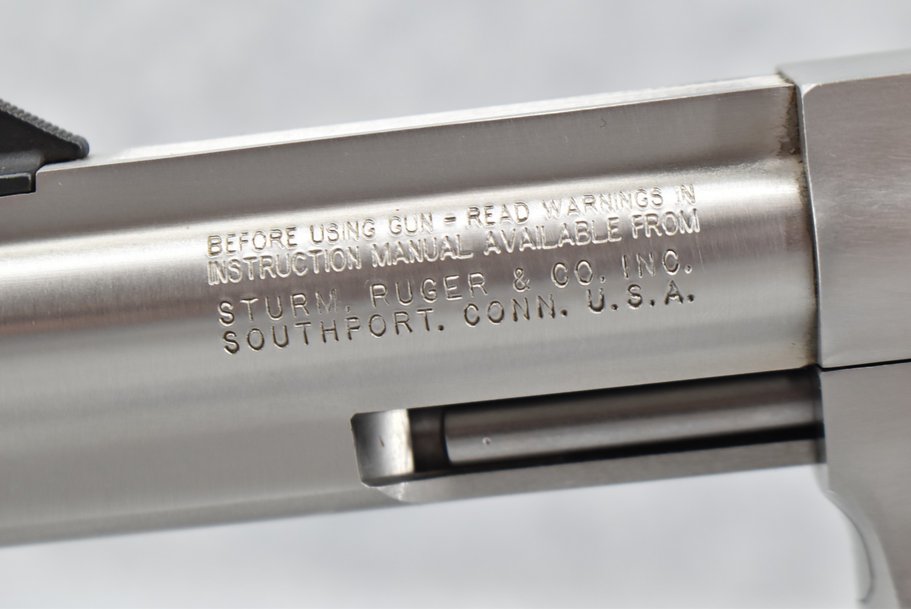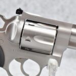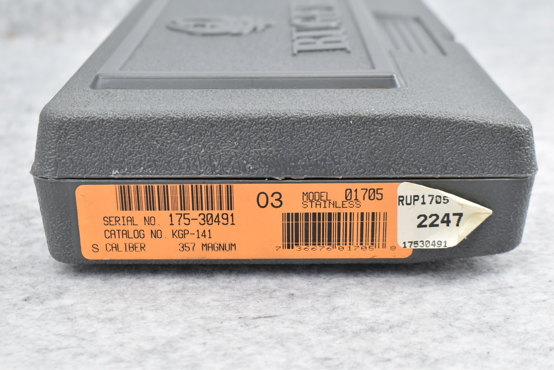 440R. Ruger – Mod. GP-100 (Category No. KGP-141) – 357 Mag. Cal. Double Action Revolver – w/4” Barrel w/Factory Ramp Blade Front and White Outlined Adjustable Rear Notch Sights – Stainless Finish – w/Ruger Wood and Black Rubber Grips – Unfired w/Factory Hard Case, Manual, and Accessories