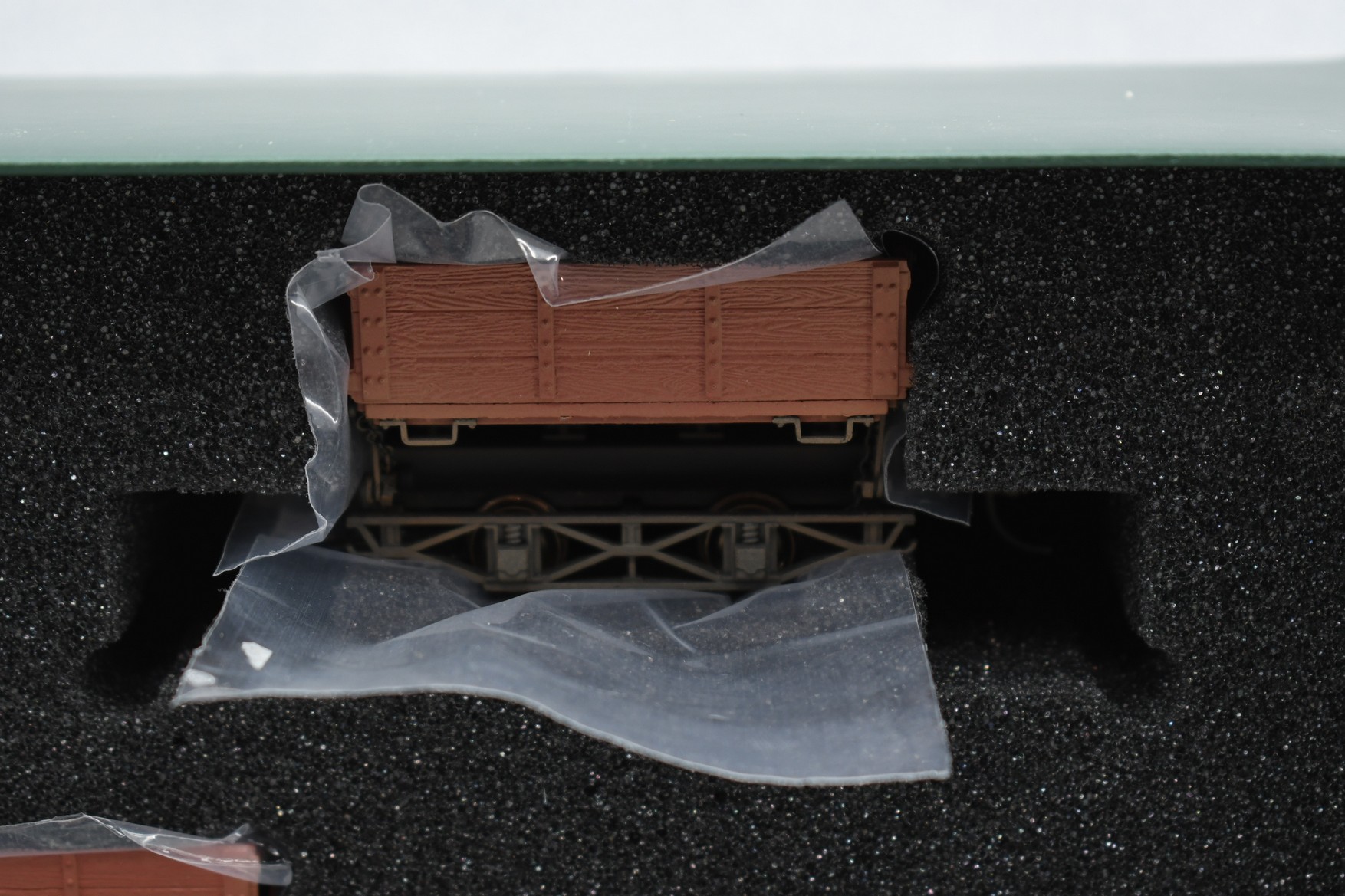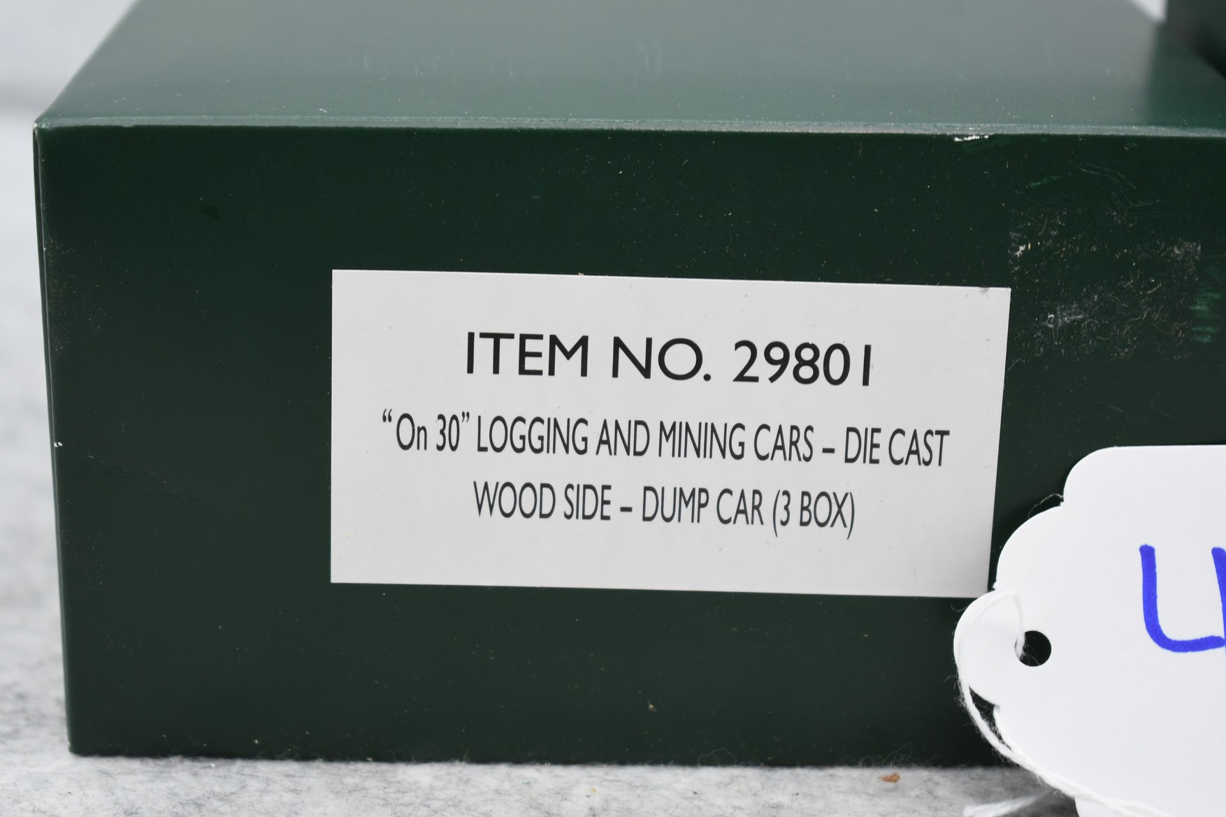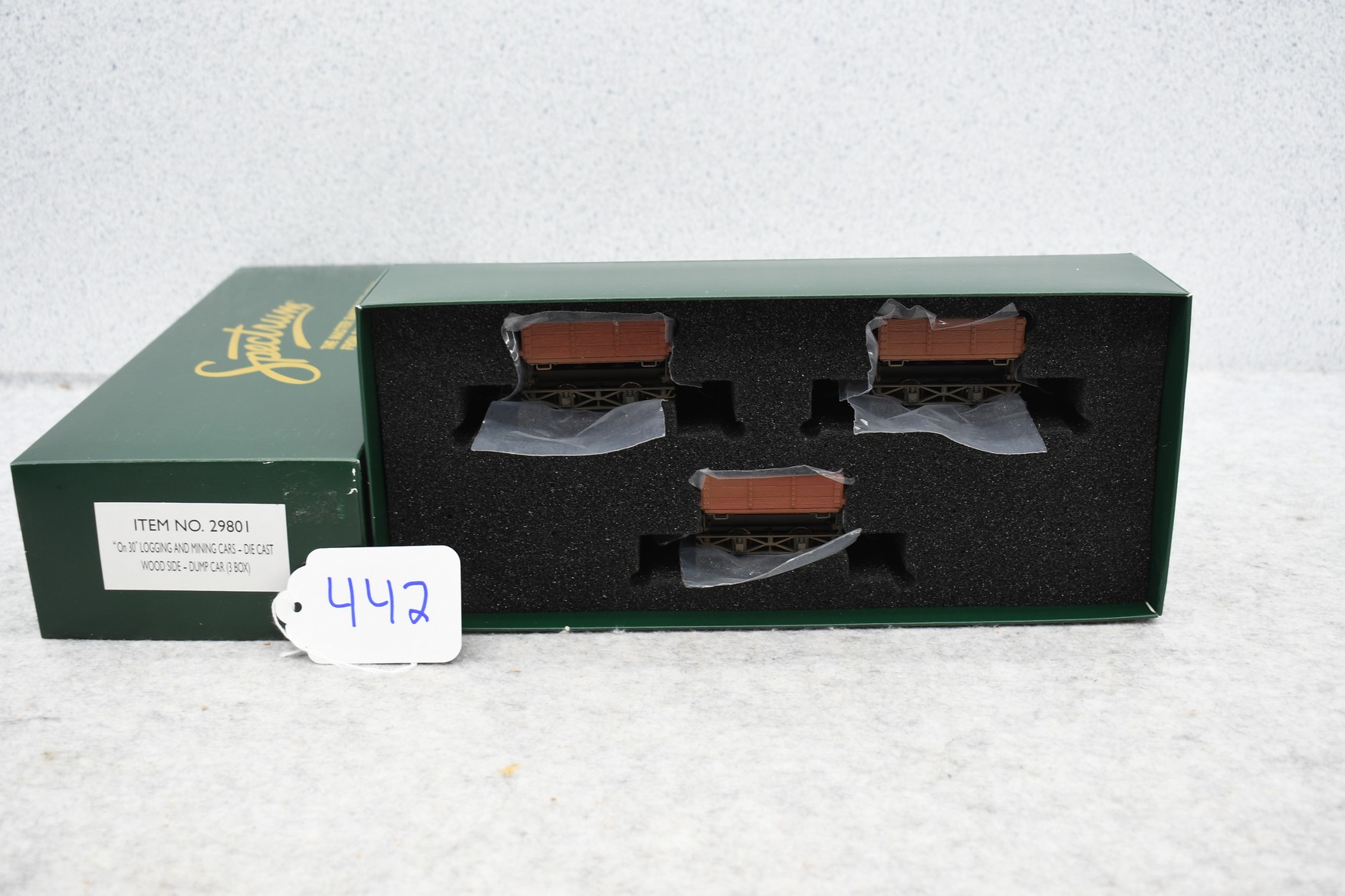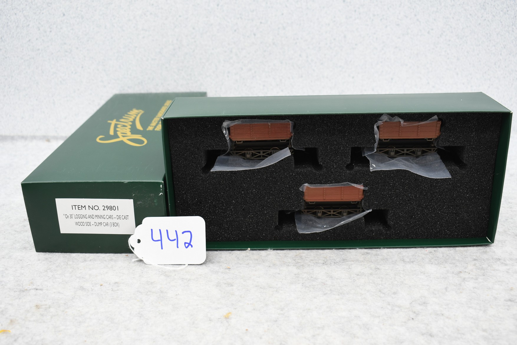 442. Spectrum by Bachmann, Item No. 29801 Logging and Mining cars, Wood side dump. 3 car set. Appears to be NIB