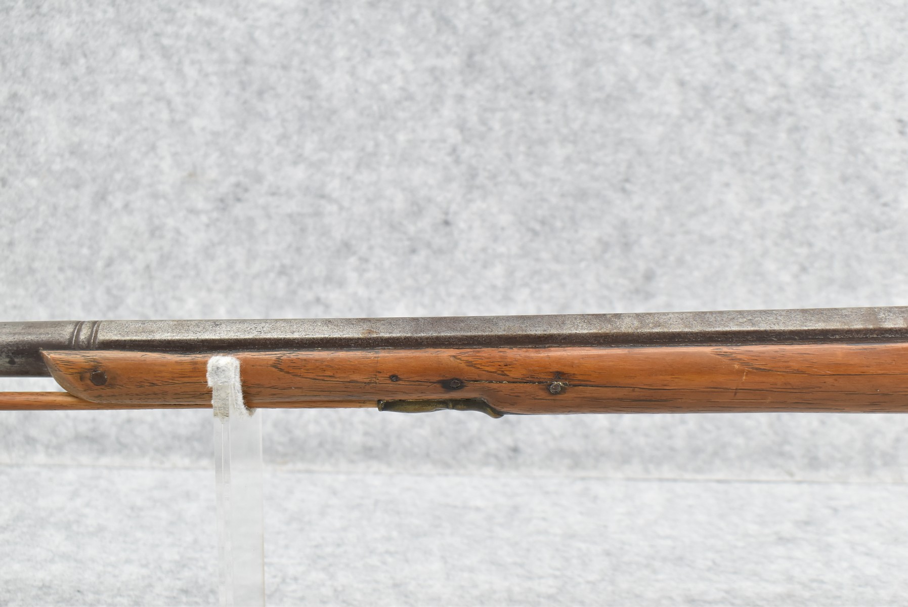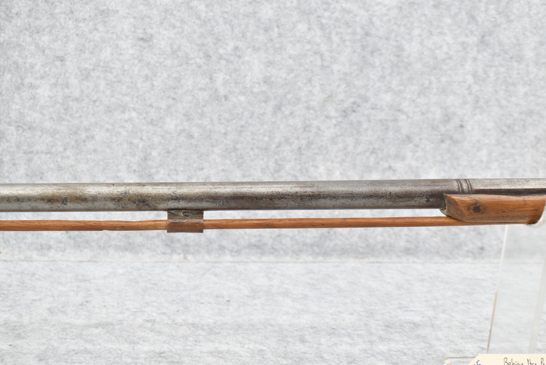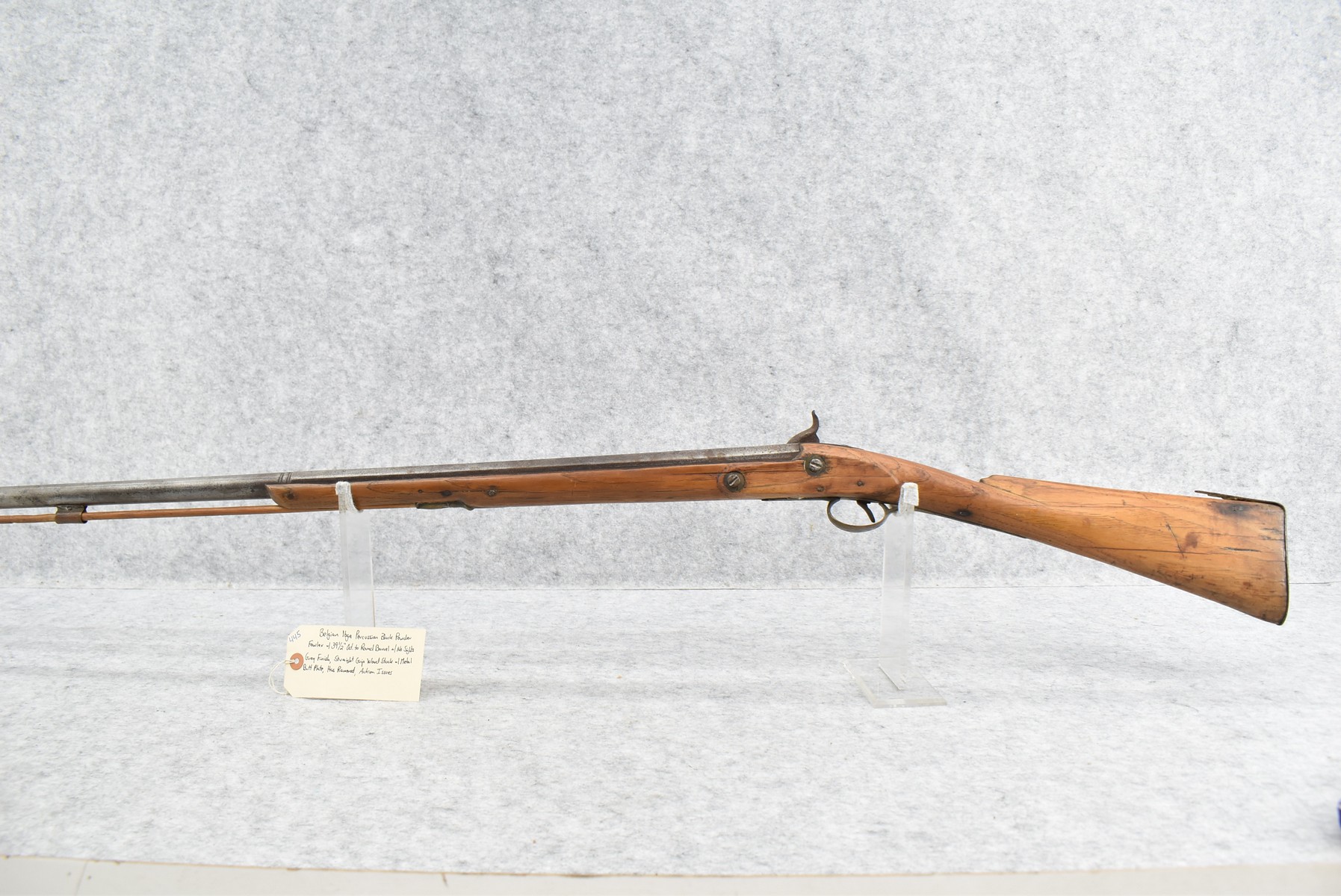 445. Belgian – 16ga. Black Powder Percussion Fowler – w/39 ½” Octagon to Round Barrel (No Sights) – Gray Finish – w/Straight Grip Wood Stock w/Metal Butt Plate – w/Ram Rod – Note: Action Issues