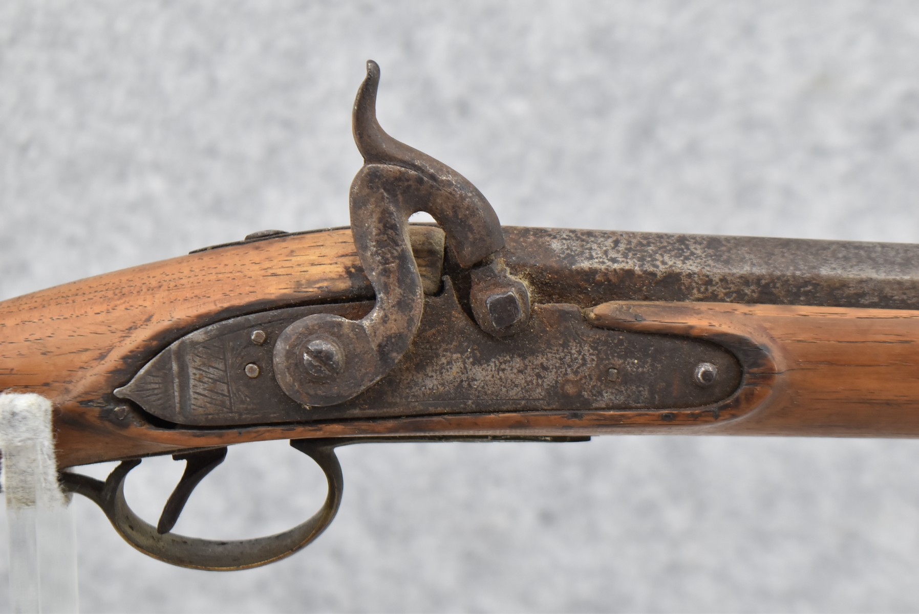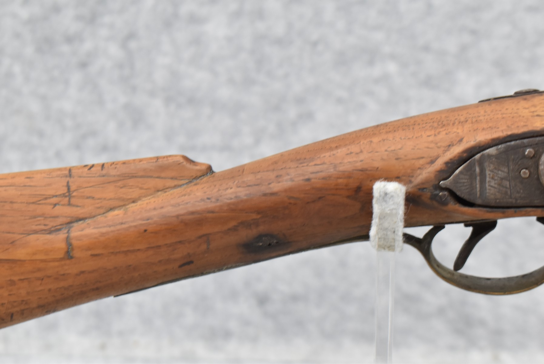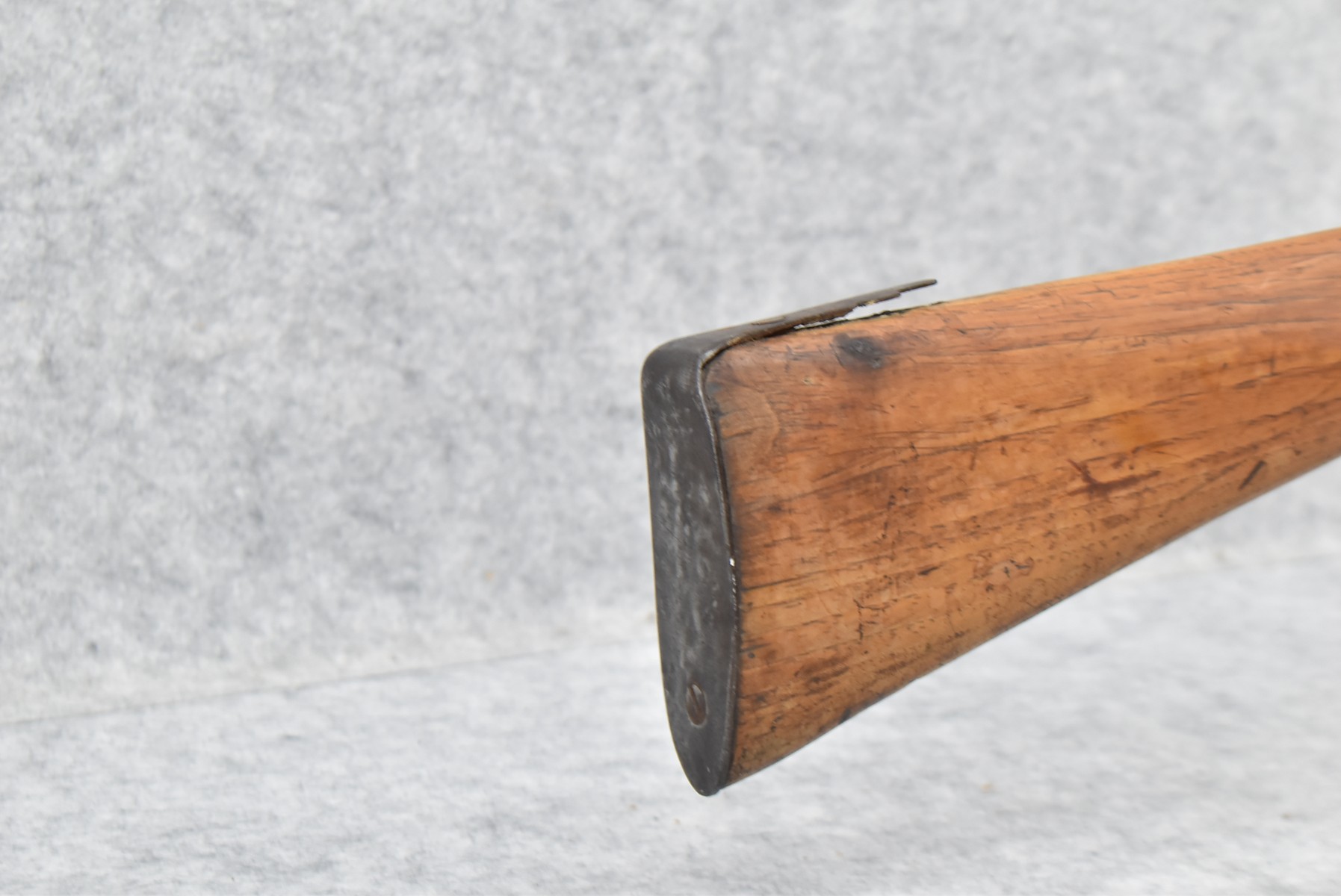 445. Belgian – 16ga. Black Powder Percussion Fowler – w/39 ½” Octagon to Round Barrel (No Sights) – Gray Finish – w/Straight Grip Wood Stock w/Metal Butt Plate – w/Ram Rod – Note: Action Issues