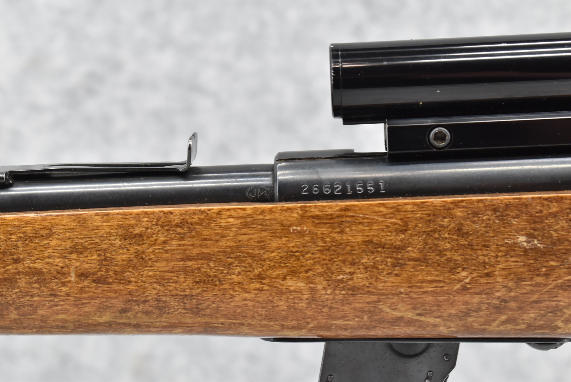 447R. Marlin – Mod. 25 – 22 Cal. Bolt Action Rifle – w/22” Barrel w/Ramp Blade Front & Adj. Rear Notch Sights – Blued Finish – w/Pistol Grip Wood Stock w/Factory Butt Plate – w/Factory Detachable Magazine – w/Bushnell 3-7xCustom 22 Cal. Scope & Mounts