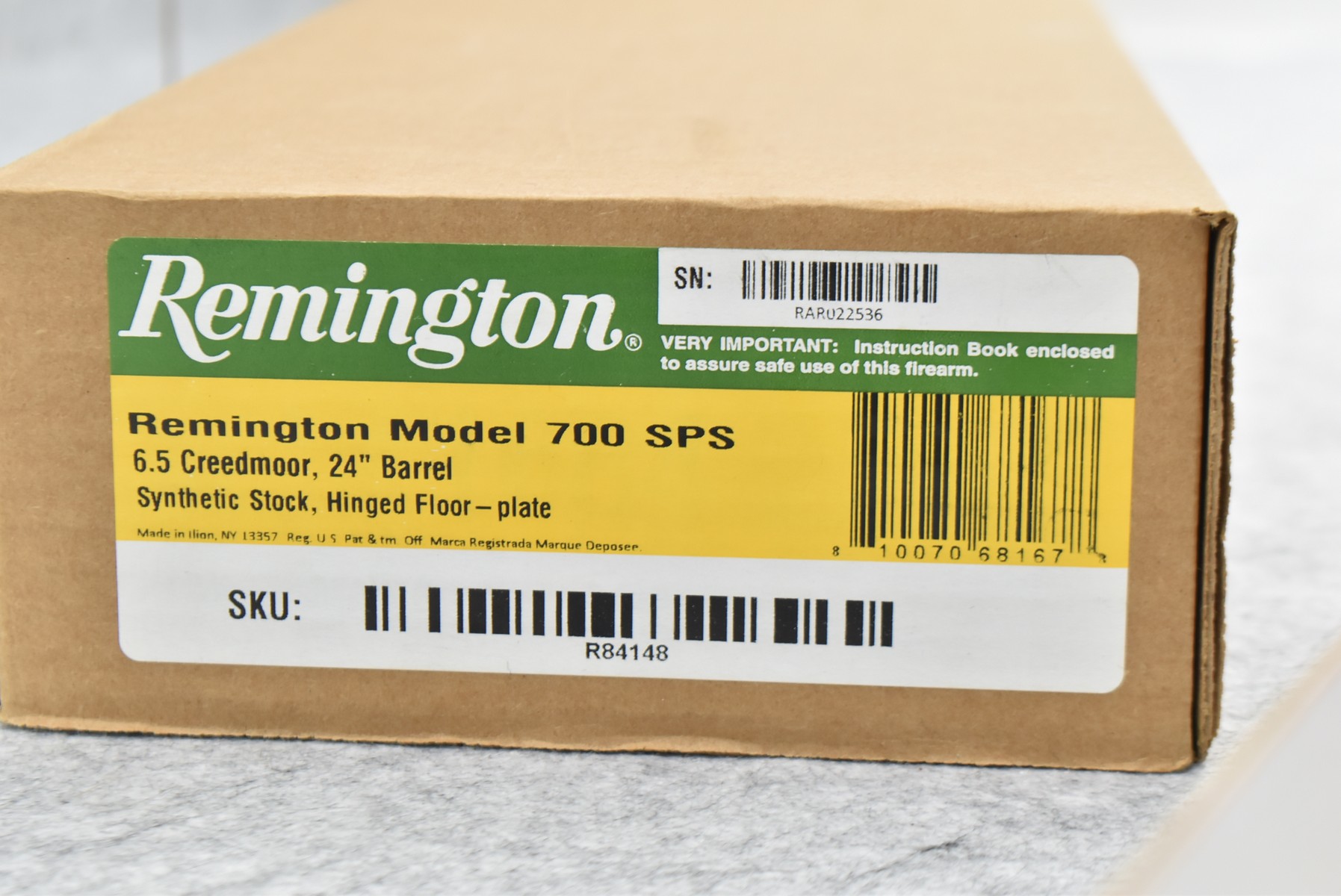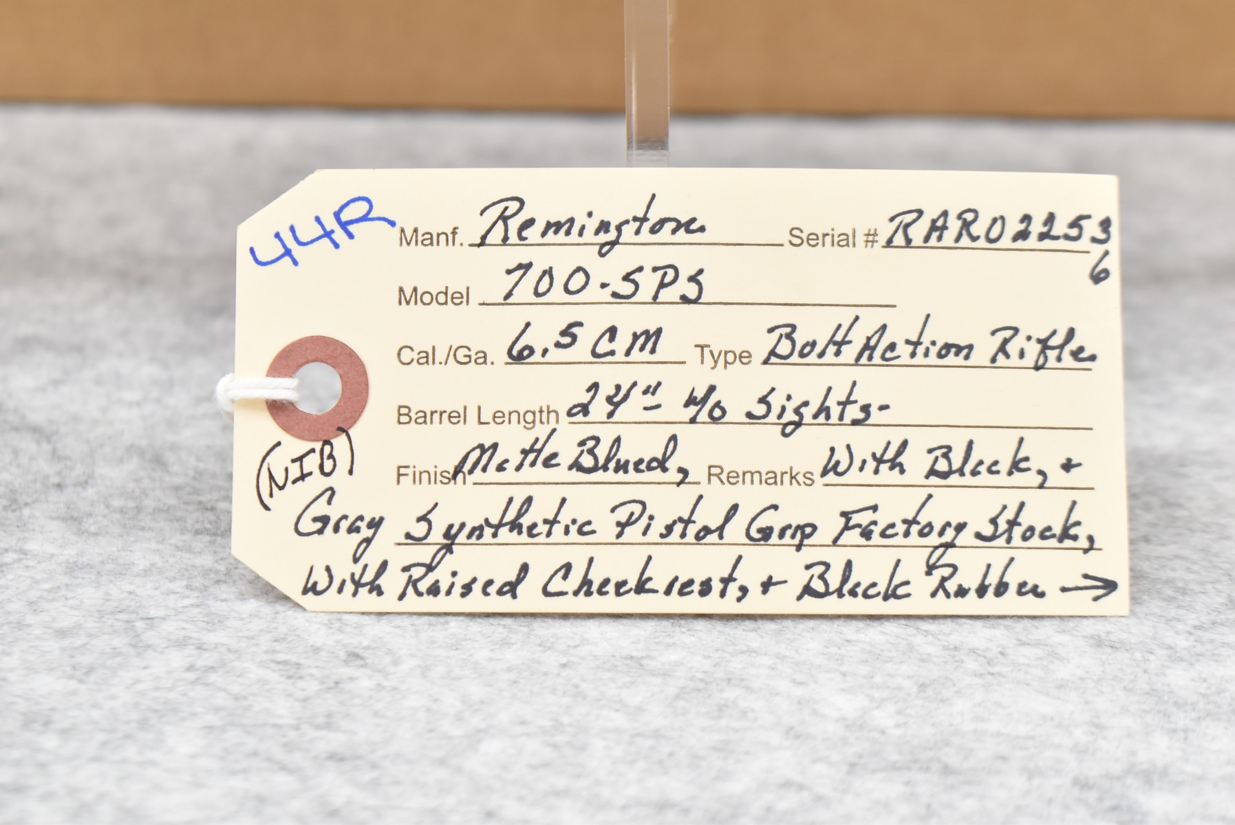 44R. Remington – Mod. 700-SPS – 6.5 Creedmoor Cal. Bolt Action Rifle – w/24” Barrel (No Sights) – Matte Blued Finish – w/Black & Gray Synthetic Pistol Grip Factory Stock w/Raised Cheek Piece w/Butt Pad – Unfired w/Box