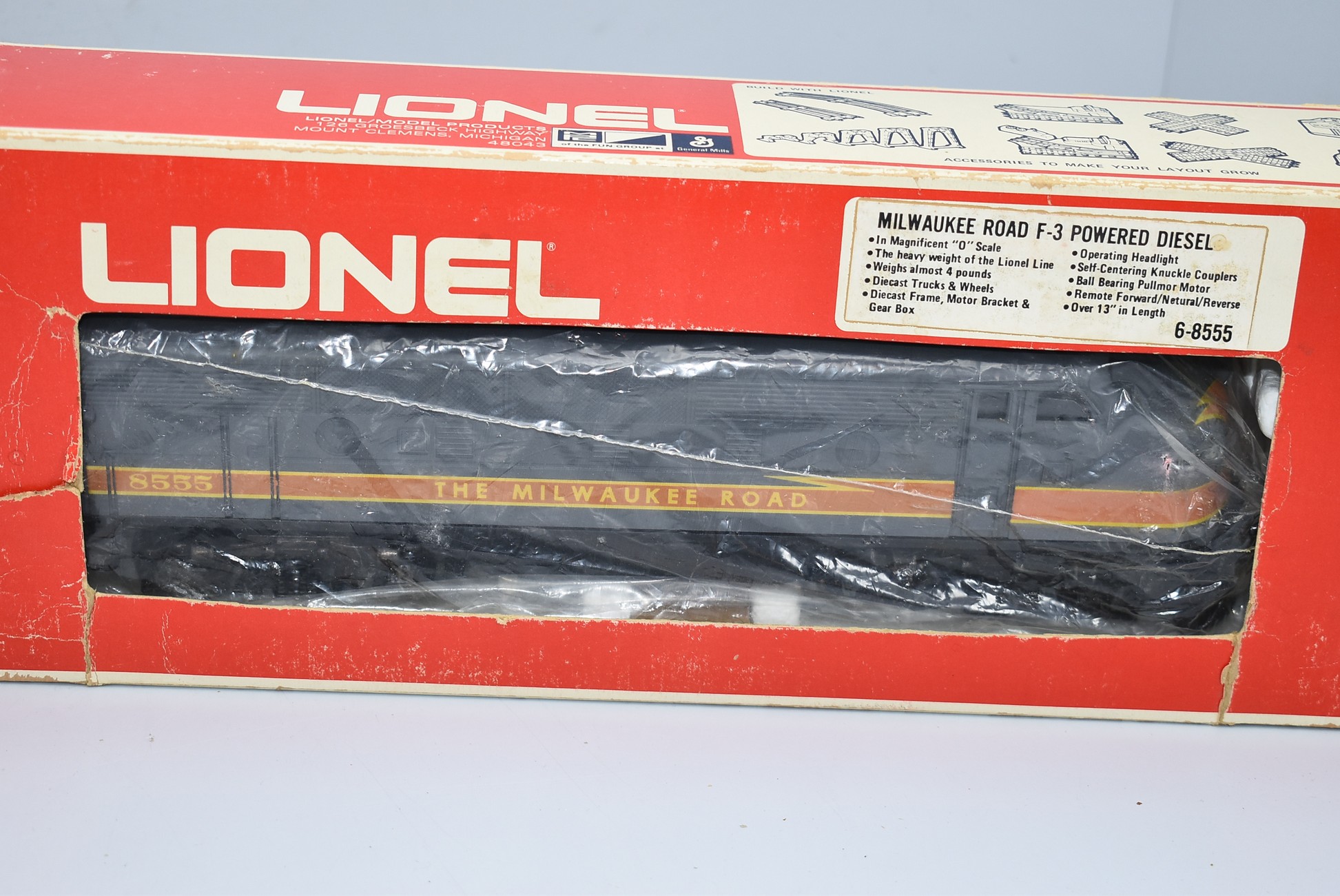 45. Pair of Lionel O-Gauge Engines – Including Non-Powered Milwaukee Road F-3 Diesel Engine 6-8557 and Milwaukee Road F-3 Powered Diesel Engine 6-8555 – Both w/Boxes