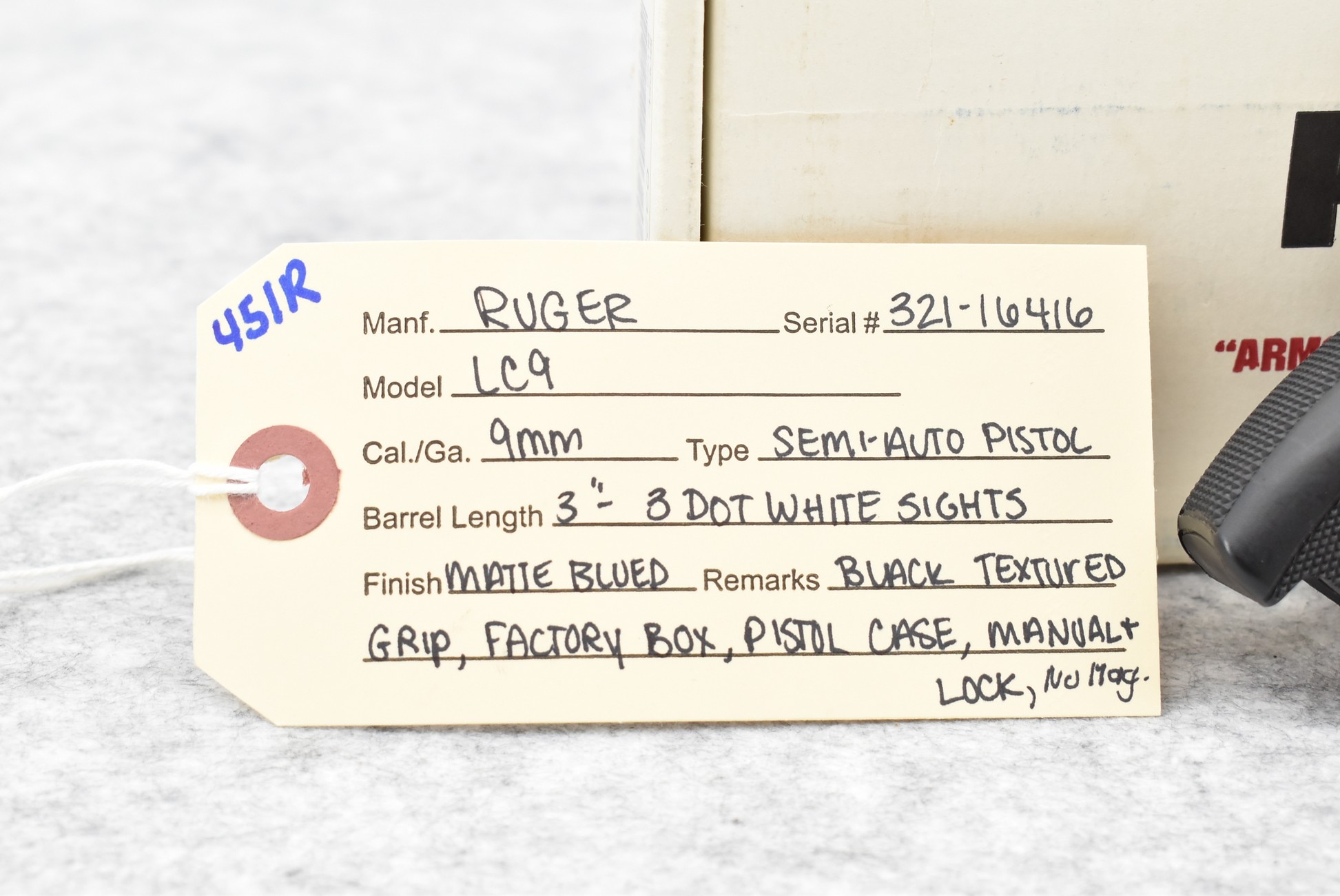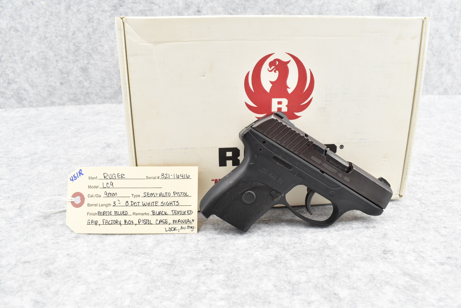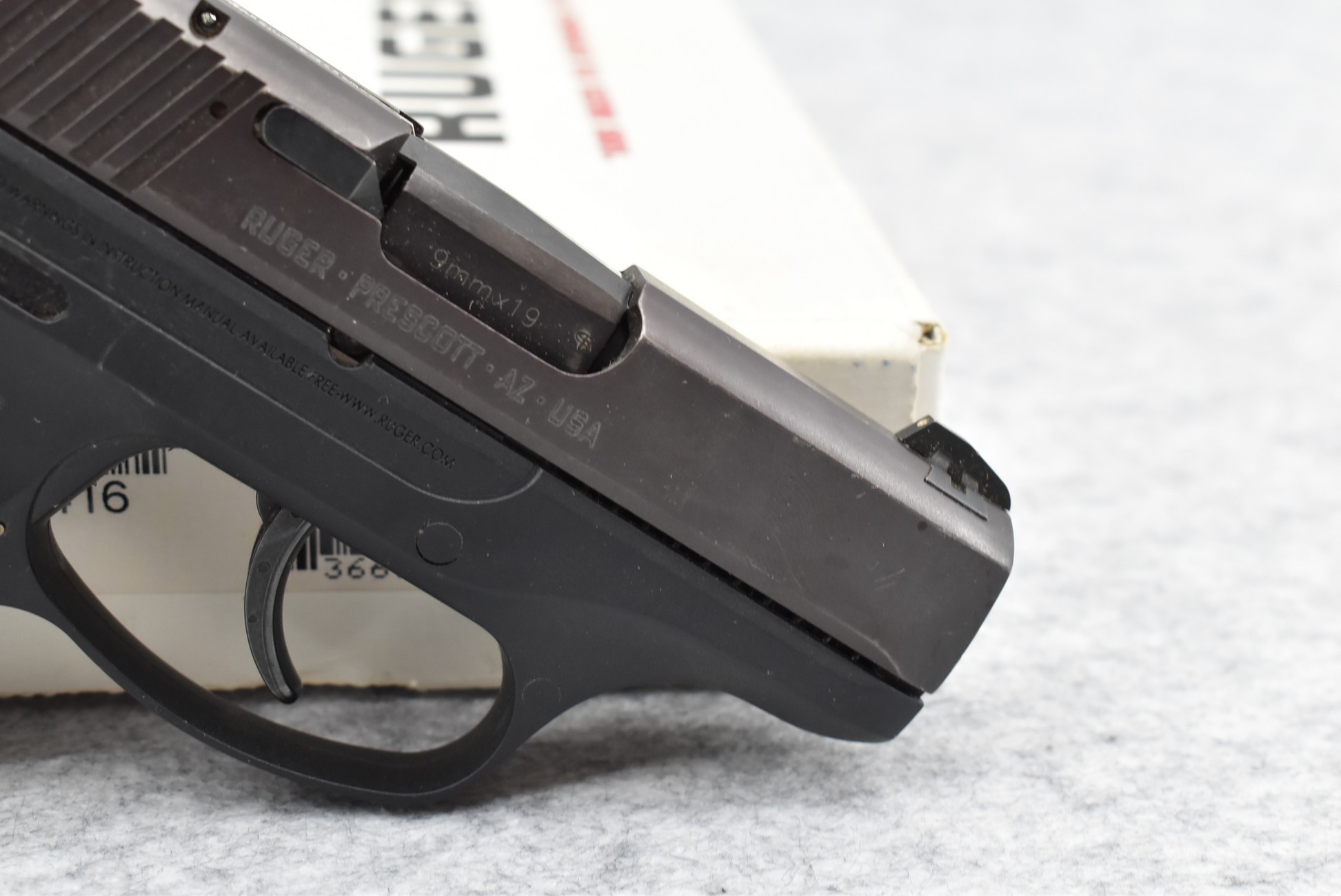 451R. Ruger – Mod. LCP – 9mm Cal. Semi-Auto Pistol – w/3” Barrel w/3-Dot White Sights – Matte Blued Finish – w/Black Textured Grip – w/Factory Box, Soft Case, and Manual – No Magazine