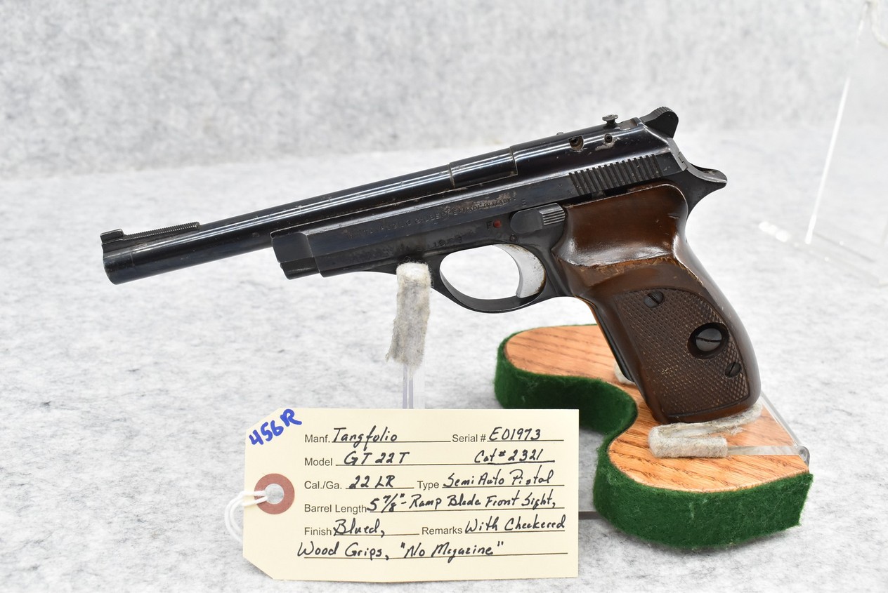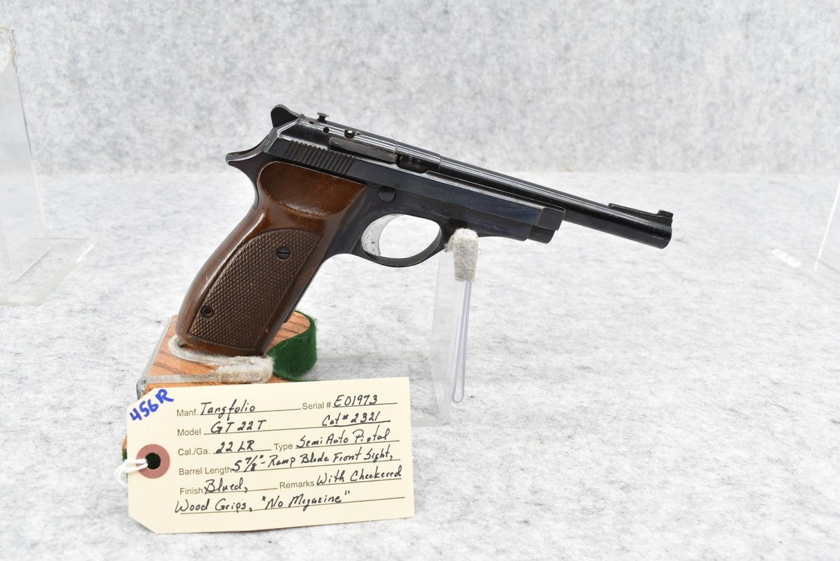 456R. Tangfolio – Mod. GT 22T (Cat #2321) – 22LR Cal. Semi-Auto Pistol – w/5 7/8” Barrel w/Ramp Blade Front Sight – Blued Finish – w/Checkered Wood Grips – No Magazine