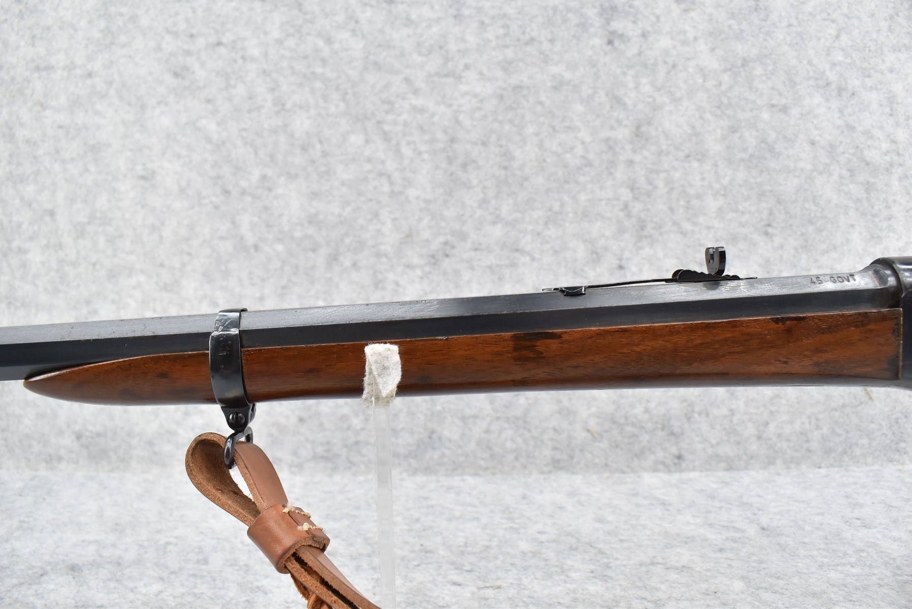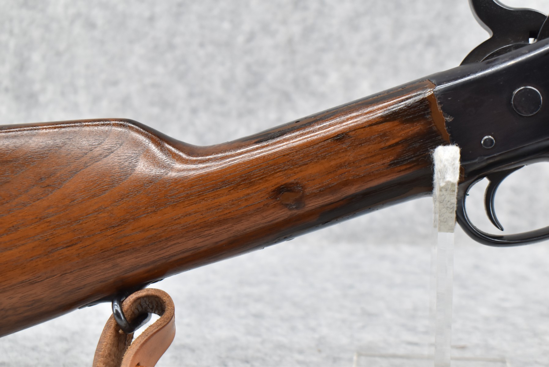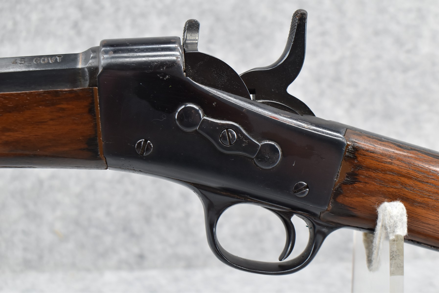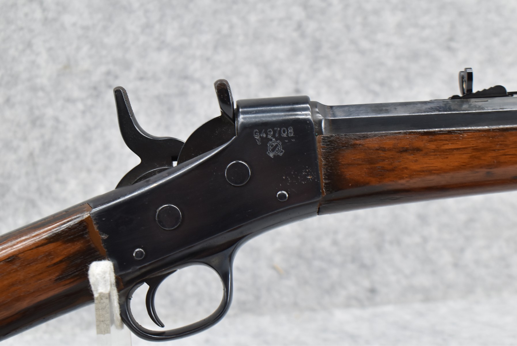 460R. Remington – Mod. Rolling Block – 45-70 Govt Cal. Single Shot Rifle – w/Custom 24” Octagon Barrel w/Front Blade & Rear Adj. Semi-Buckhorn Sights – Re-Blued Finish – w/Straight Grip Wood Stocks w/Factory Metal Butt Plate – w/Leather Sling – w/US Acceptance Cartouches – Note: Stock Appears Repaired