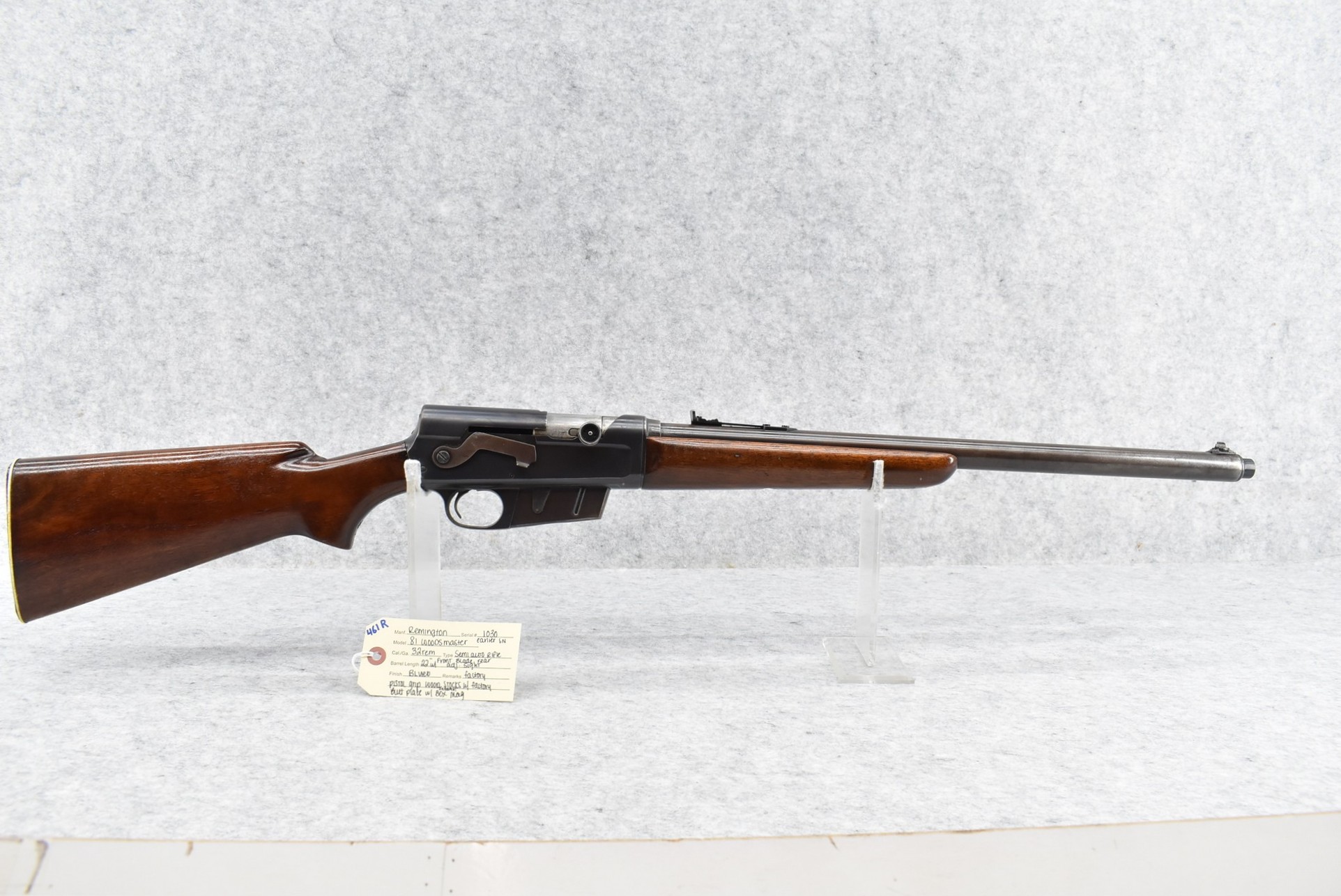 461R. Remington – Mod. 81 Woodsmaster – 32 Rem. Cal. Semi-Auto Rifle – w/22” Barrel w/Front Blade & Rear Adj. Sights – Blued Finish – w/Factory Pistol Grip Wood Stocks w/Factory Butt Plate
