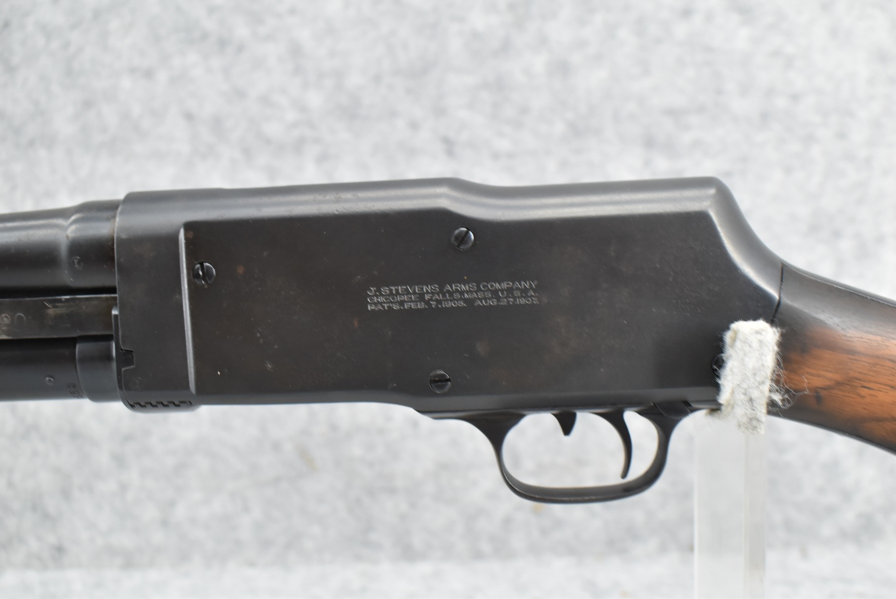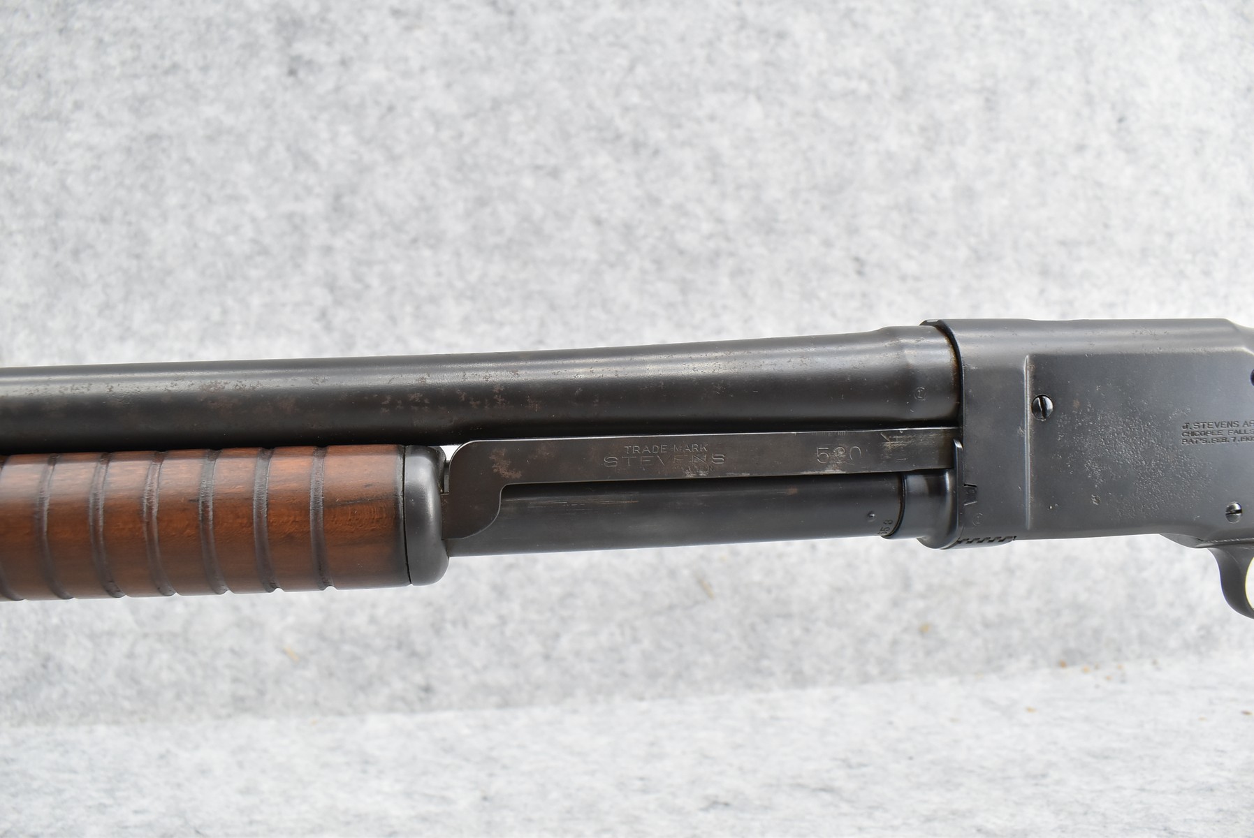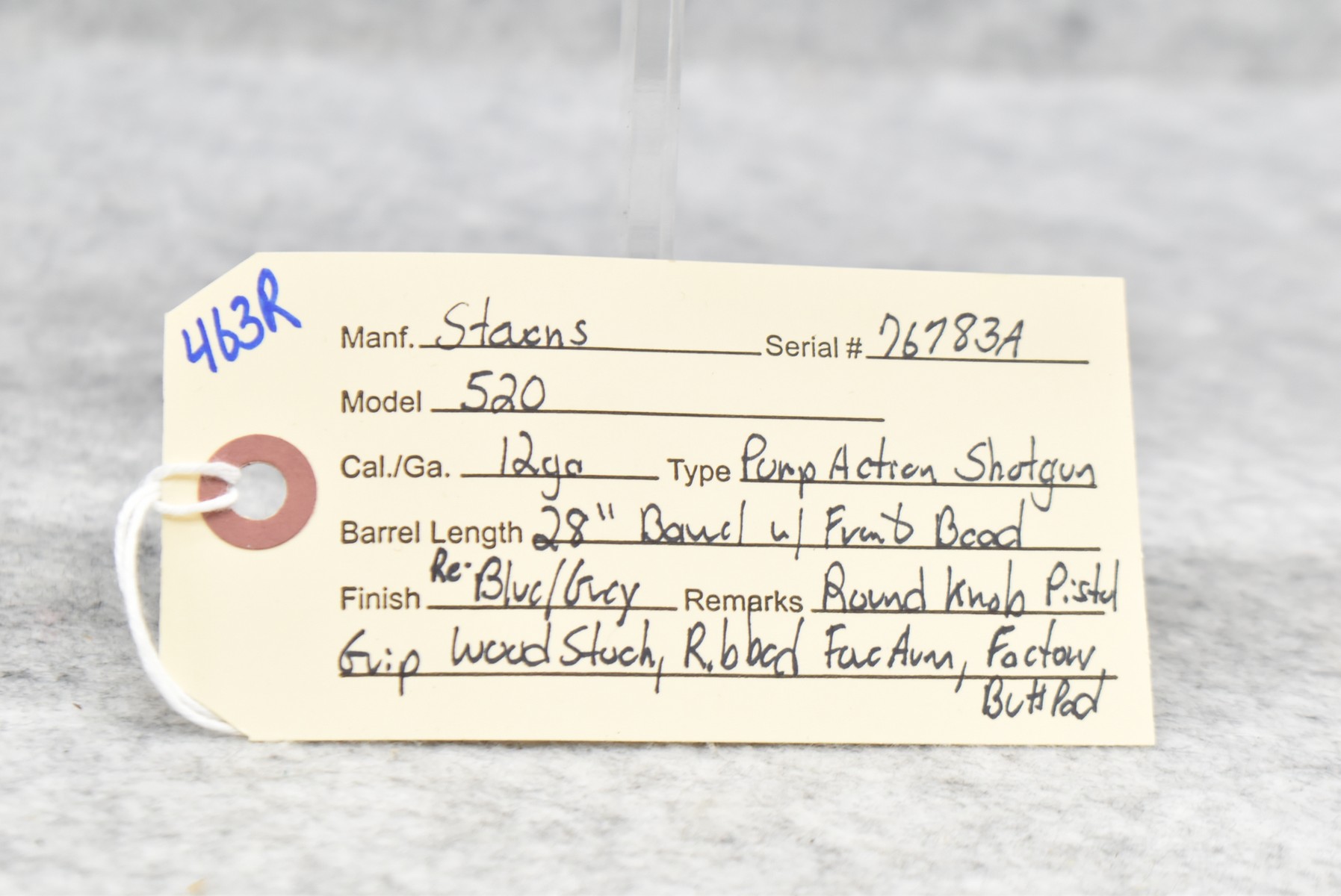 463R. Stevens – Mod. 520 – 12ga. Pump Action Shotgun – w/28” Barrel w/Front Bead Sight – Re-Blued/Gray Finish – w/Round Knob Pistol Grip Wood Stock w/Factory Butt Pad & Ribbed Forearm