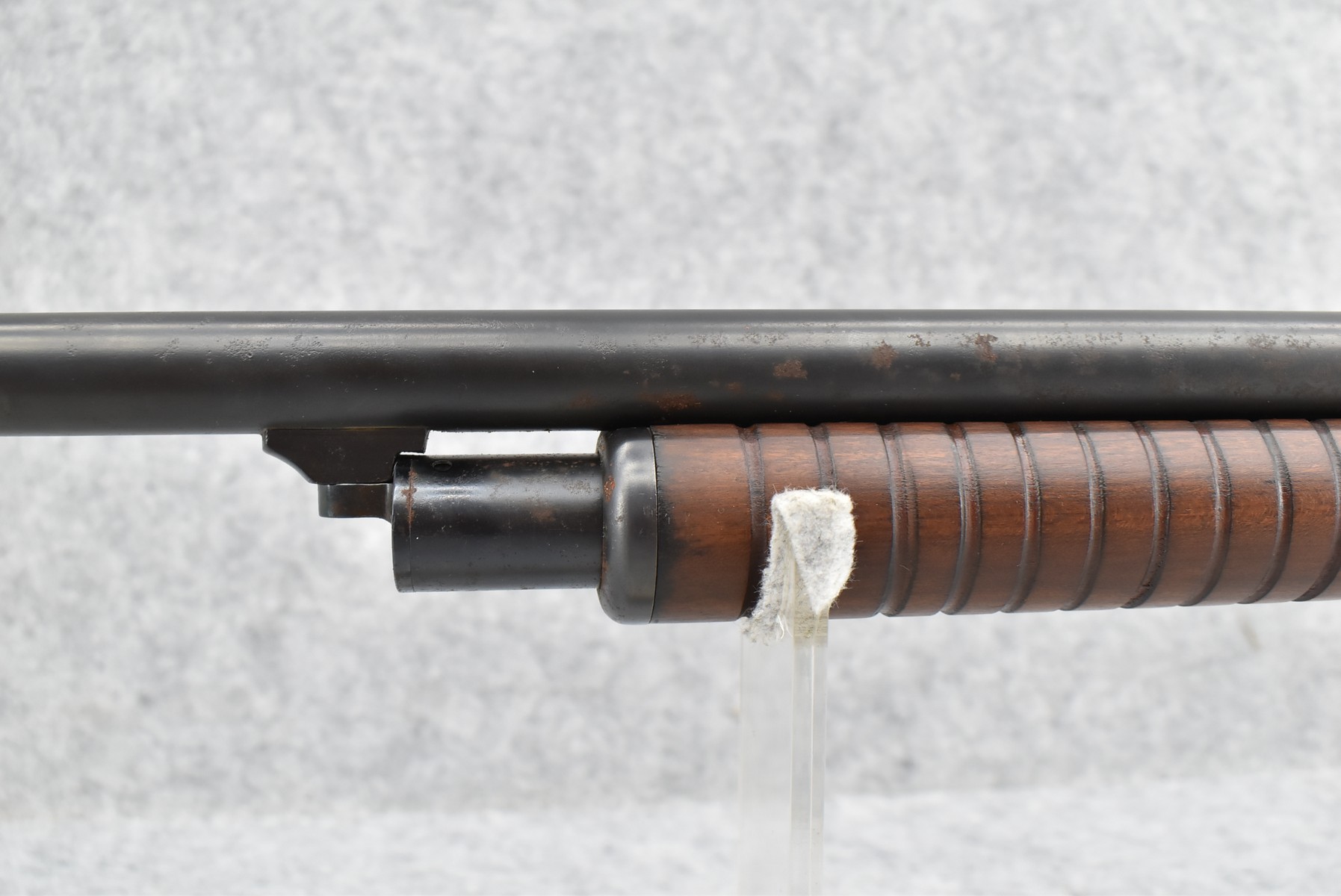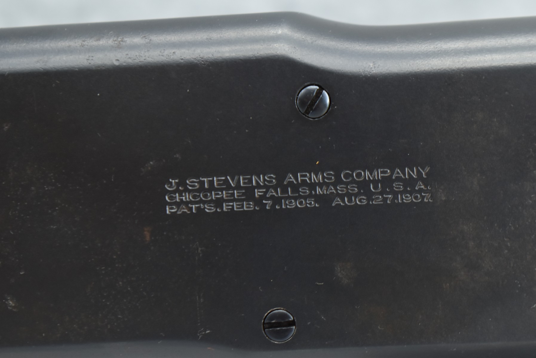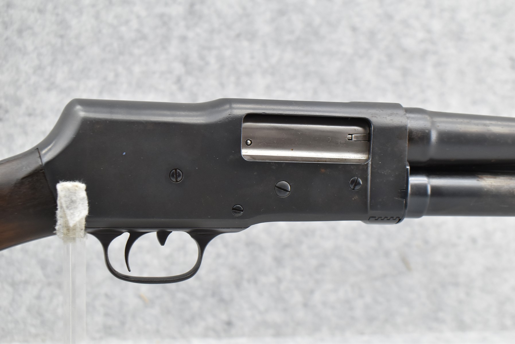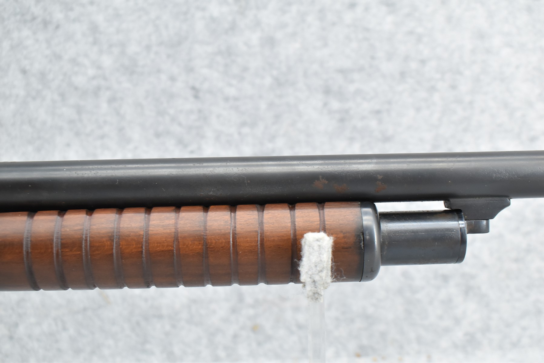 463R. Stevens – Mod. 520 – 12ga. Pump Action Shotgun – w/28” Barrel w/Front Bead Sight – Re-Blued/Gray Finish – w/Round Knob Pistol Grip Wood Stock w/Factory Butt Pad & Ribbed Forearm