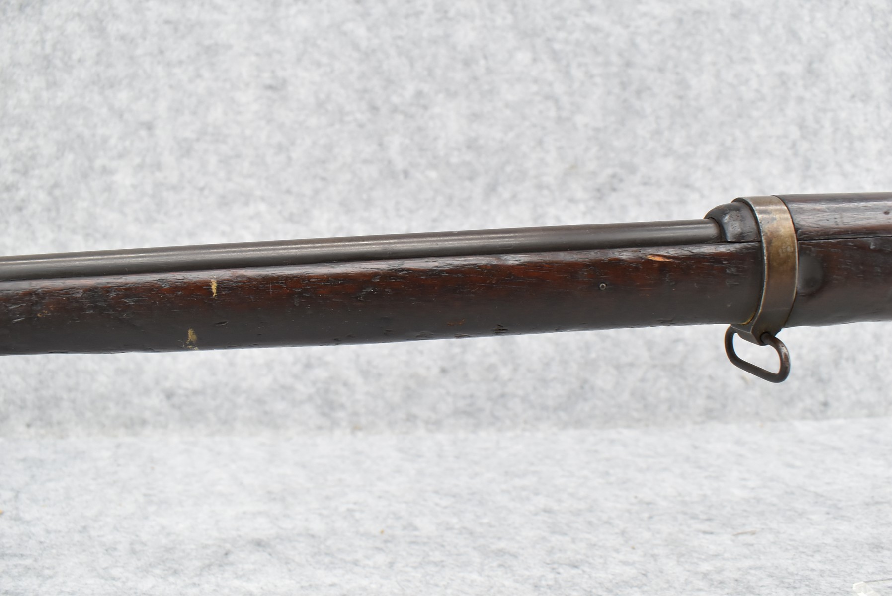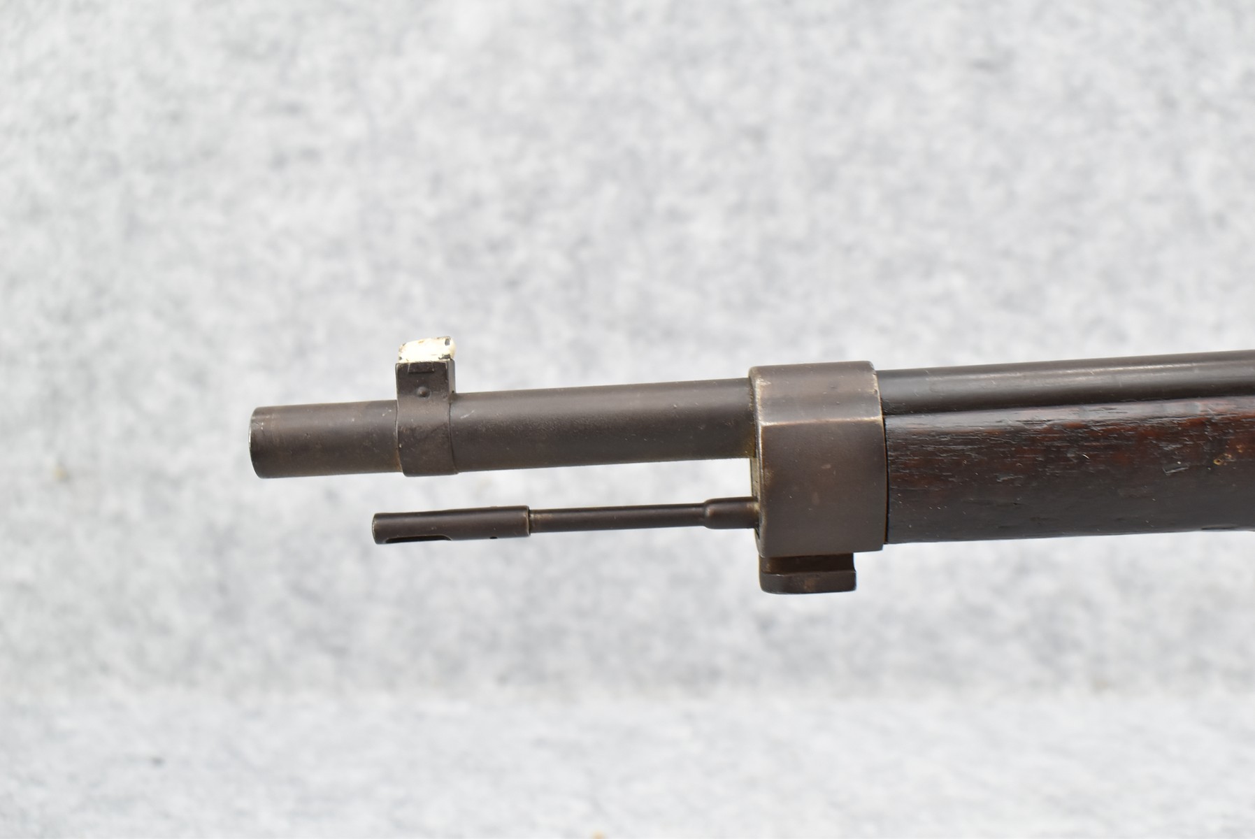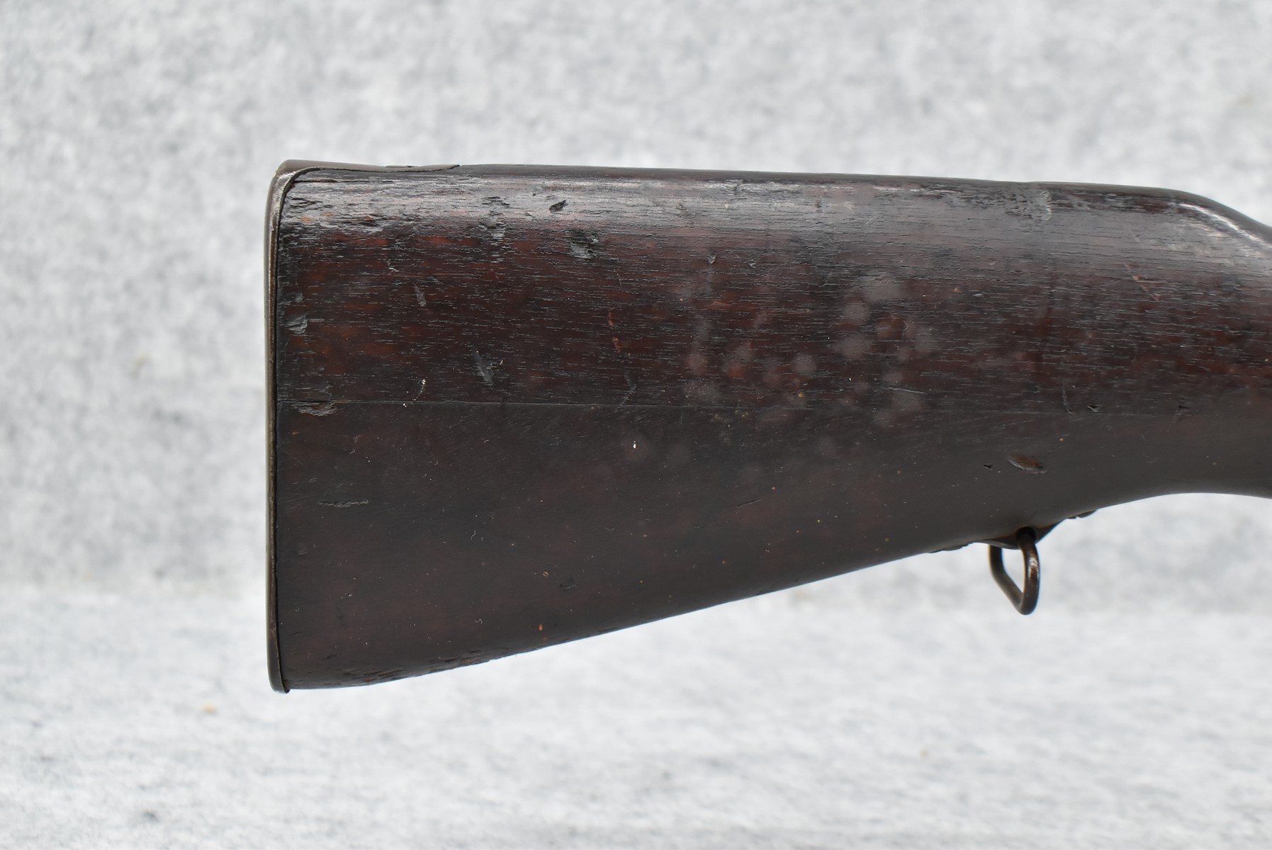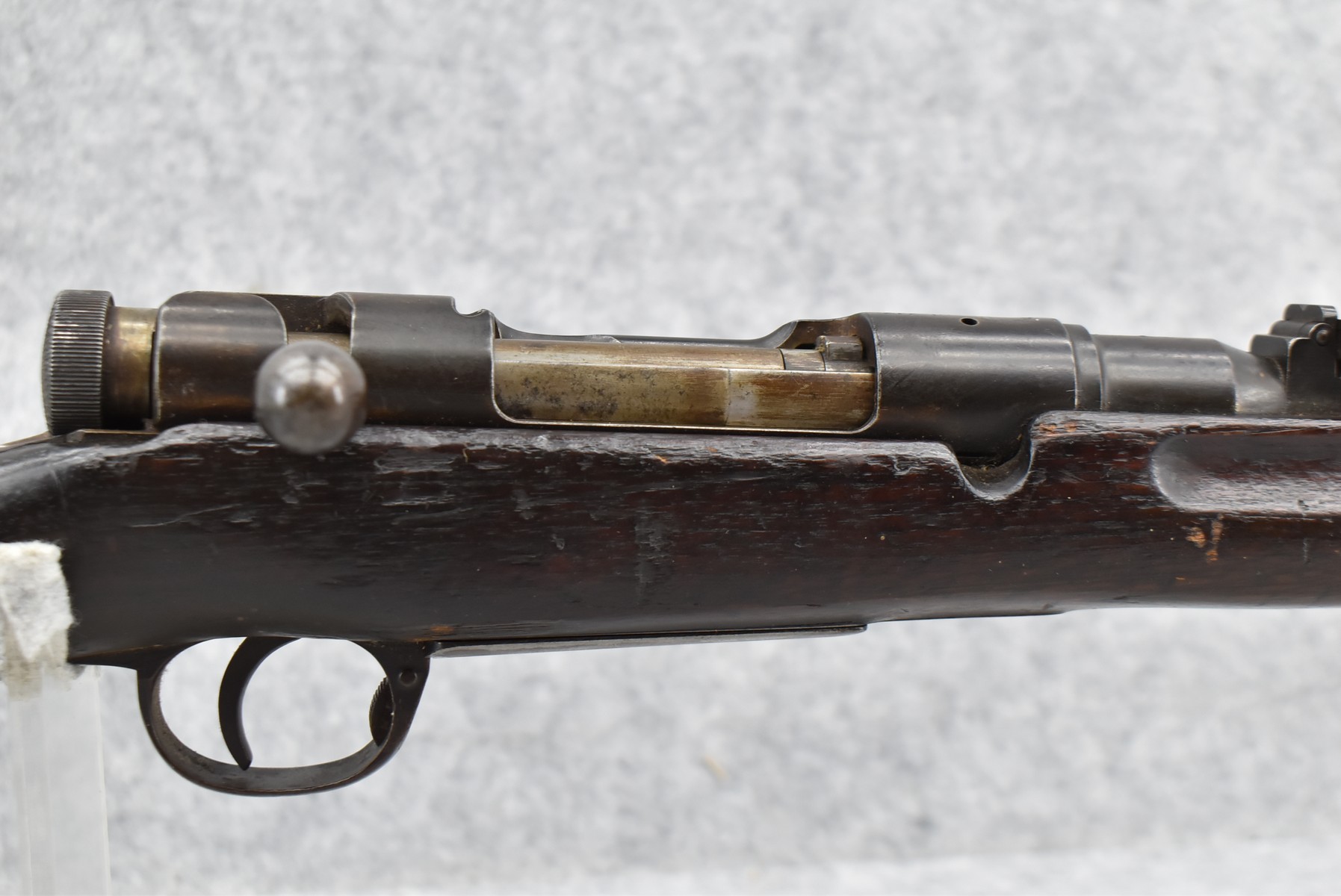 467R. Arisaka – Type 38 – 6.5 Jap Cal. Bolt Action Rifle – w/31” Barrel w/Front Blade & Rear Adj. Ladder Sights – Brown Finish – w/Full Half Pistol Grip Wood Stock w/Factory Metal Butt Plate – w/Cleaning Rod – Ground Mum – No Visible Import Mark – Note: Battle Damage on Right Side of Forearm