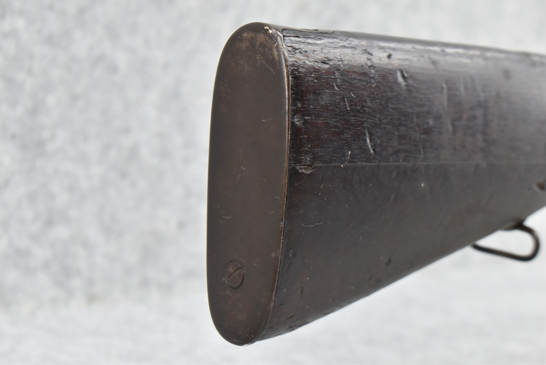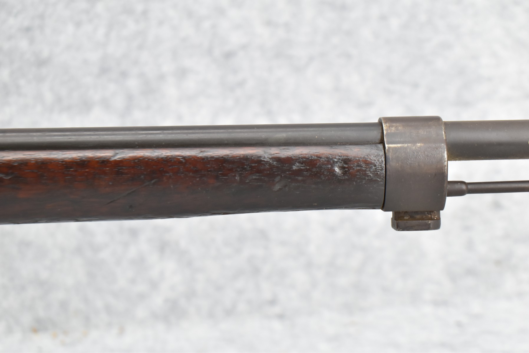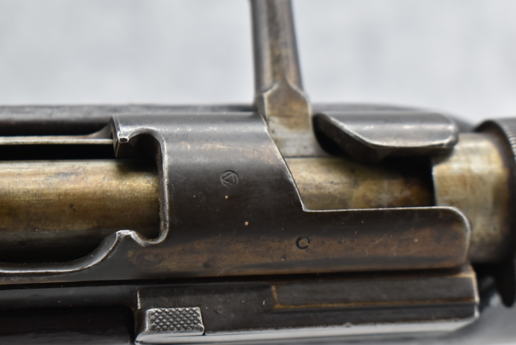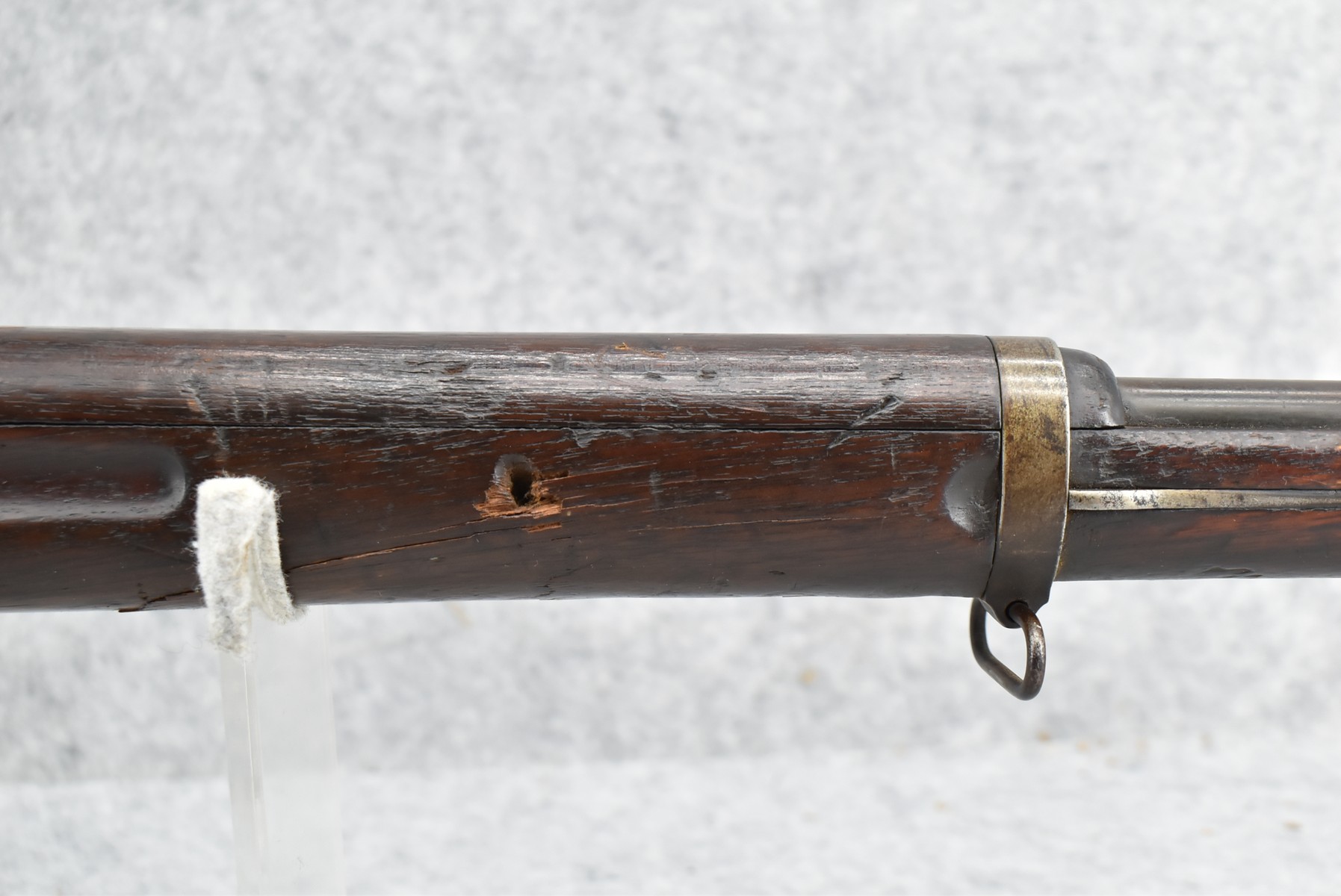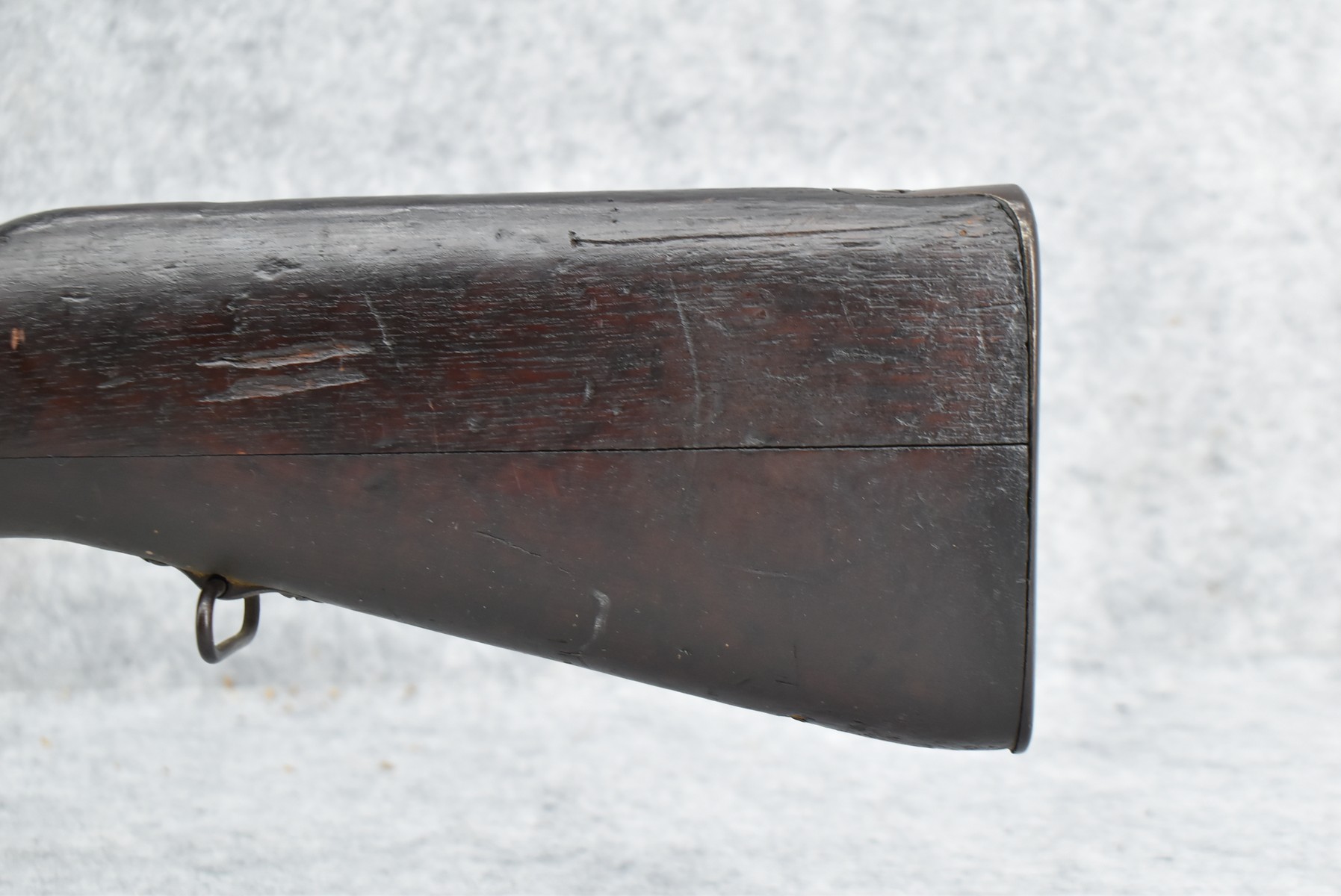 467R. Arisaka – Type 38 – 6.5 Jap Cal. Bolt Action Rifle – w/31” Barrel w/Front Blade & Rear Adj. Ladder Sights – Brown Finish – w/Full Half Pistol Grip Wood Stock w/Factory Metal Butt Plate – w/Cleaning Rod – Ground Mum – No Visible Import Mark – Note: Battle Damage on Right Side of Forearm