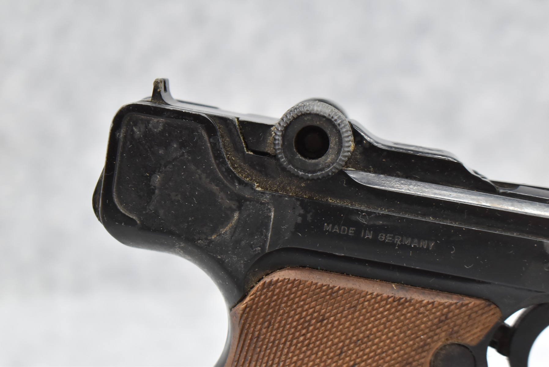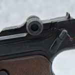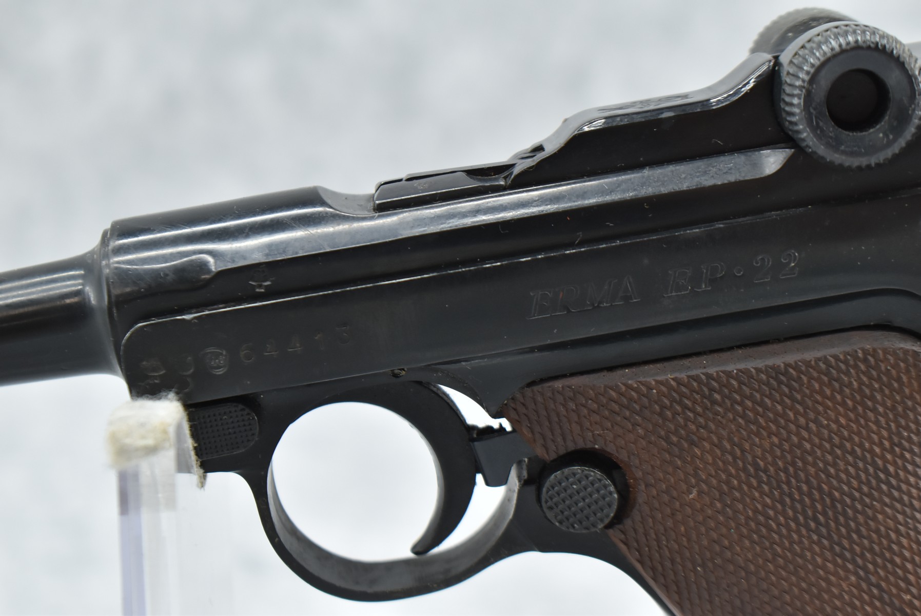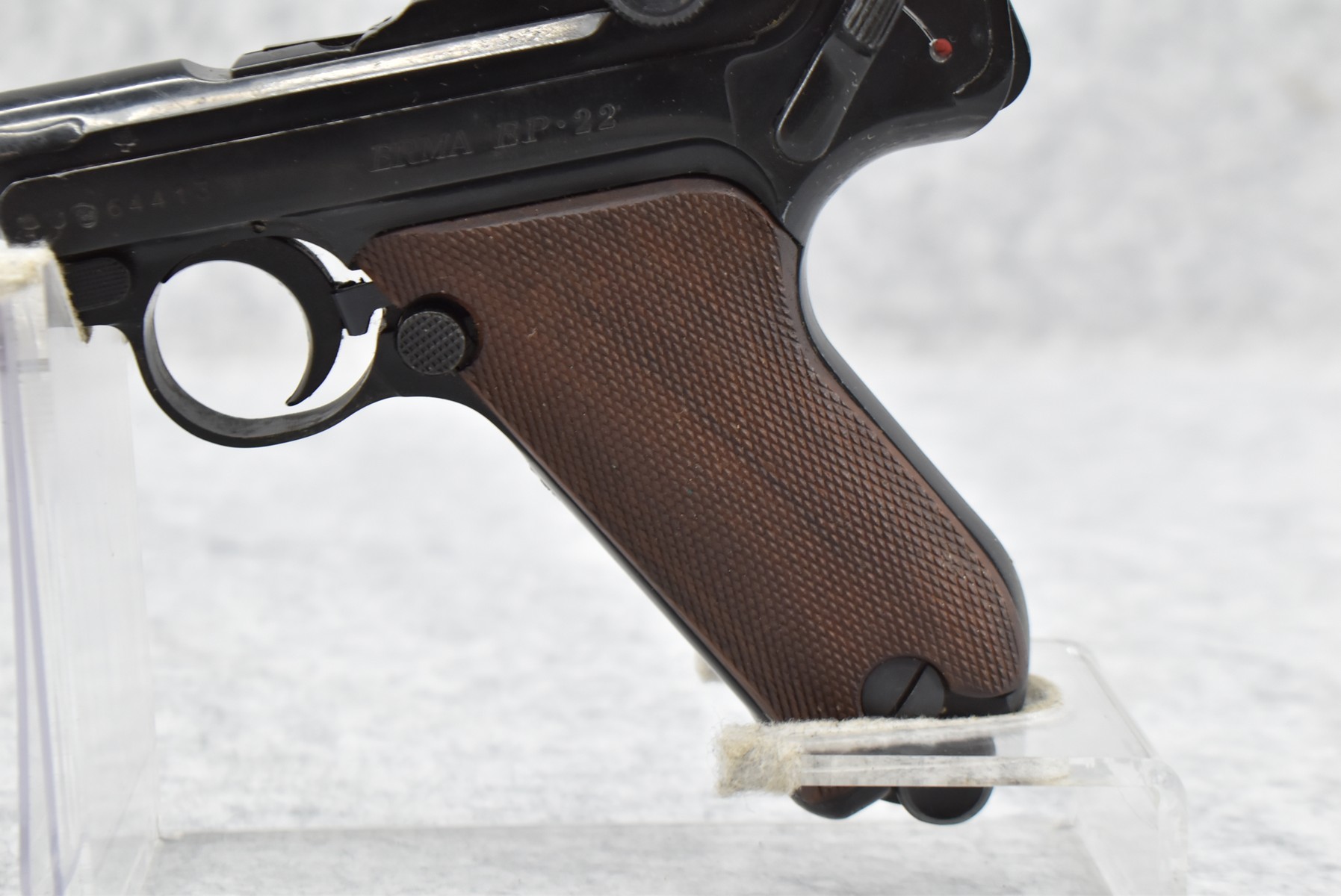 468R. Erma – Mod. EP-22 – 22LR Cal. Semi-Auto Pistol – w/4 ½” Barrel w/Factory Black Front & Notch Rear Sights – Black Finish – w/Checkered Wood Grips – w/Factory Detachable Magazine