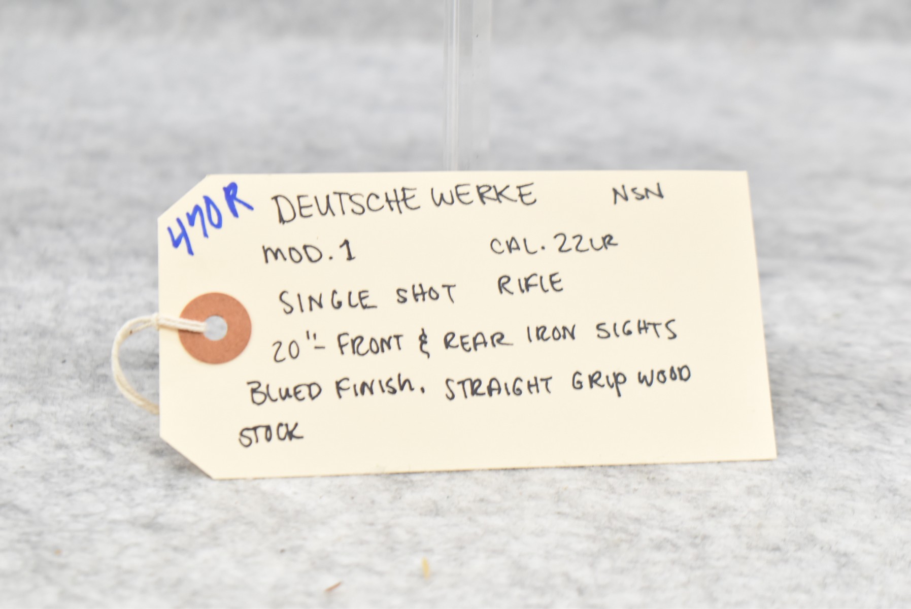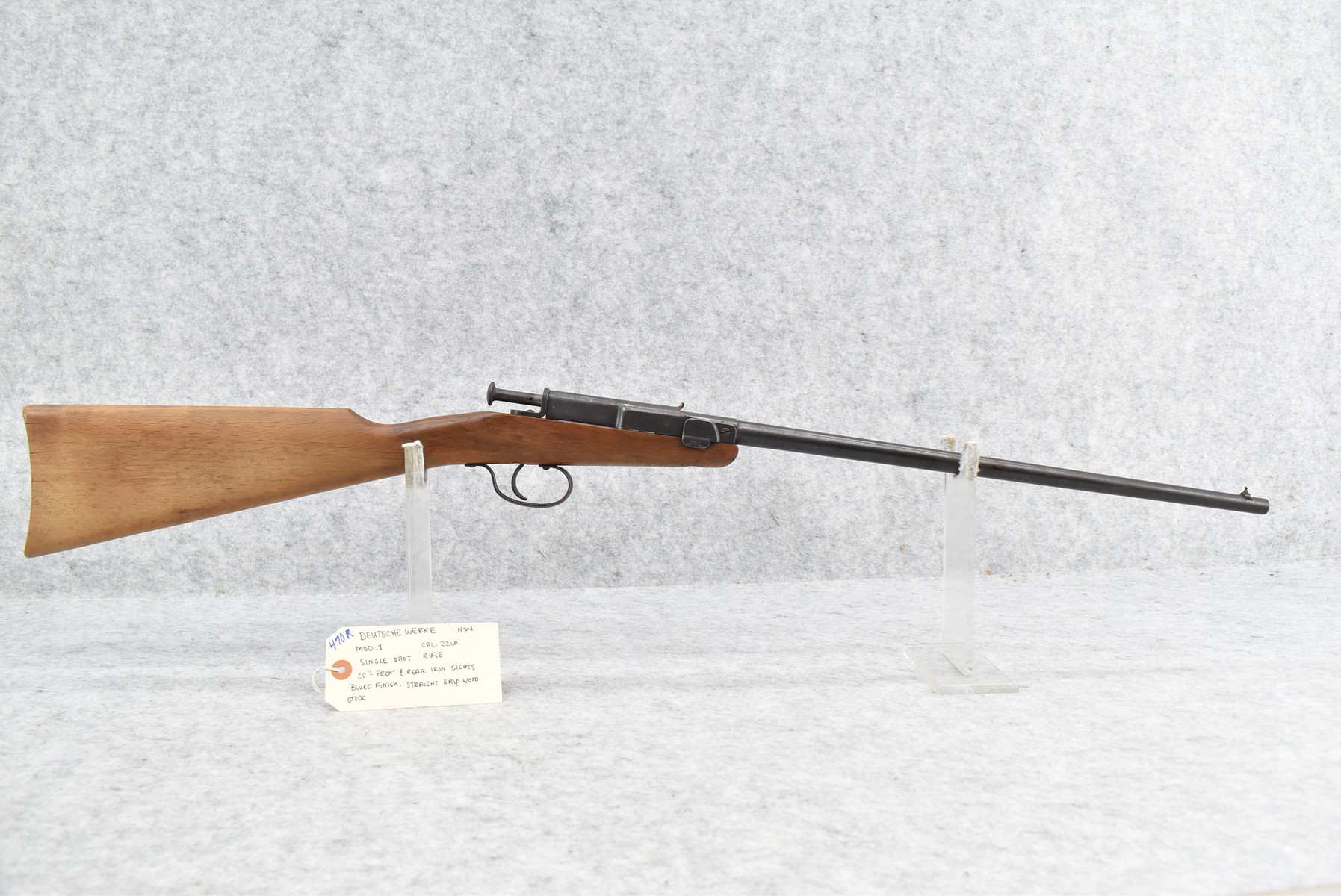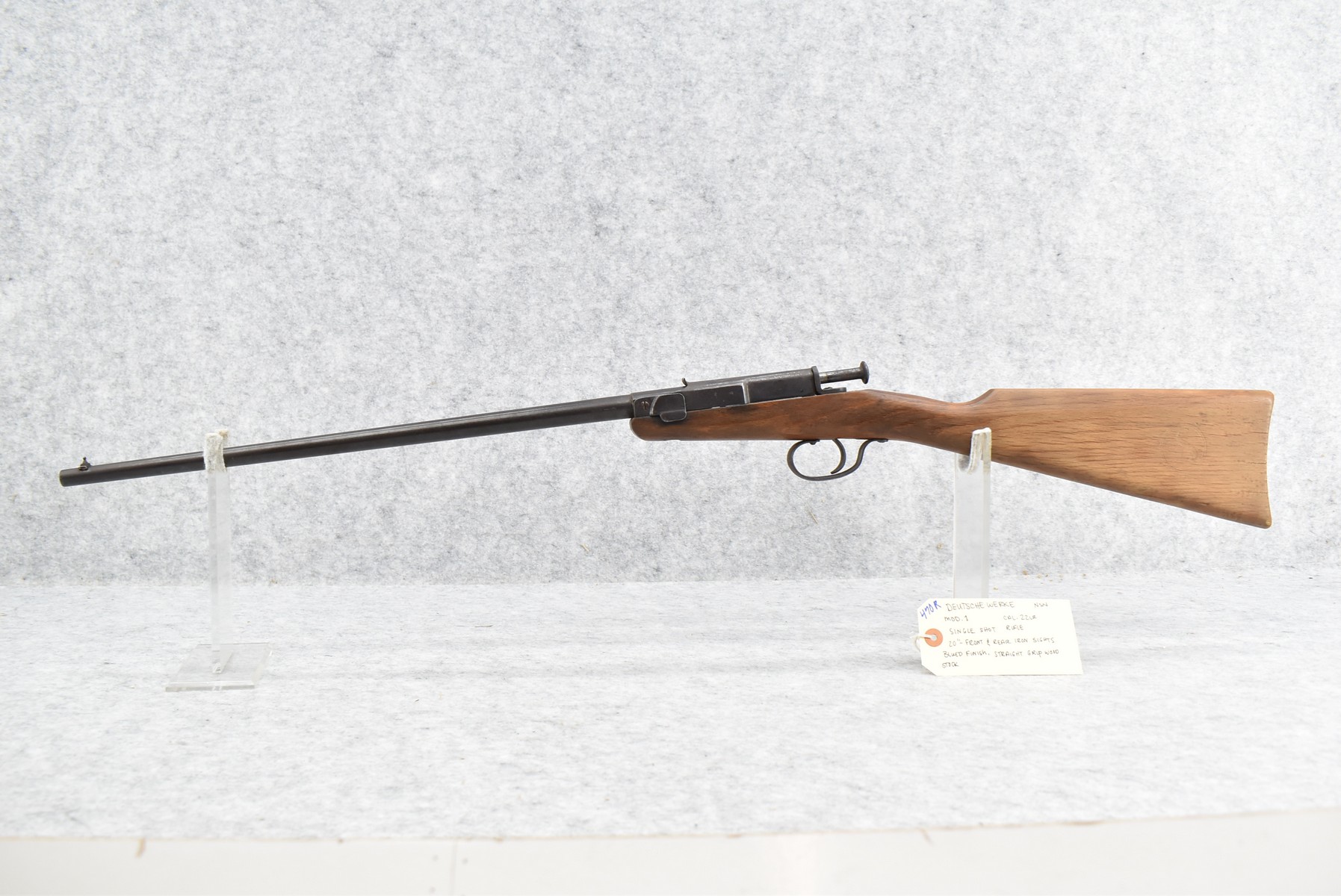 470R. Deutsche Werke – Mod. 1 – 22LR Cal. Single Shot Rifle – w/20” Barrel w/Front & Rear Iron Sights – Blued Finish – w/Straight Grip Wood Stock