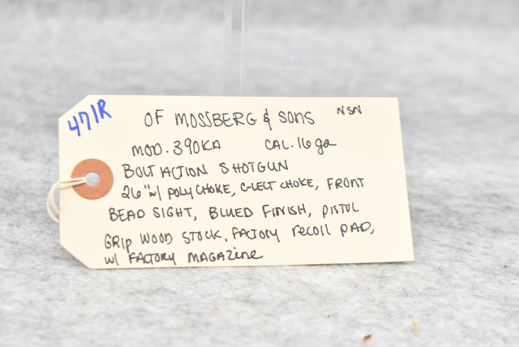 471R. Mossberg – Mod. 390KA – 16ga. Bolt Action Shotgun – w/26” Barrel w/Poly Choke, C-Lect Choke w/Front Bead Sight – Blued Finish – w/Pistol Grip Wood Stock w/Factory Recoil Pad – w/Factory Magazine