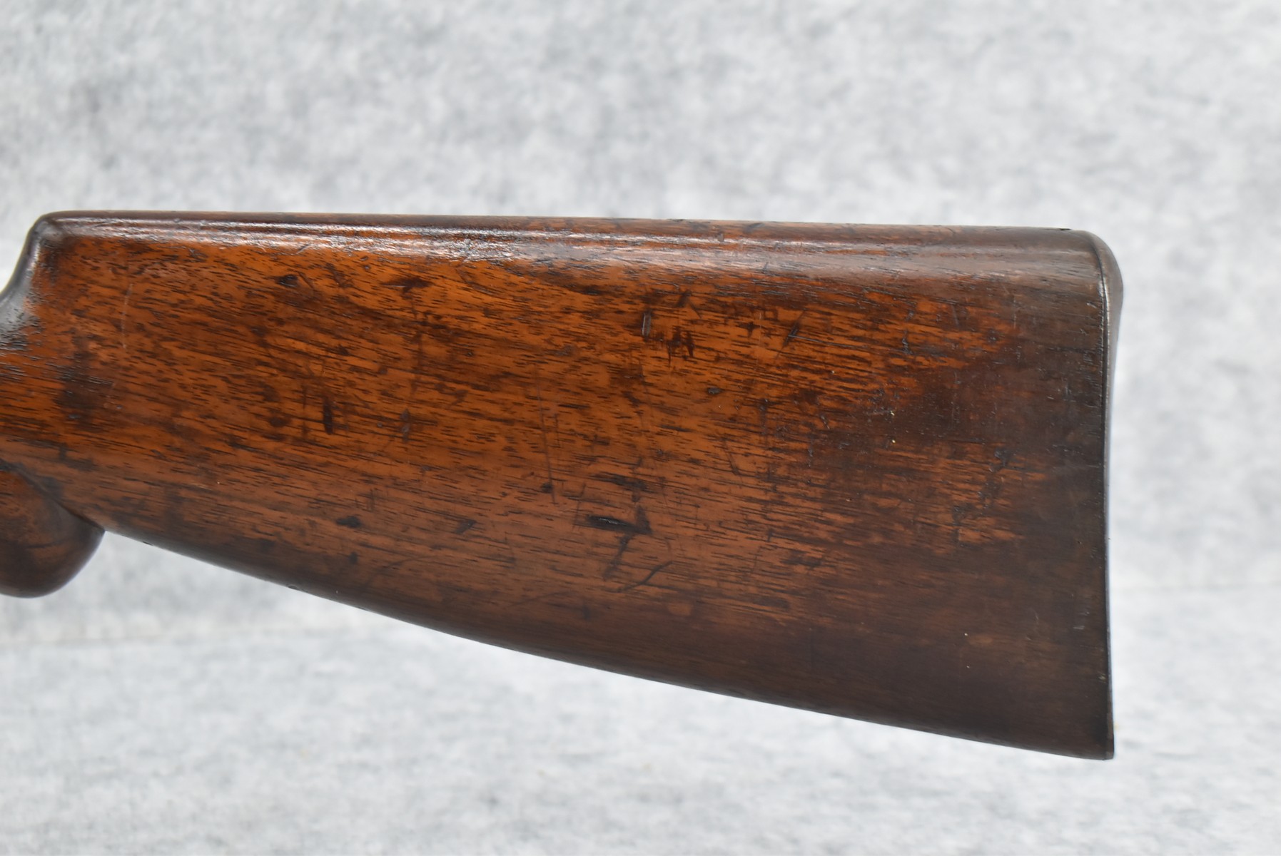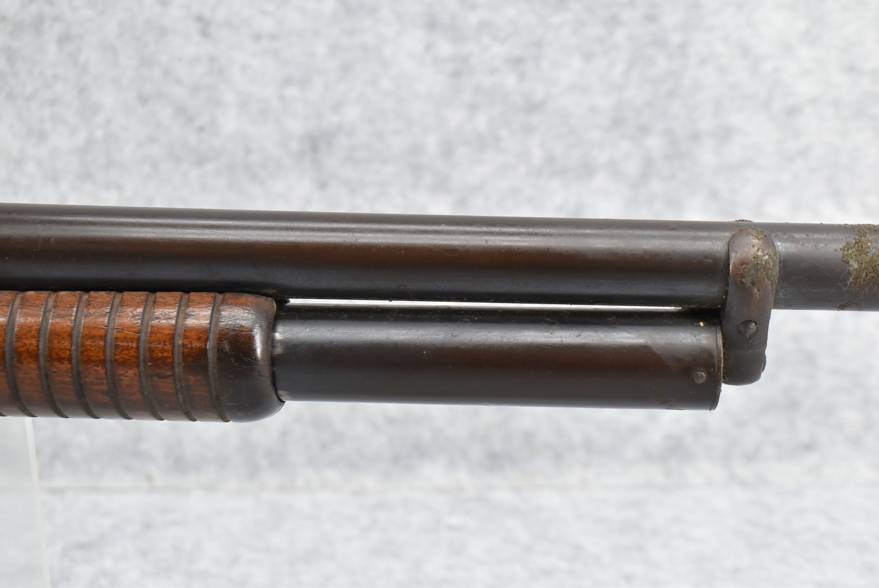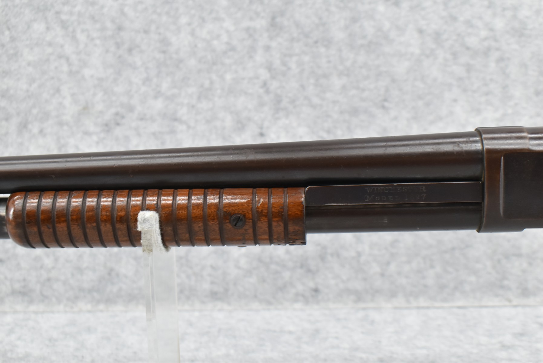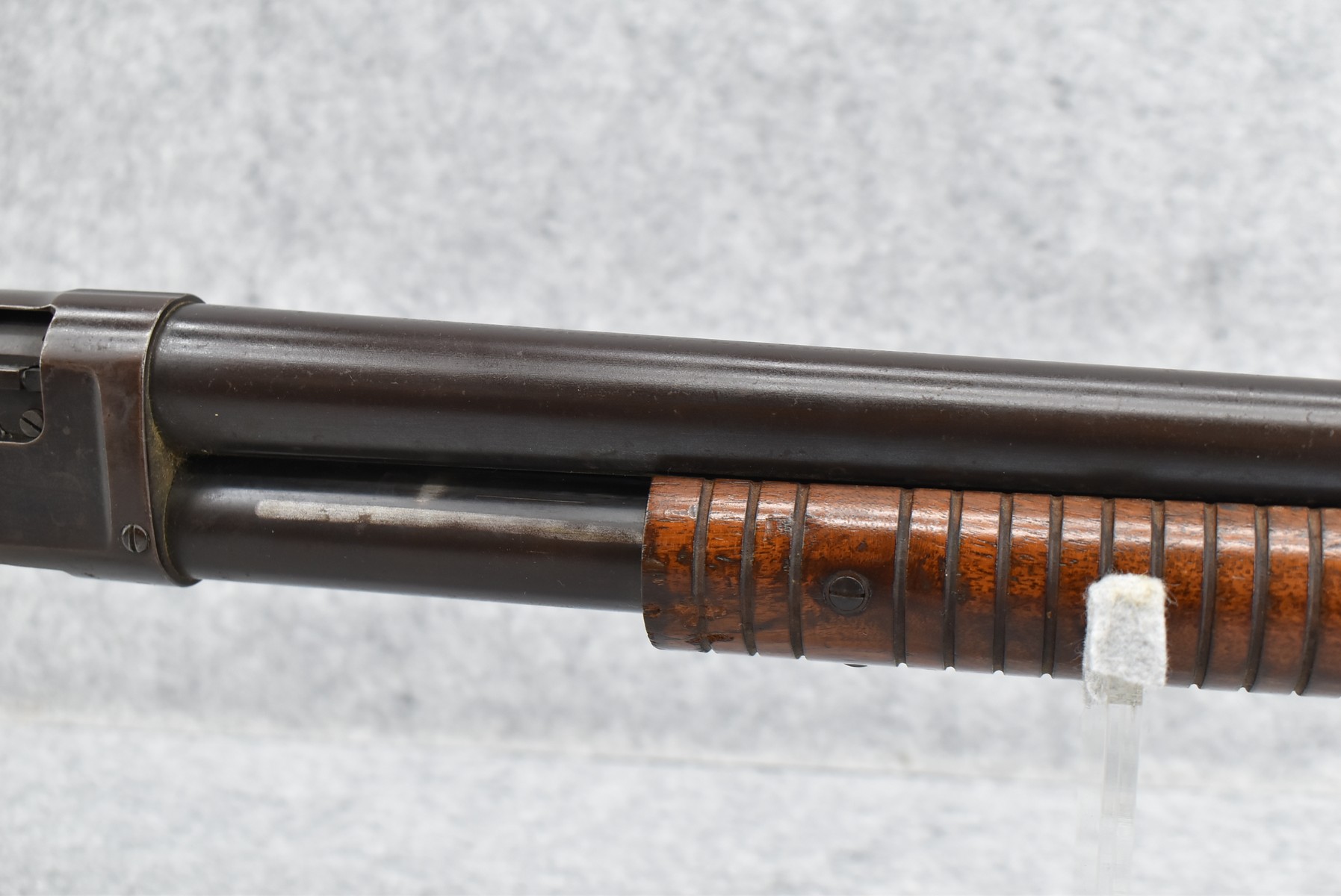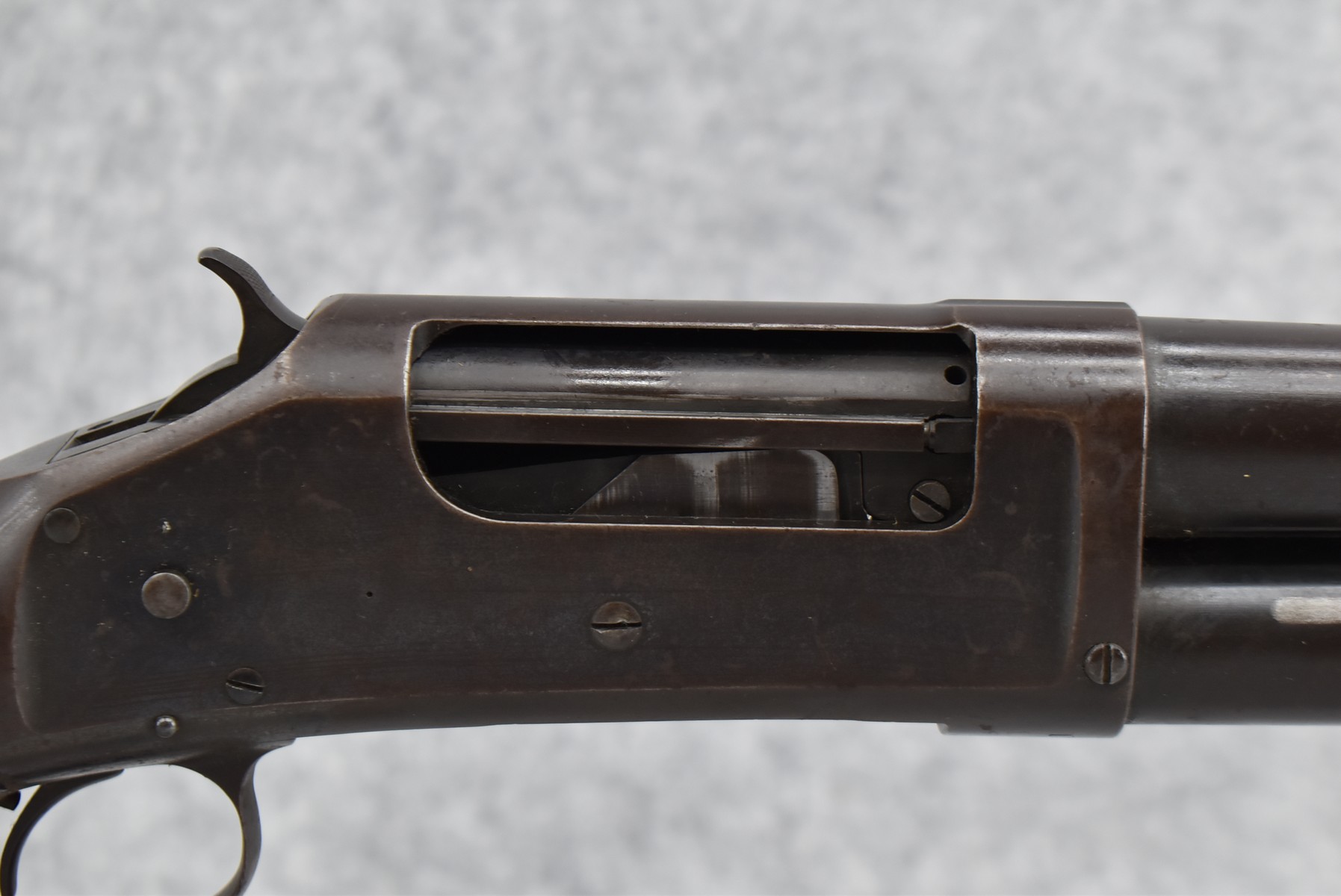 471R. Winchester – Mod. 1897 Riot Gun – 12ga. Pump Action Shotgun – w/20 Cyl. Choked Barrel w/Front Bead Sight – Blued/Gray Finish – w/Pistol Grip Wood Butt Stock w/Factory Metal Butt Plate & Ribbed Wood Forearm – Mfg. 1900