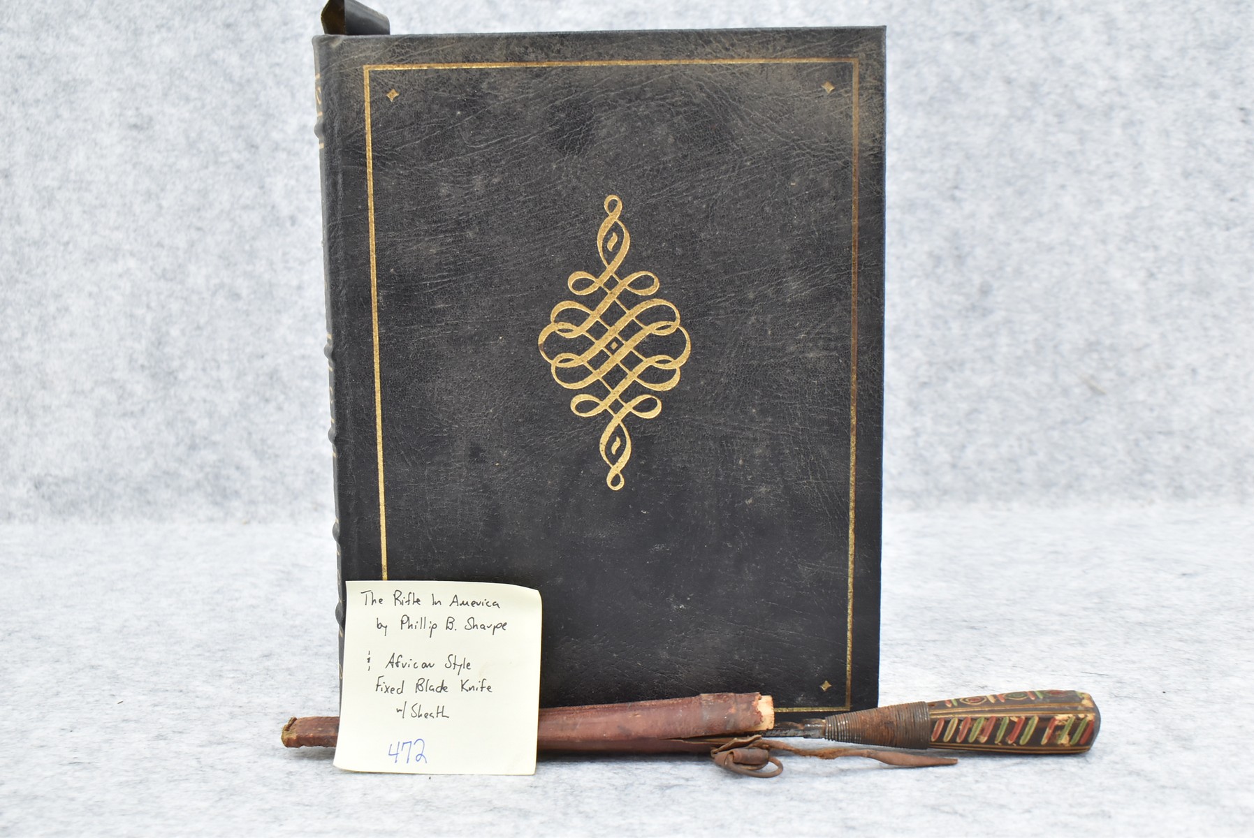 472. The Rifle in America by Phillip B. Sharpe Book & African Style Fixed Blade Knife w/Sheath