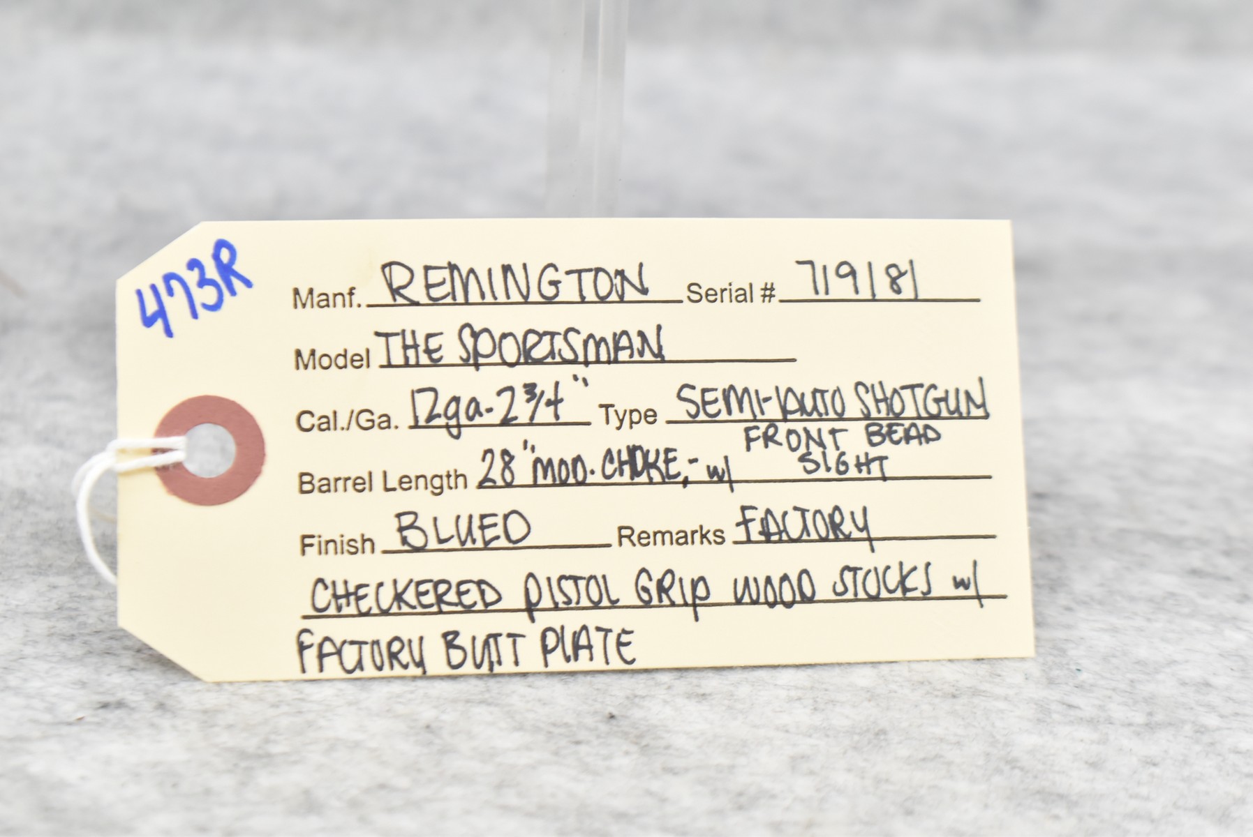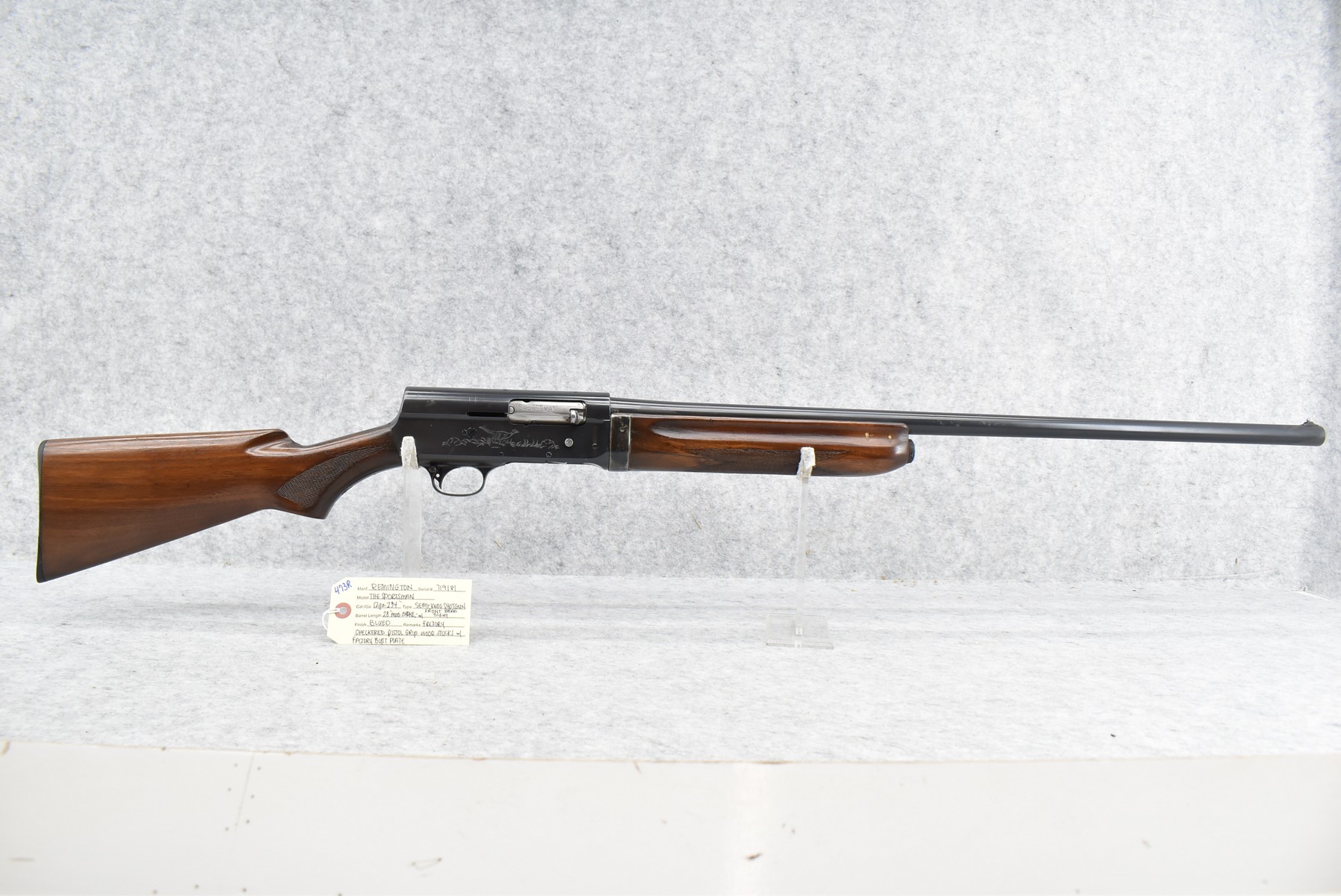 473R. Remington – Mod. The Sportsman – 12ga. 2 ¾” Semi-Auto Shotgun – w/28” Mod. Choke Barrel w/Front Bead Sight – Blued Finish – w/Factory Checkered Pistol Grip Wood Stocks w/Factory Butt Plate