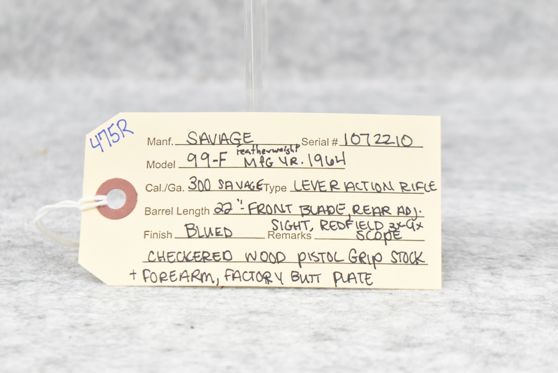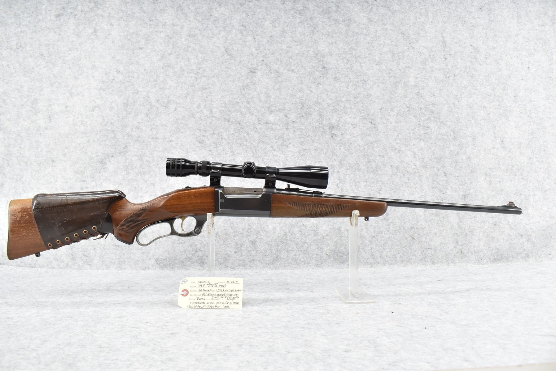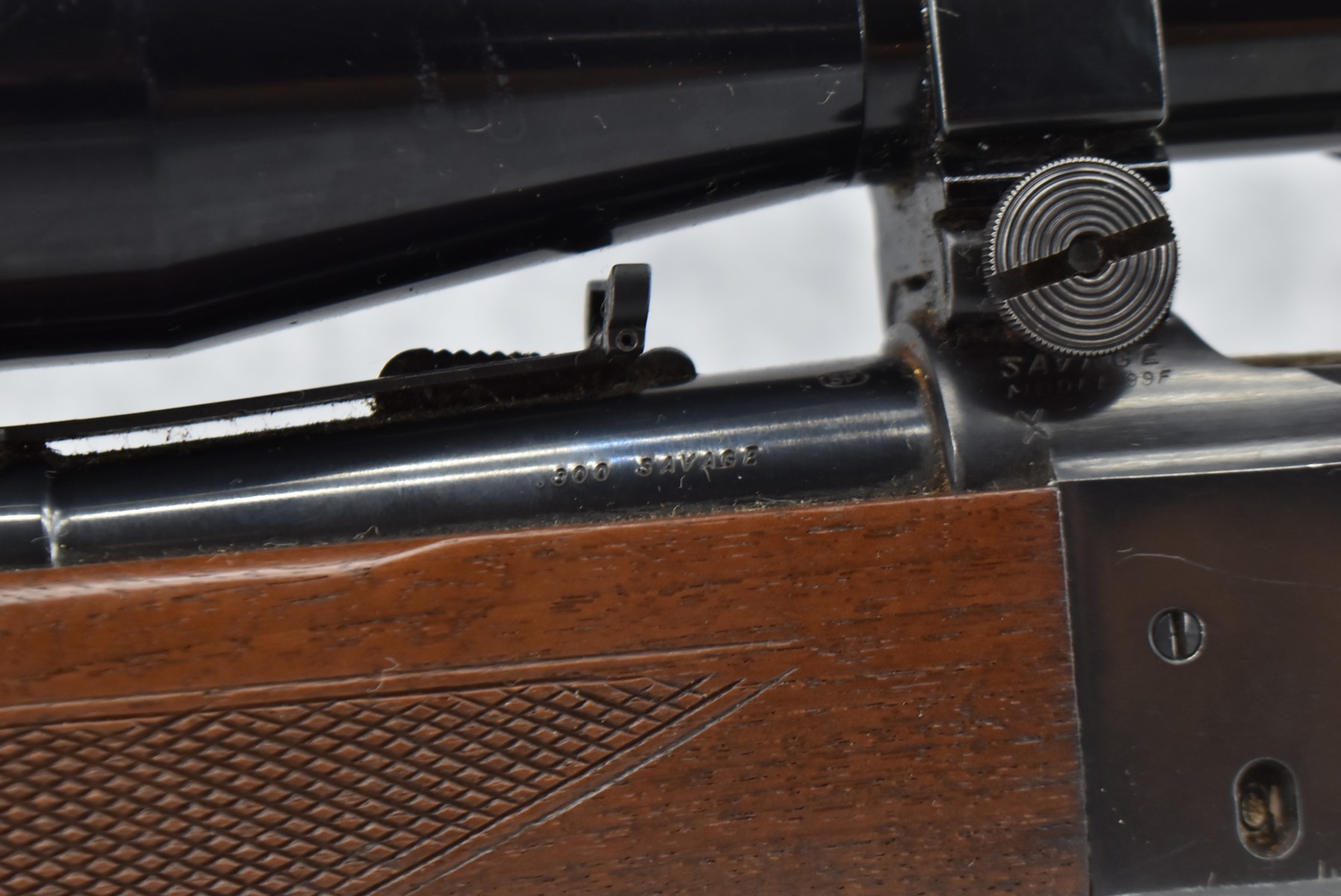 475R. Savage – Mod. 99-F Featherweight – 300 Sav. Cal. Lever Action Rifle – w/22” Barrel w/Front Blade & Rear Adj. Sight – Blued Finish – w/Checkered Wood Pistol Grip Stocks w/Factory Butt Plate – w/Redfield 3x-9x Scope – Mfg. 1964