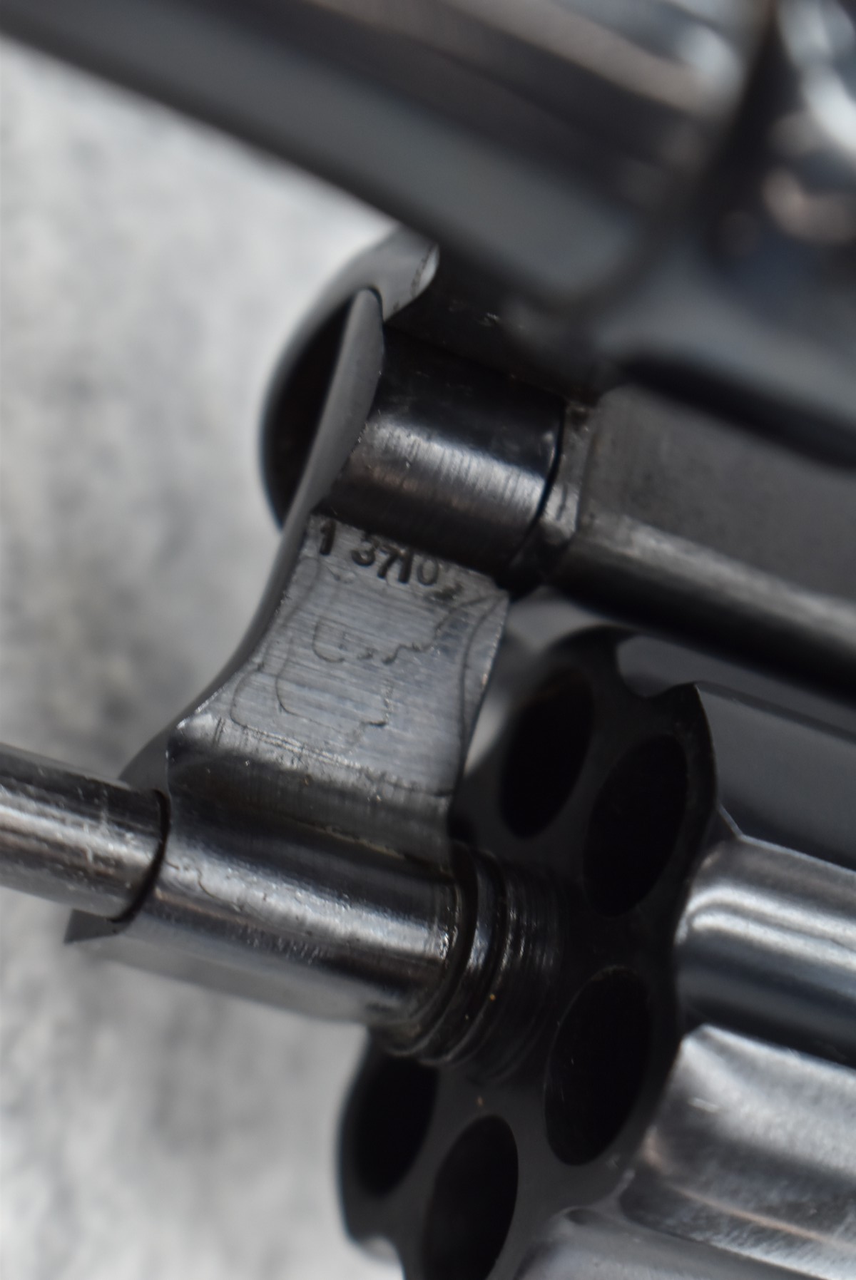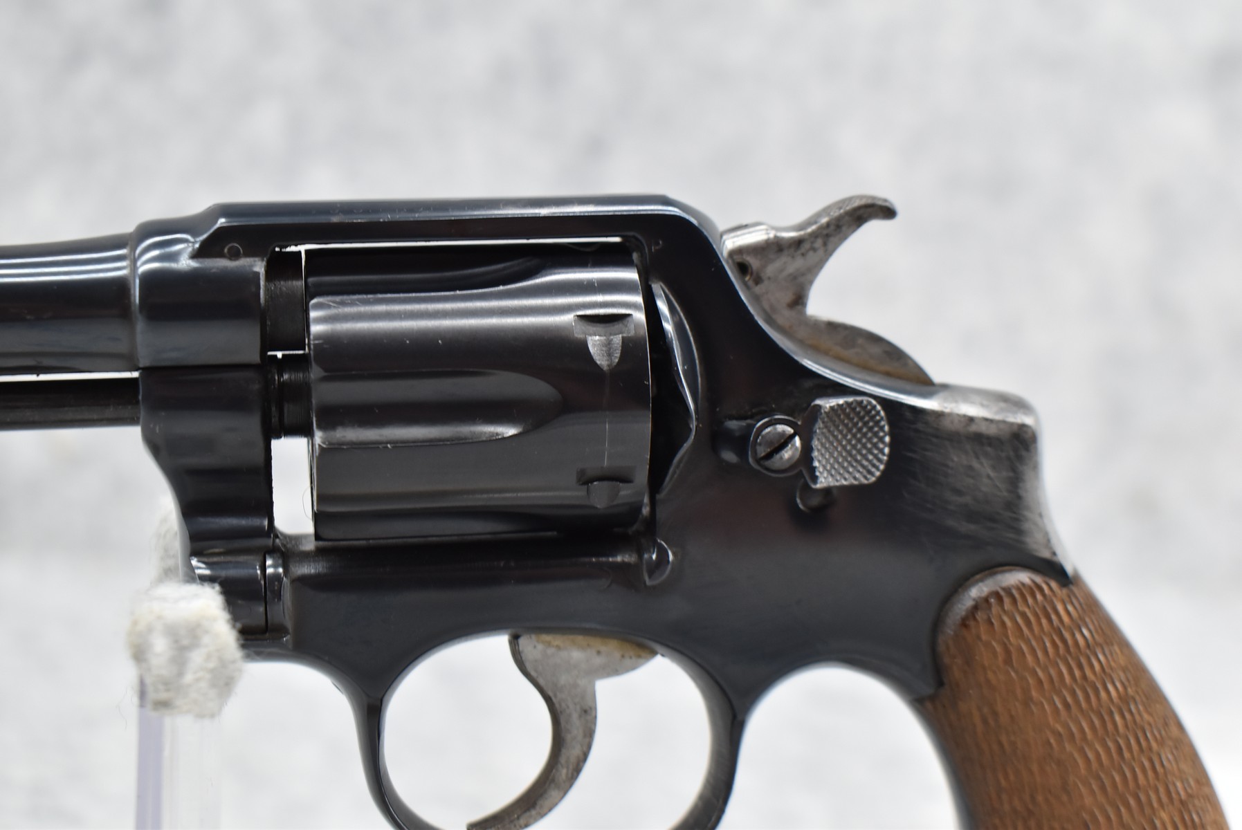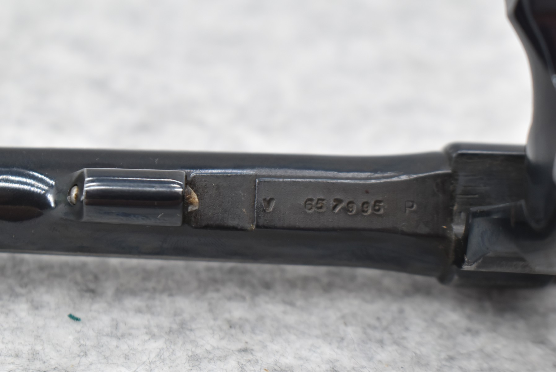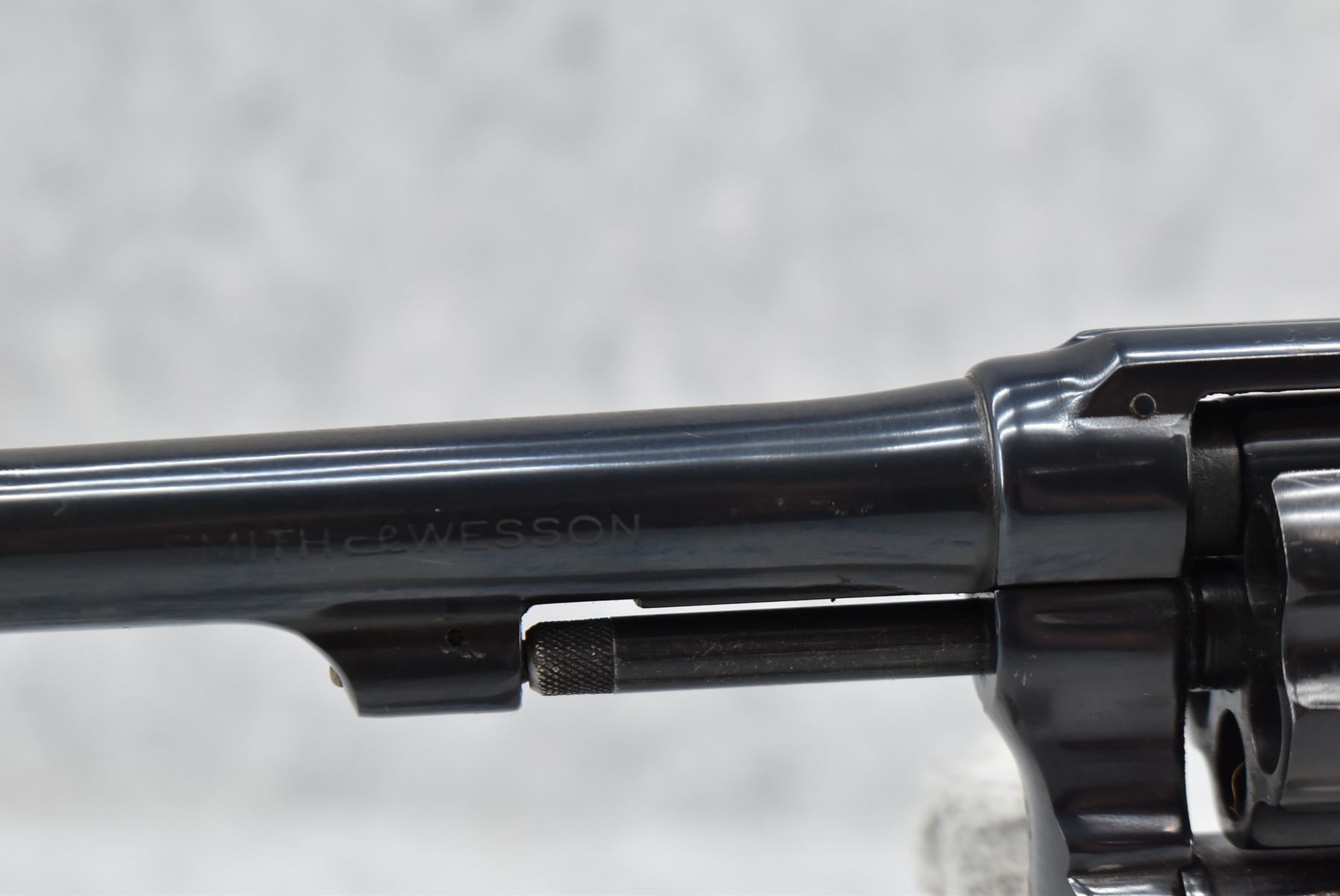 479R. Smith & Wesson – Mod. Victory – 38 Cal. Double Action Revolver – w/5” Barrel w/Front Blade & Rear Grooved Sights – Blued/Gray Finish – w/Checkered Wood Grips