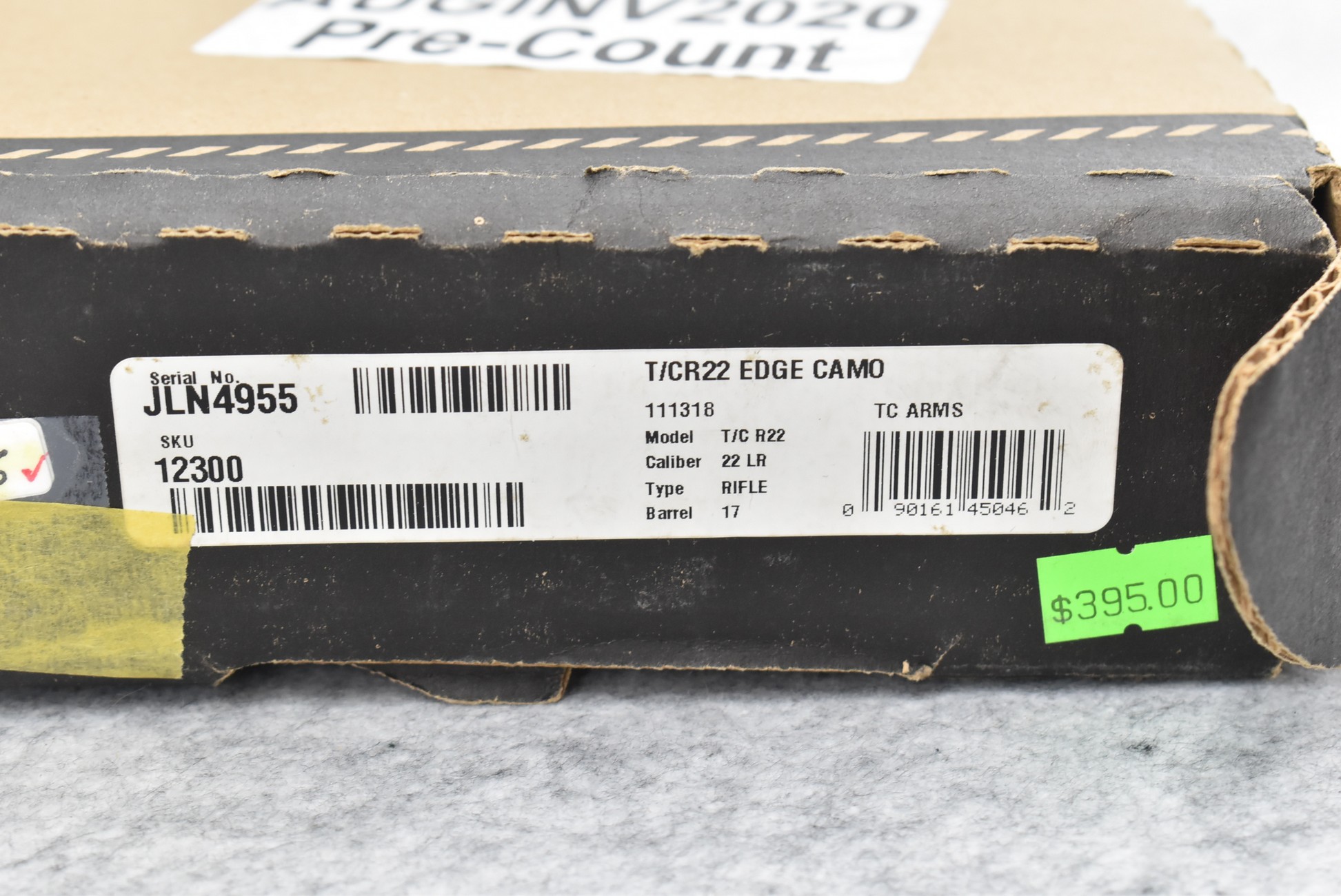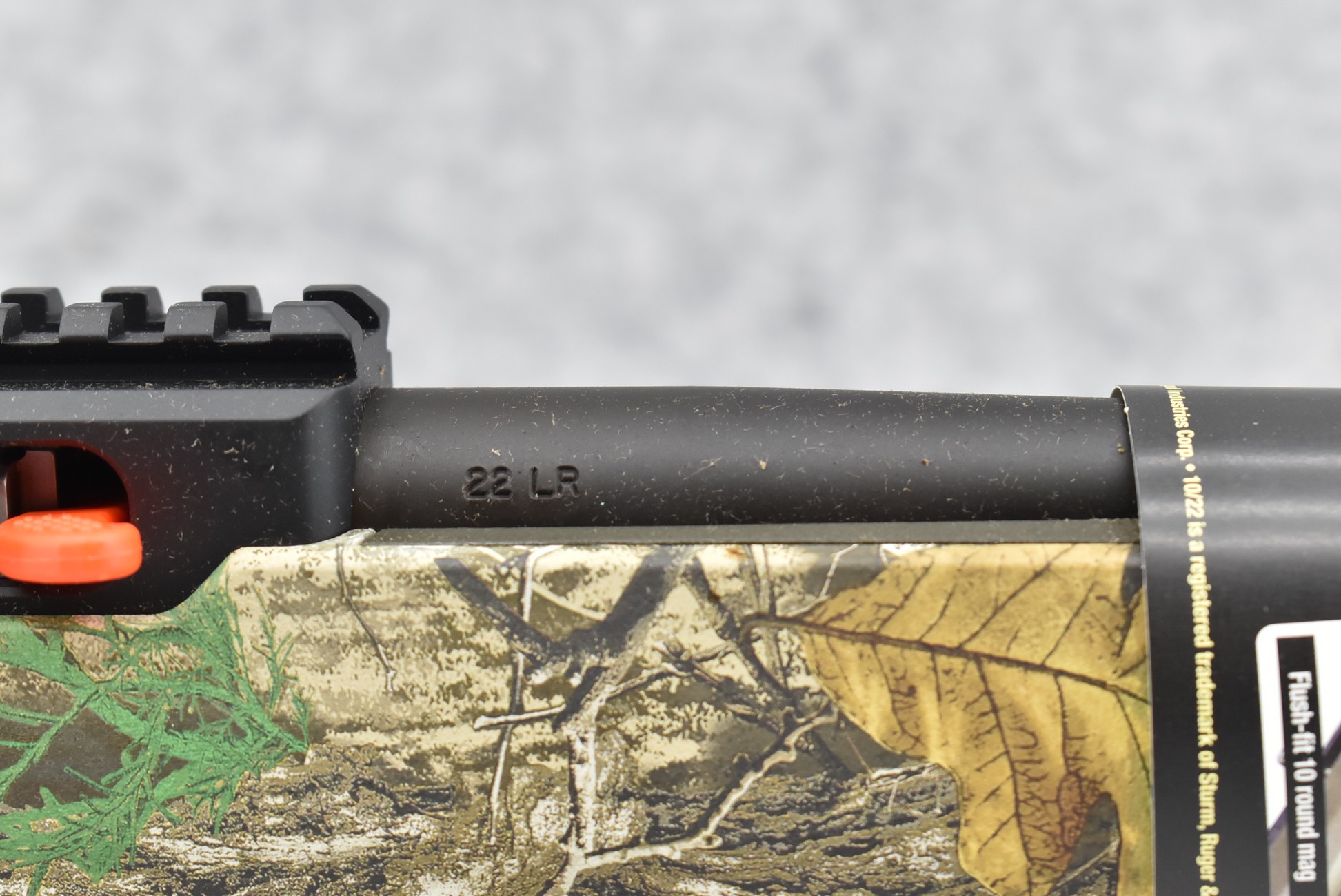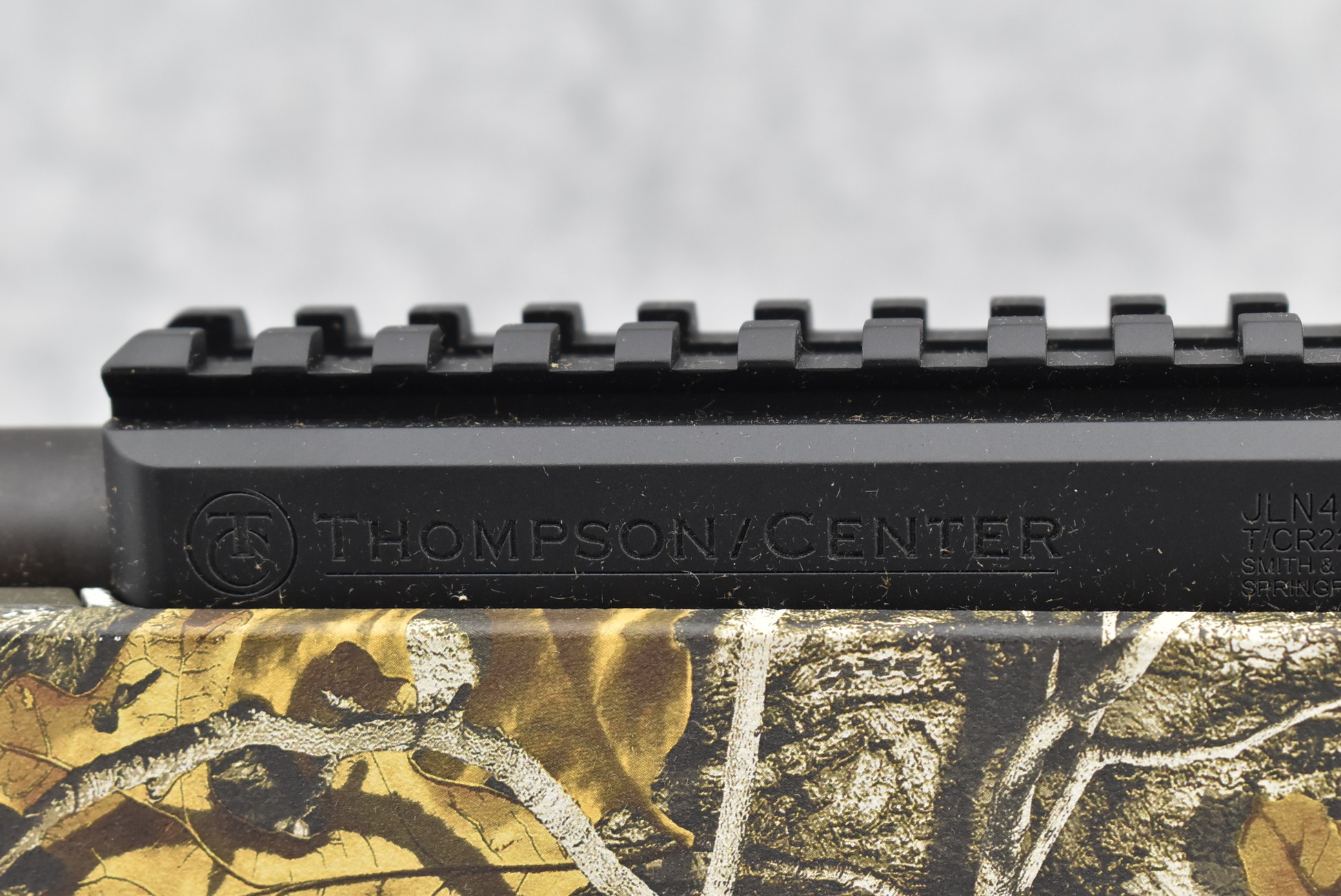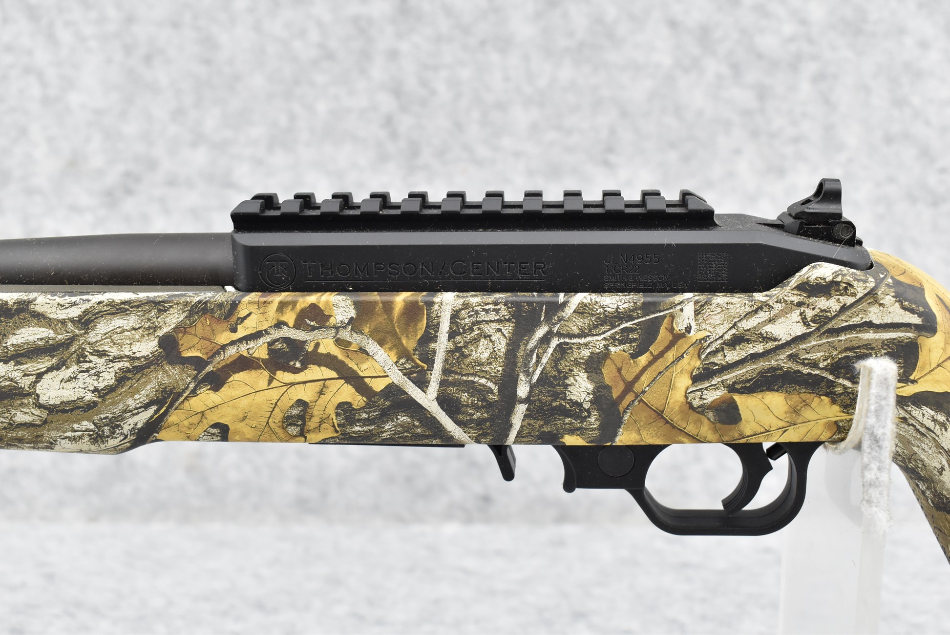 481R.     Thompson Center -Mod. T/C R22 – 22LR Cal. Semi-Auto Rifle – w/17” Barrel w/Threaded Muzzle w/Cap w/Fiber Optic Front Sight & Rear Peep Sights – Matte Blued Finish – w/Factory Realtree Edge Camo Pistol Grip Synthetic Stock – w/Rail Mount – Unfired w/Factory Box, Manual & Detachable Mag