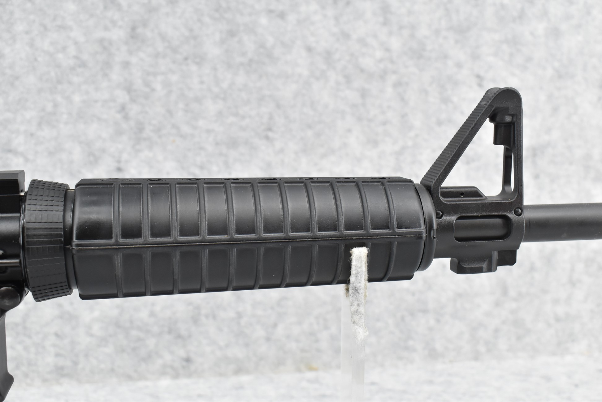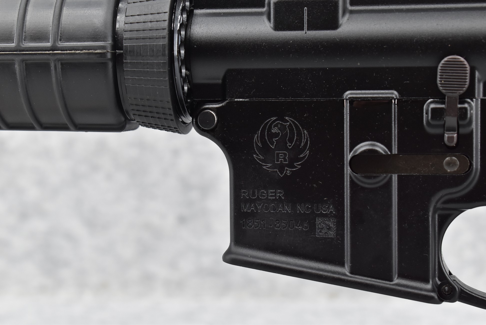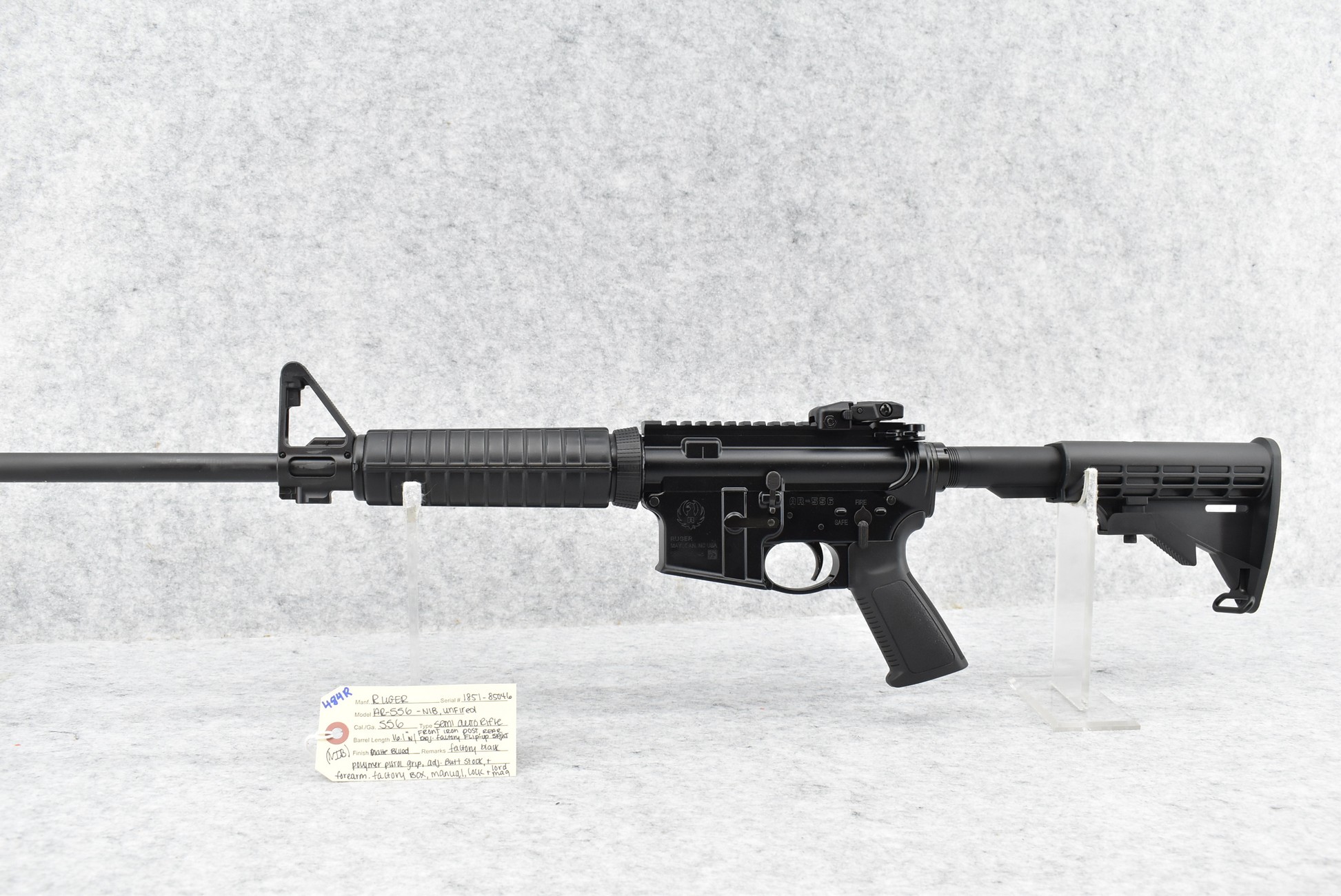 484R. Ruger – Mod. AR-556 – 5.56 Cal. Semi-Auto Rifle – w/16.1” Barrel w/Front Iron Post & Rear Adj. Factory Flip Up Sights – Matte Blued Finish – w/Factory Black Polymer Pistol Grip, Adj. Butt Stock & Forearm – Unfired w/Factory Box, Manual & 10Rd Mag (MARYLAND COMPLIANT)