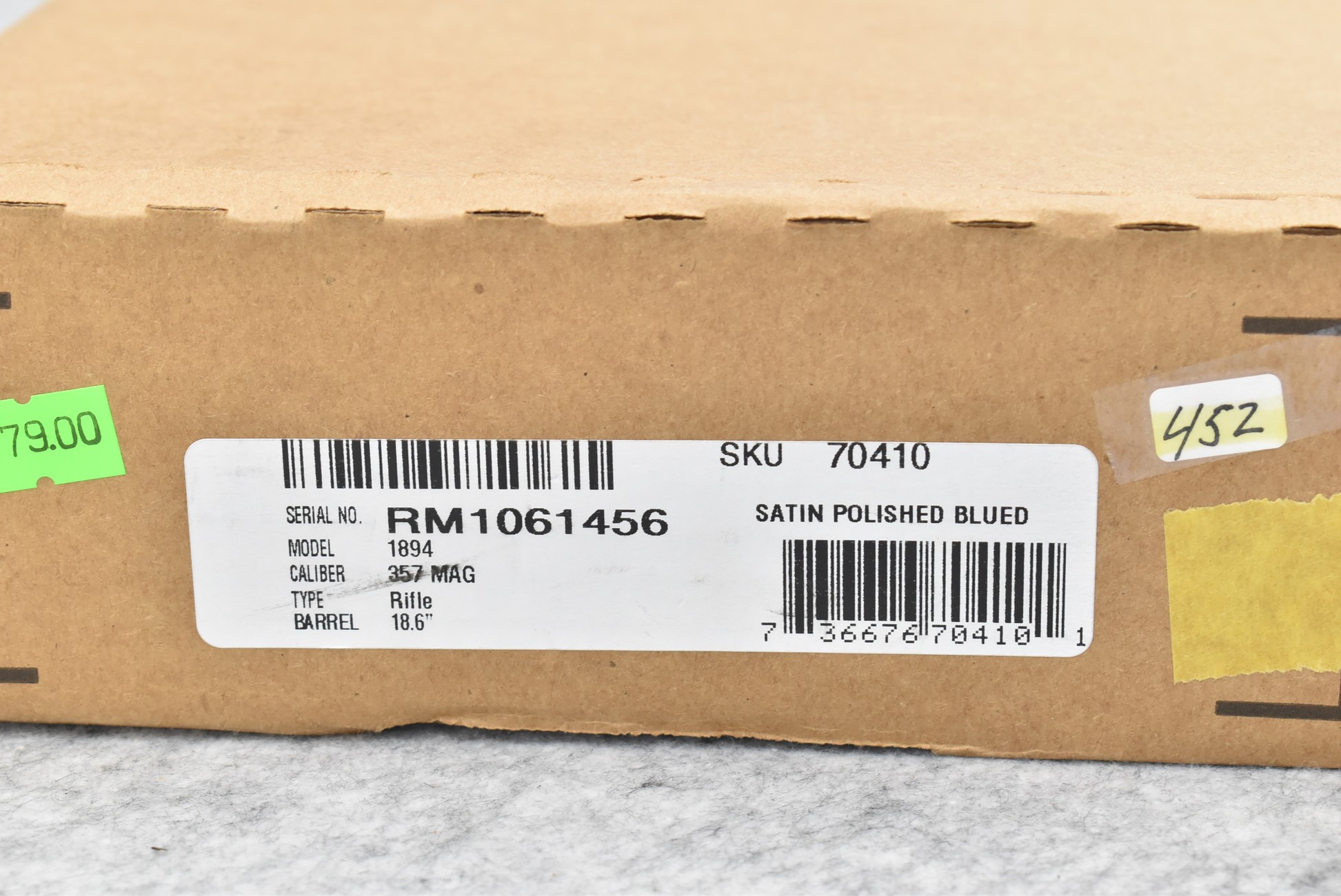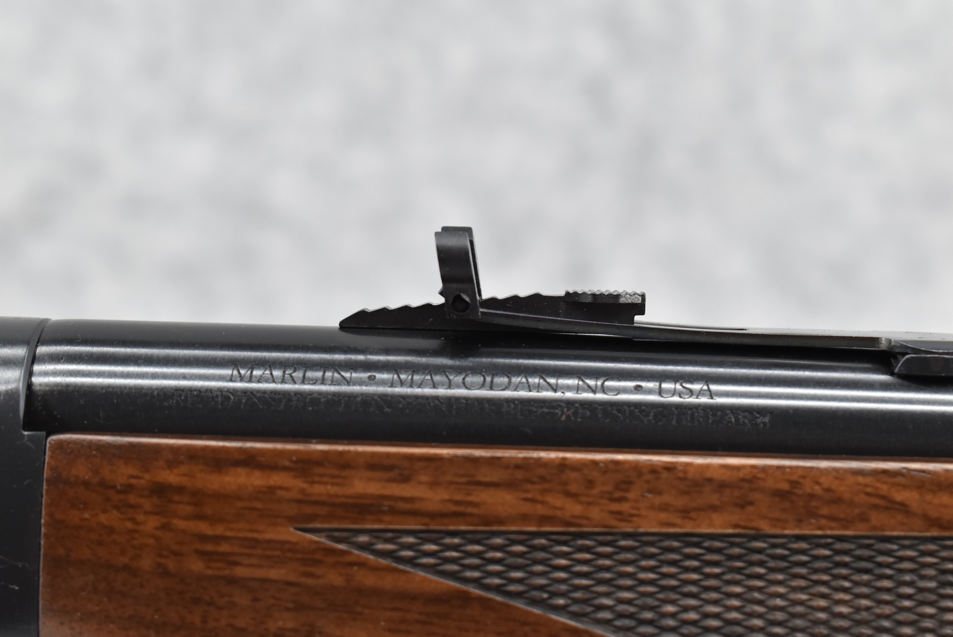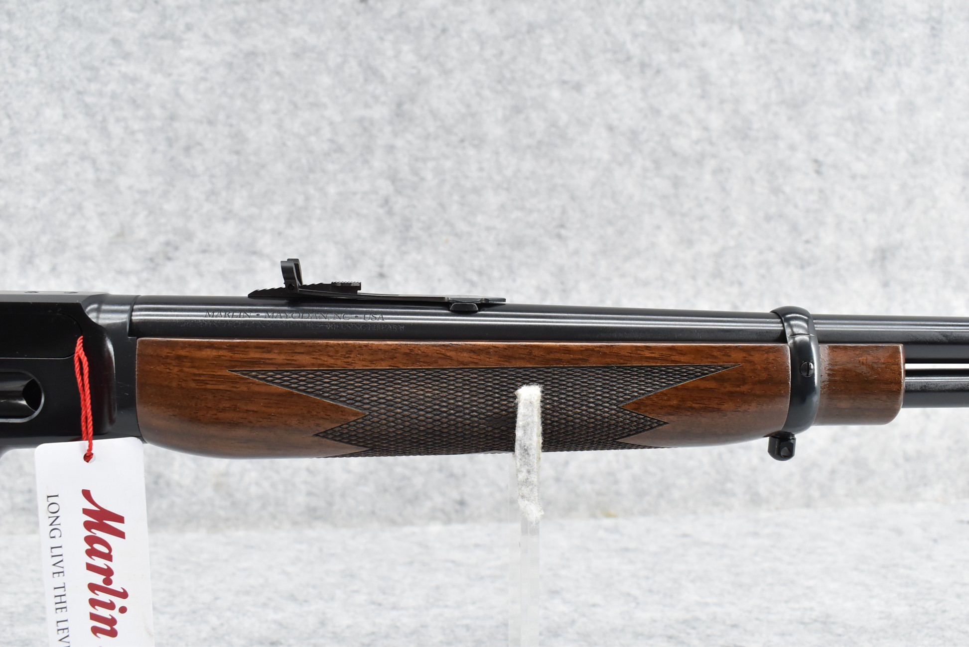 485R. Marlin – Mod. 1894 Classic – 357 Mag. Cal. Lever Action Rifle – w/18.6” Barrel w/Hooded Front & Rear Adj. Semi Buckhorn Sights – Blued Finish – w/Checkered Straight Grip Wood Stocks w/Factory Recoil Pad – Unfired w/Factory Box, Manual, Hang Tag