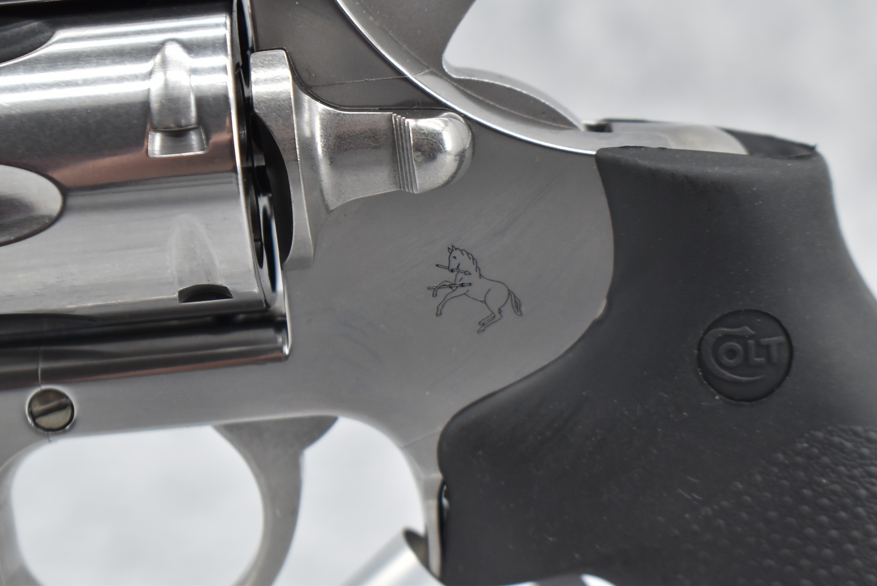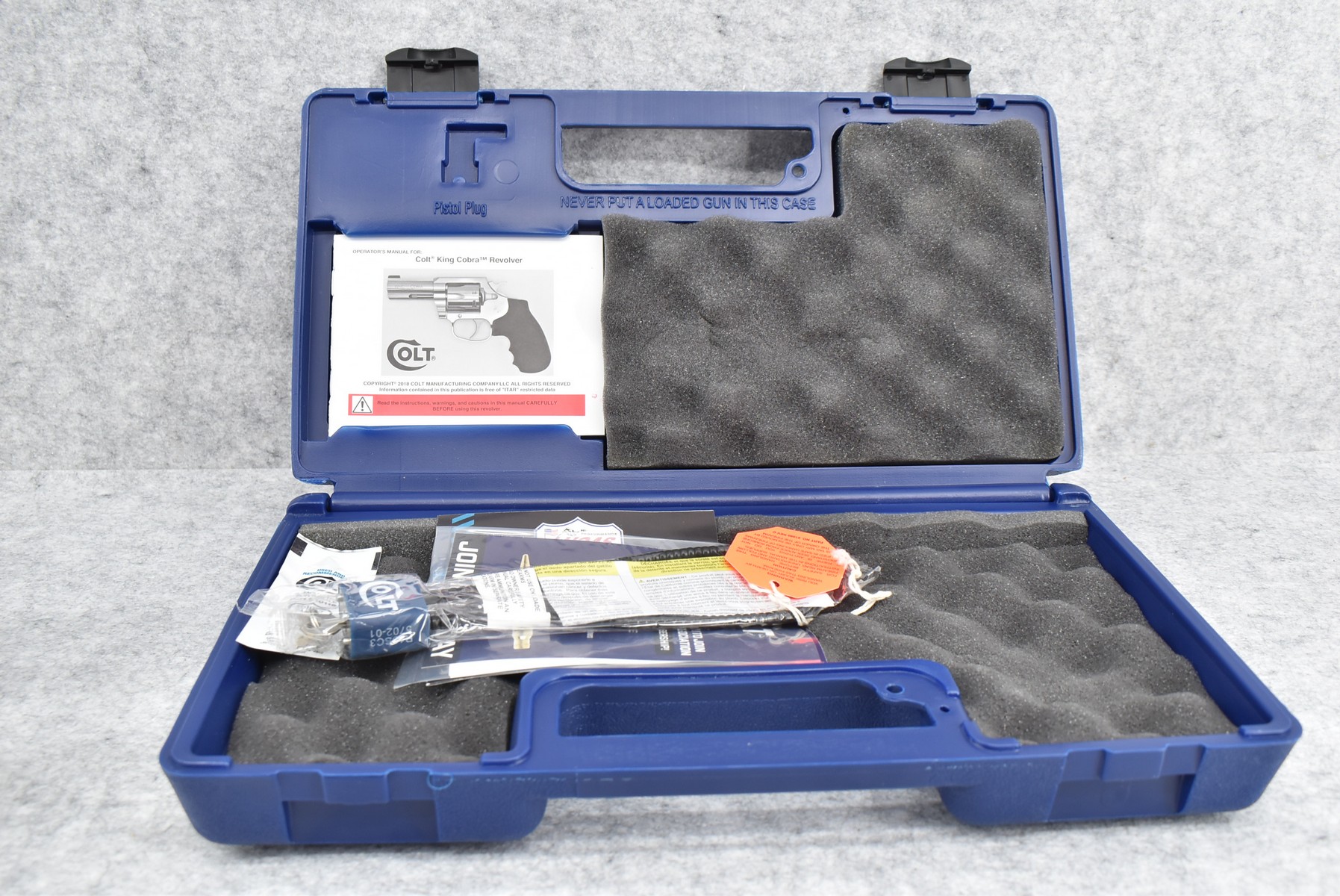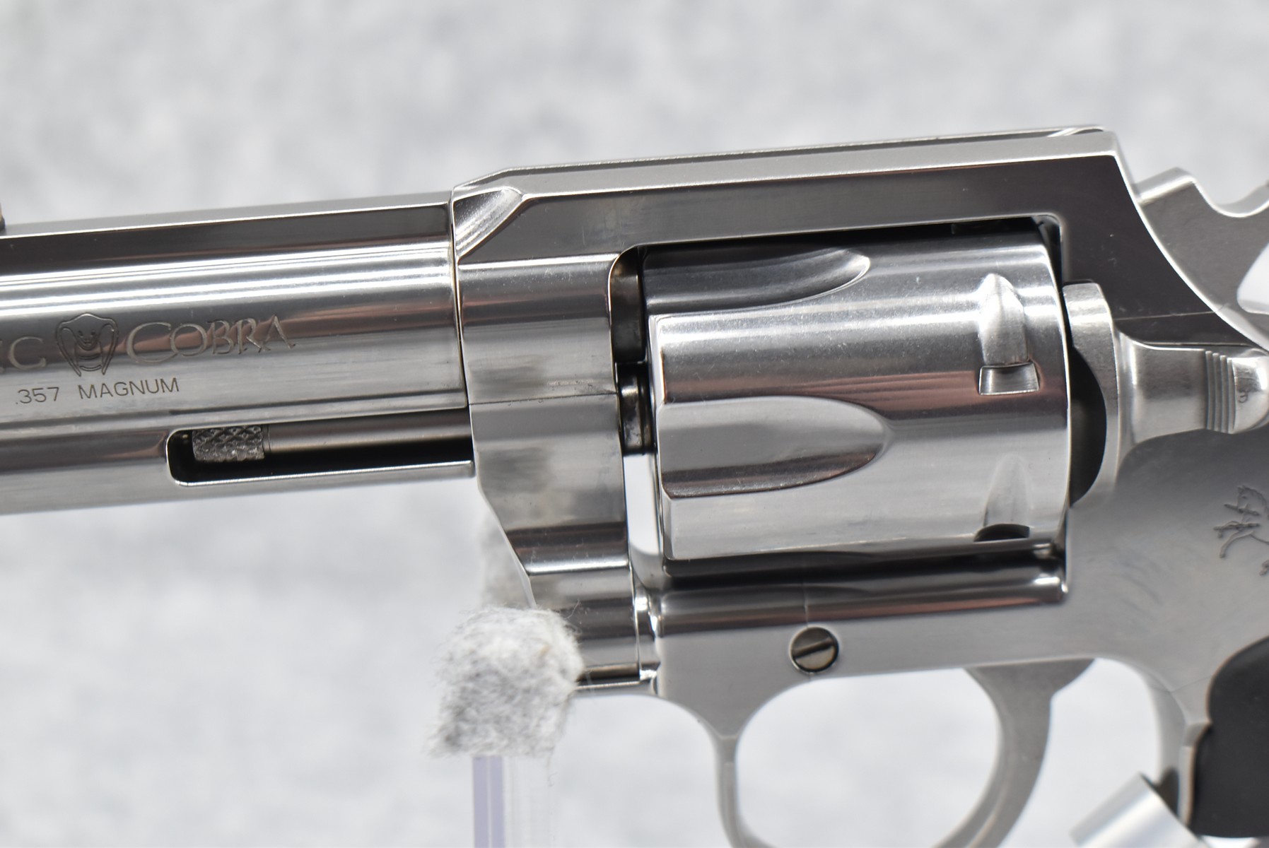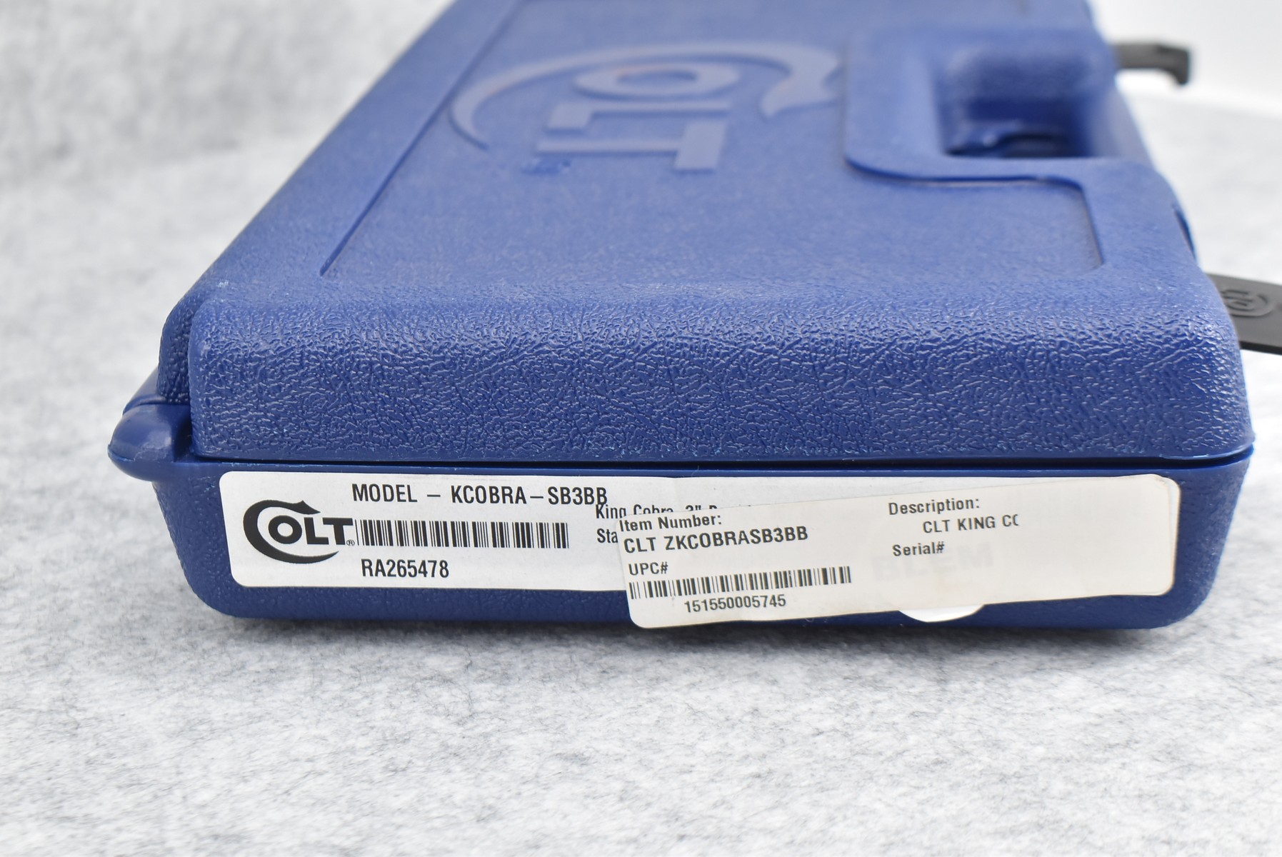 48R. Colt – Mod. King Cobra – 357 Mag. Cal. Double Action Revolver – w/3” Barrel w/Blade Front & Rear Notch Sights – Stainless Finish – w/Colt Molded Black Rubber Grips – New w/Factory Hard Case, Manual & Accessories