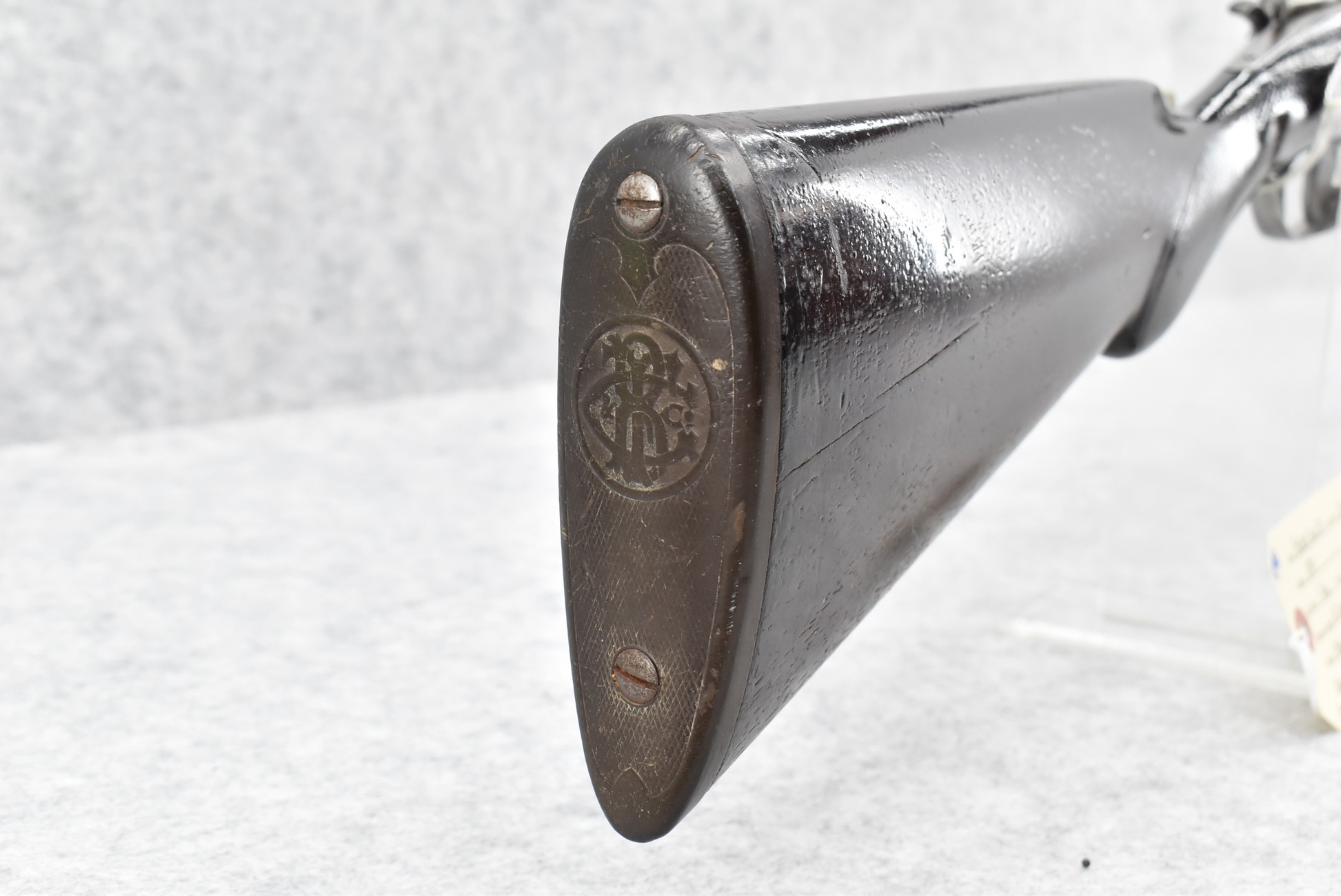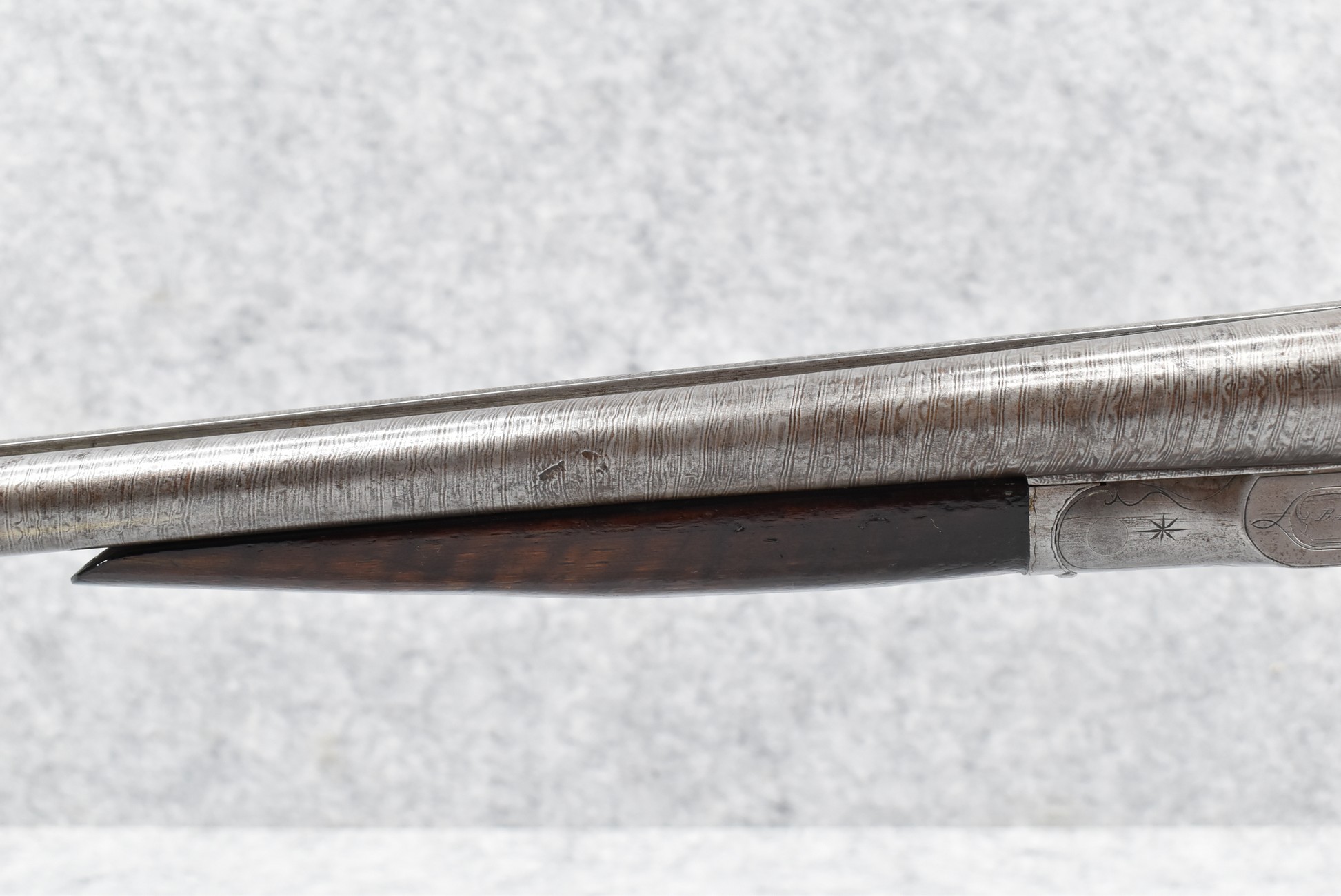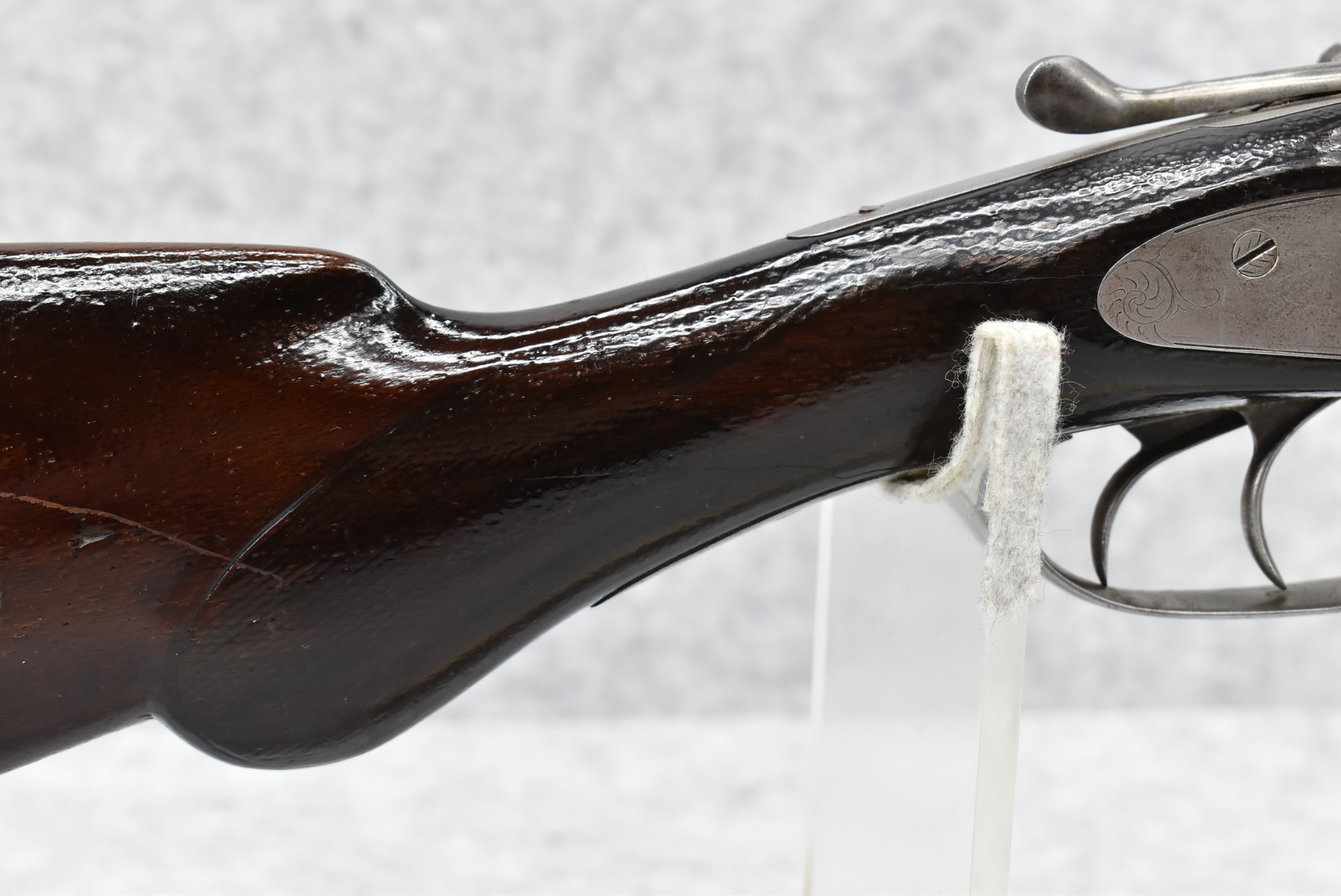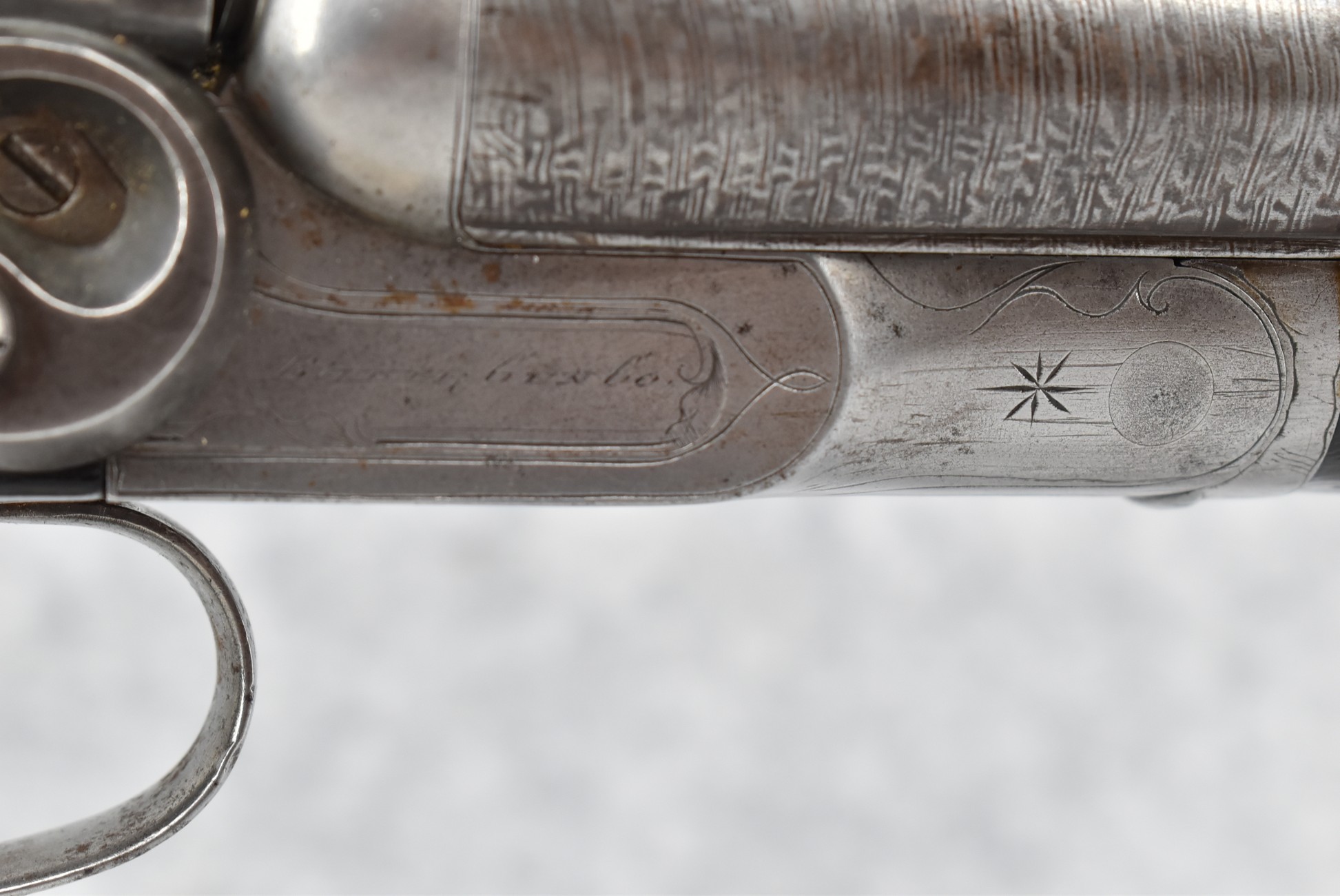 490. Baker Gun Co. – Mod. 1897 – 12ga. Double Barrel Shotgun – w/32” Solid Rib Damascus Barrel w/Bead Front Sight – Grey Finish – w/Factory Round Knob Pistol Grip Stocks w/Factory Butt Plate – w/Double Hammers and Triggers