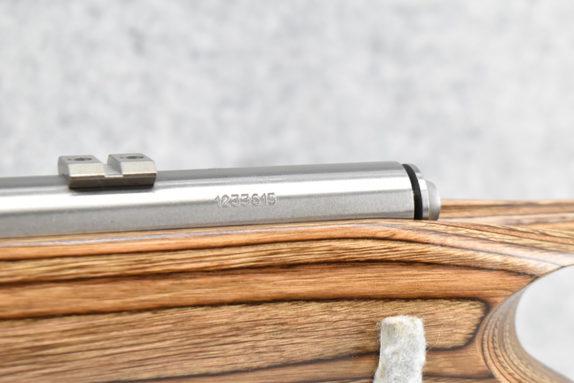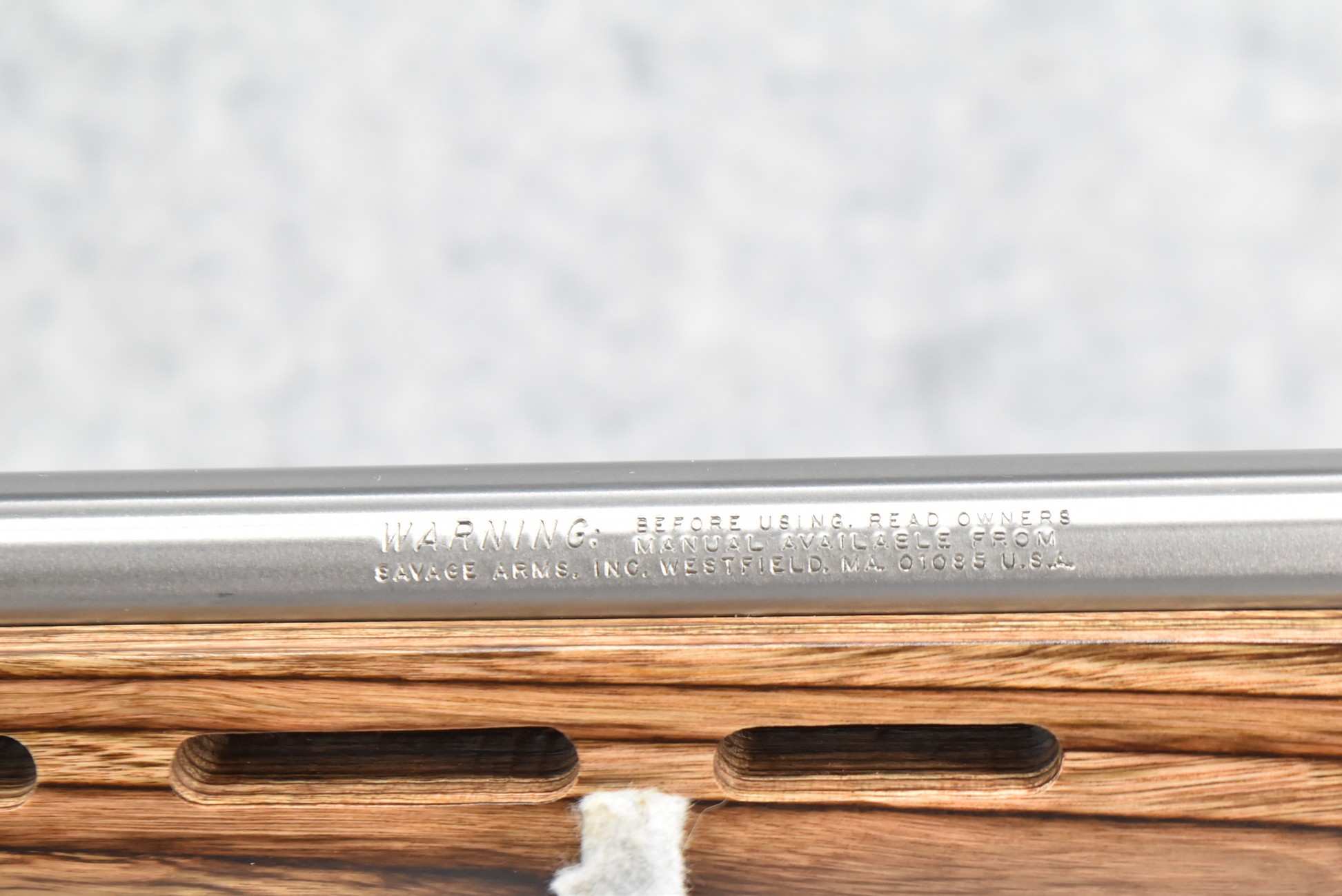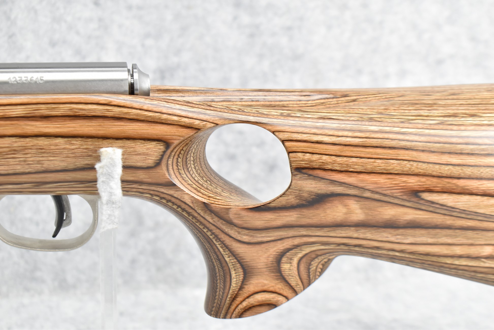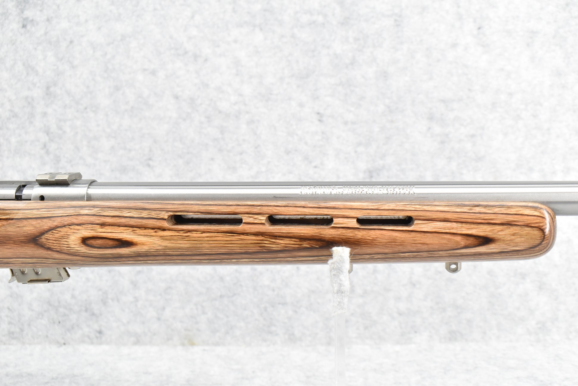 4R. Savage – Mod. Mark II (BTVSS) – 22LR Cal. Bolt Action Rifle – w/21” Stainless Heavy Barrel w/Mounting Bases for Optics – Stainless Finish – w/Thumbhole Pistol Grip Brown Laminated Wood Target Stock w/Vented Forend and Factory Butt Pad – w/1 Factory Detachable Magazine – As New w/Factory Box, Manual