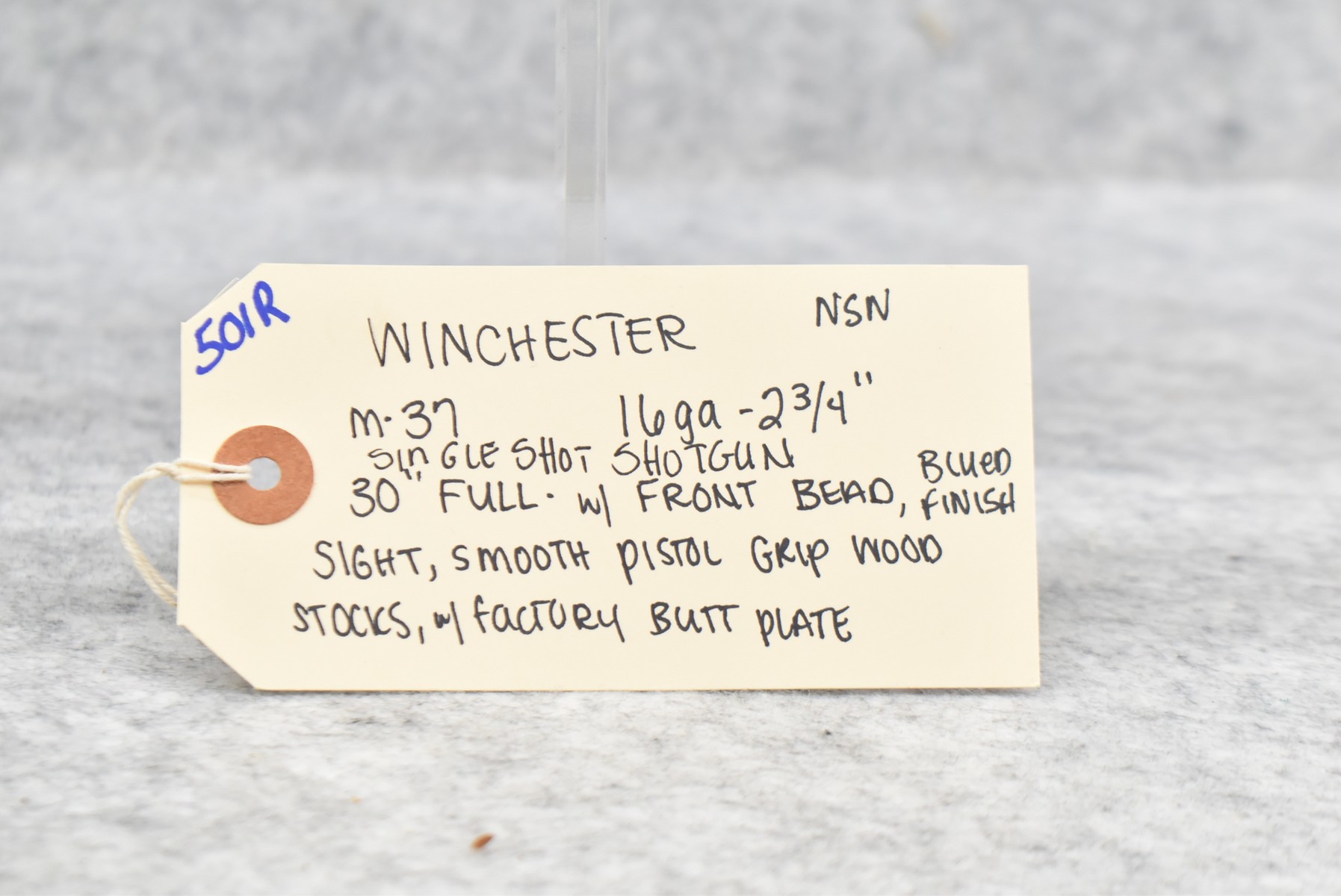 501R. Winchester – Mod. 37 – 16ga. 2 ¾” Single Barrel Shotgun – w/30” Full Choke Barrel w/Front Bead Sight – Blued Finish – w/Smooth Pistol Grip Wood Stocks w/Factory Butt Plate