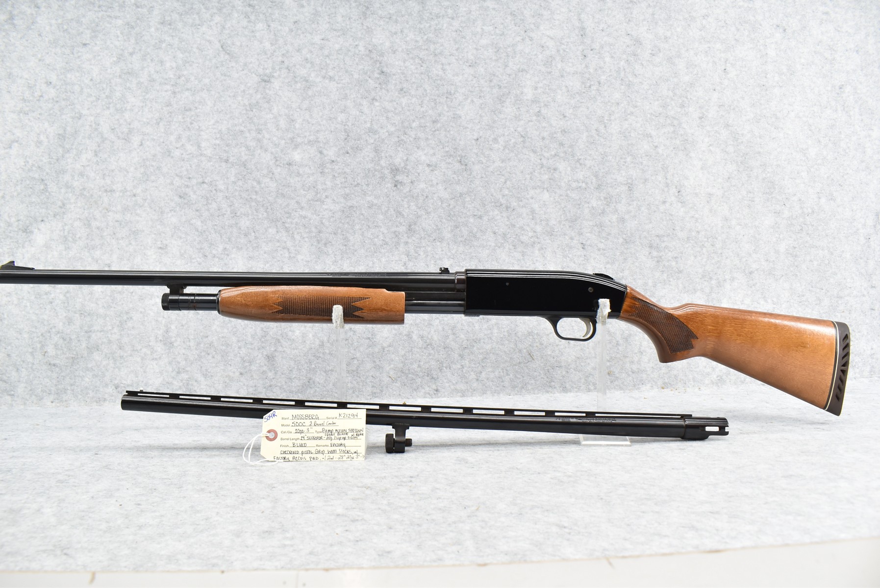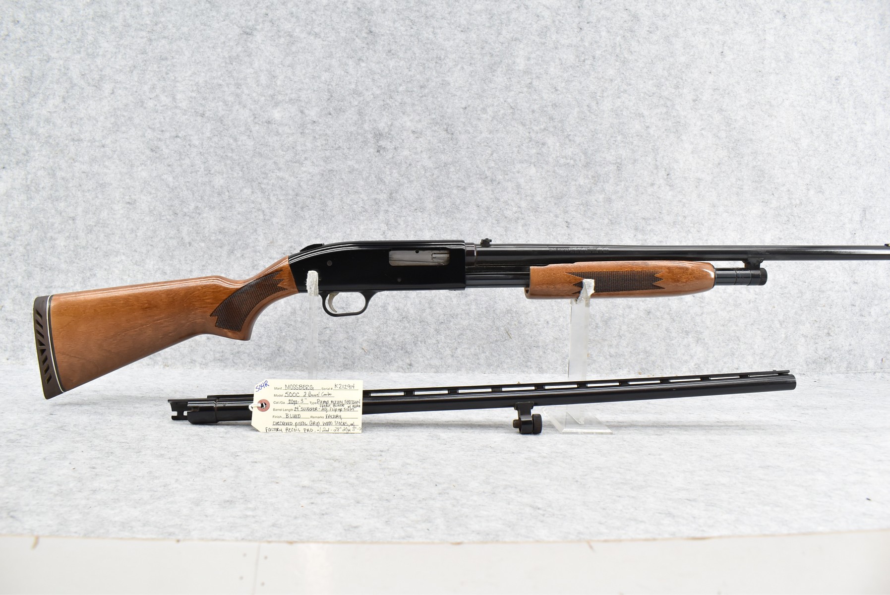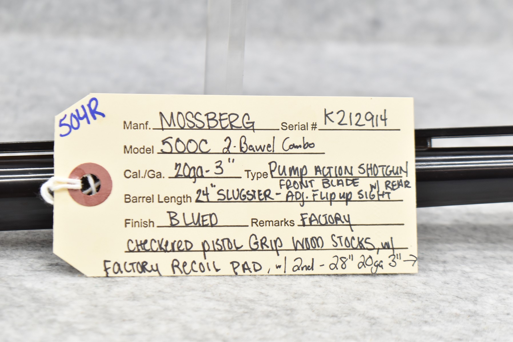 504R. Mossberg – Mod. 500C – 2-Barrel Combo – 20ga. 3” Pump Action Shotgun – w/24” Slugster Barrel w/Front Blade & Rear Adj. Flip Up Sights – w/28” 20ga. 3” Mod. Choke, Vent-Rib Field Barrel – Blued Finish – w/Factory Checkered Pistol Grip Wood Stocks w/Factory Recoil Pad